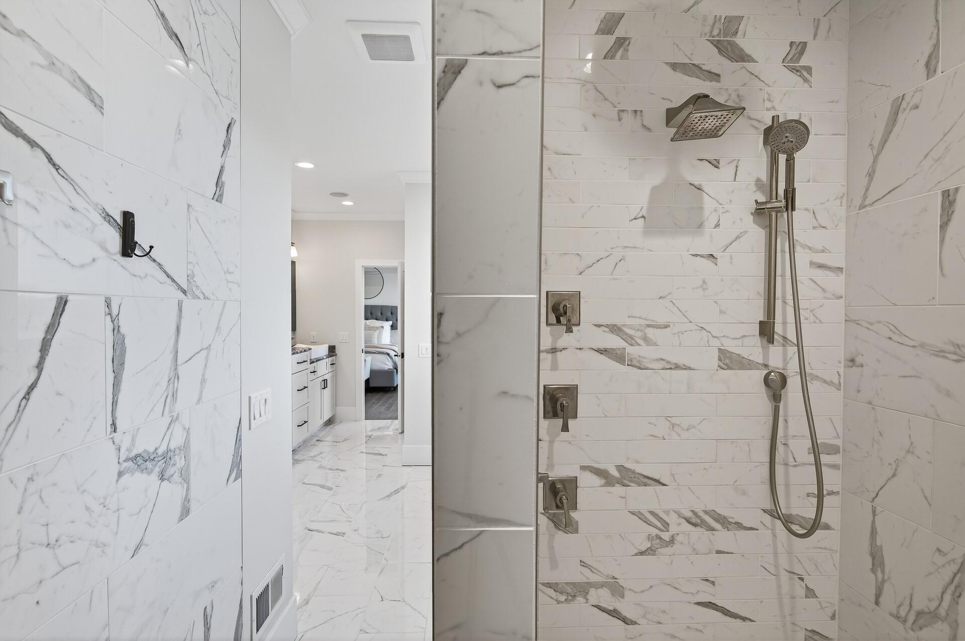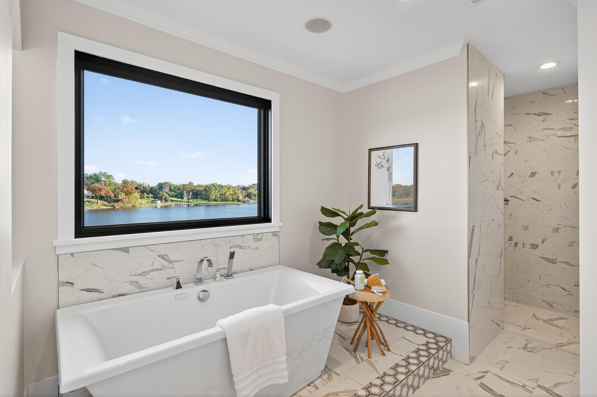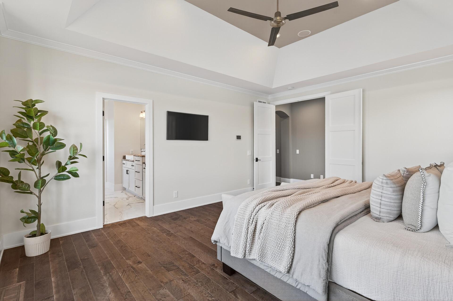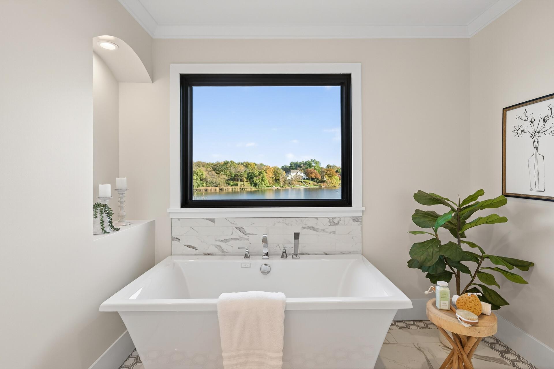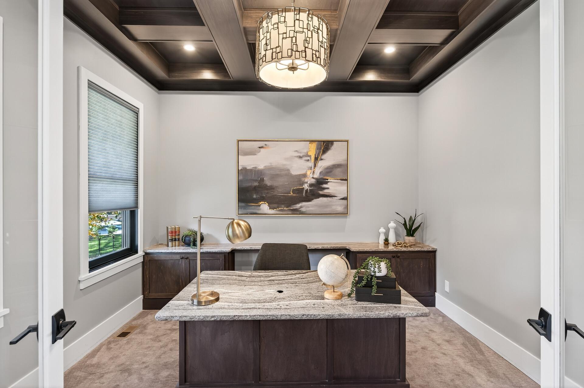 This stunning home blends timeless architecture with modern comfort. A covered front entry leads into a bright, open-concept main floor where oversized windows fill the great room with natural light. The gourmet kitchen features high-end finishes and flows seamlessly into the dining area — perfect for both entertaining and everyday living. A private main-floor office provides a quiet workspace, while the mudroom off the three-car garage helps keep life organized. Upstairs, the primary suite offers a spacious retreat with a spa-style bath that includes a soaking tub, walk-in shower, and large walk-in closet. Four additional bedrooms, a loft lounge, and a convenient laundry room complete the upper level. The walkout lower level adds exceptional living and recreation space with a large family room, full wet bar with commercial-grade appliances, a grilling room, guest bedroom, and a sport court with scoreboard. Direct access to the backyard and Boat House enhances indoor-outdoor living and entertaining. Combining style, space, and versatility, this home is ideal for modern living — whether for family life, remote work, or recreation.