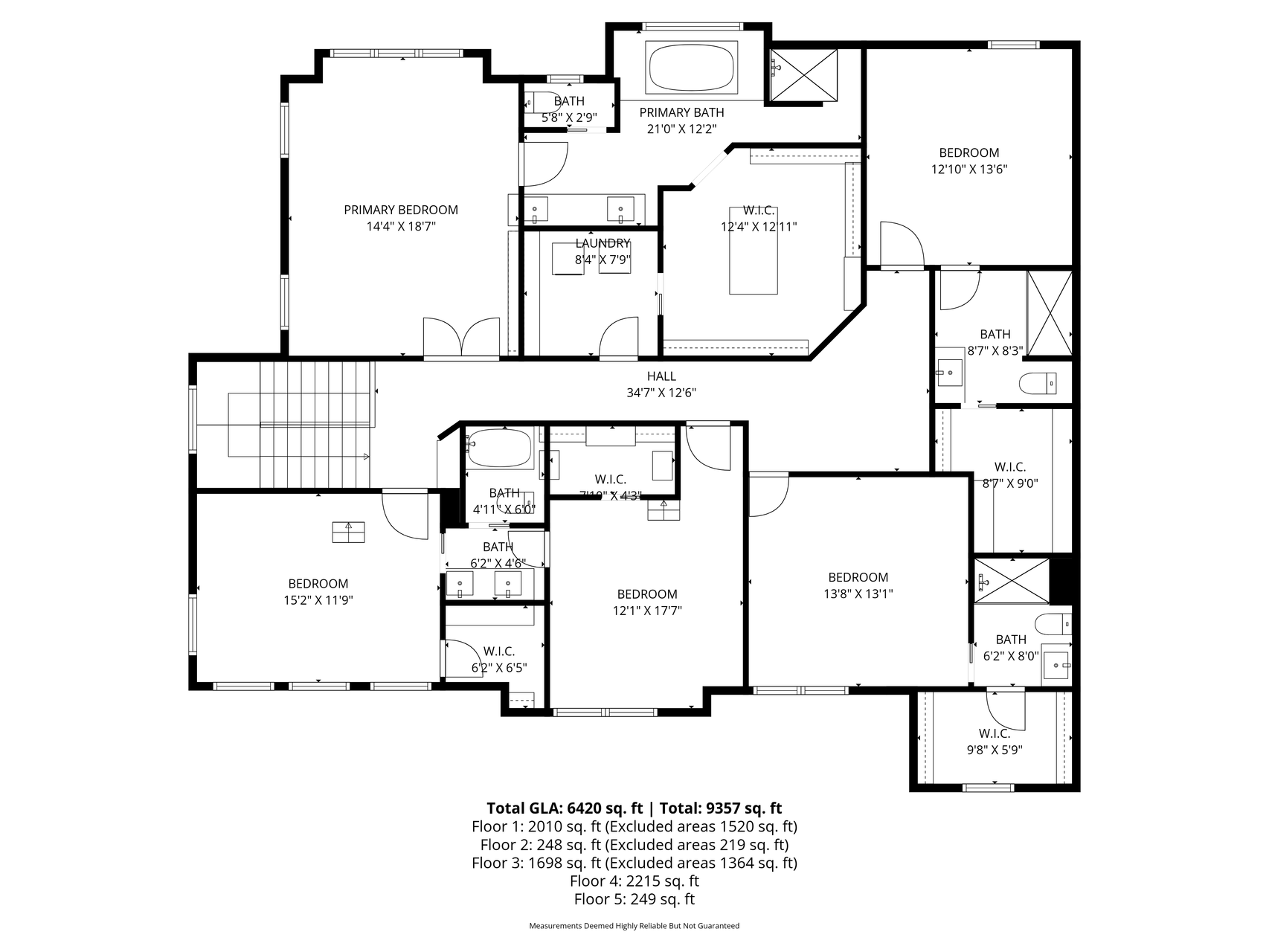 | Bedroom 6 | 11x11.9 | 129.25 ft² |