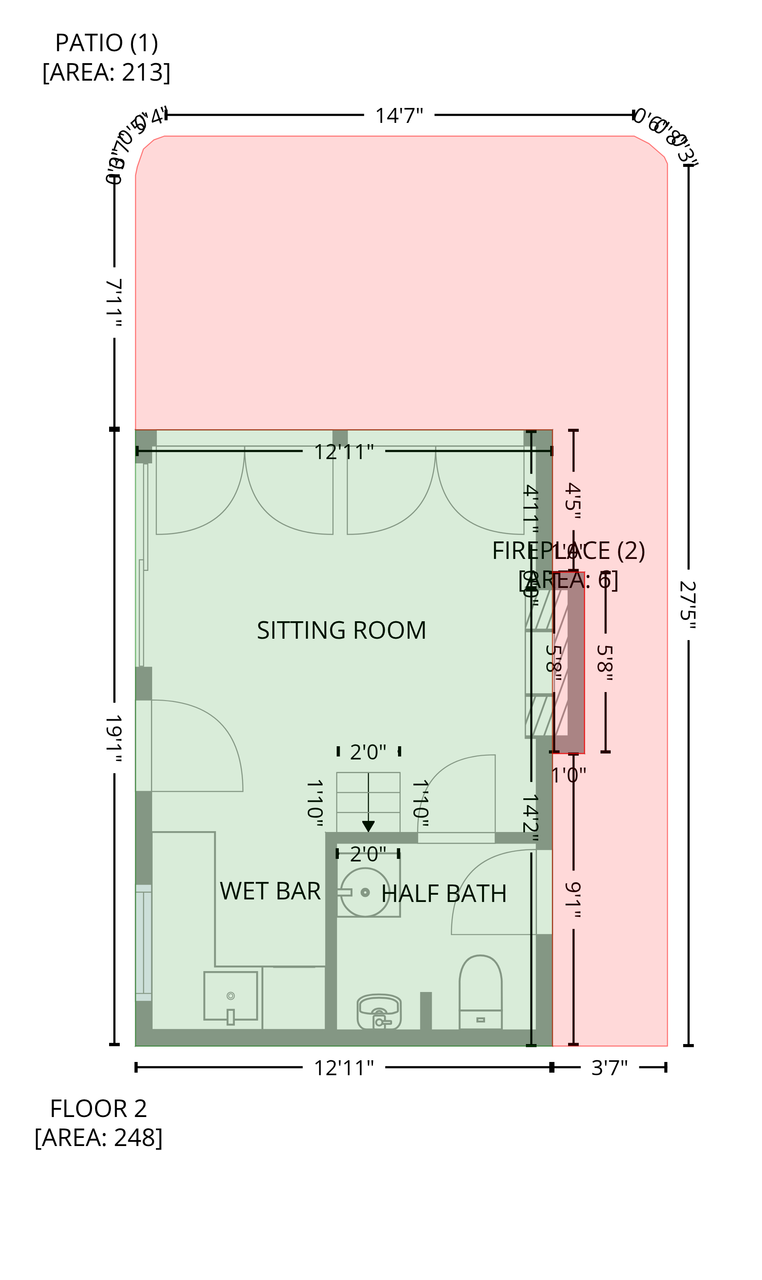 | Bar/Wet Bar Room | 15x10 | 225 ft² |