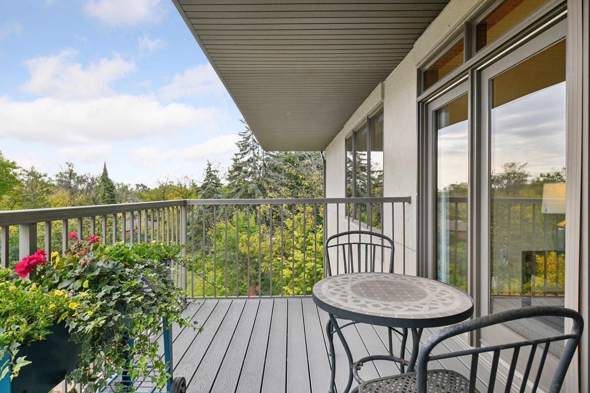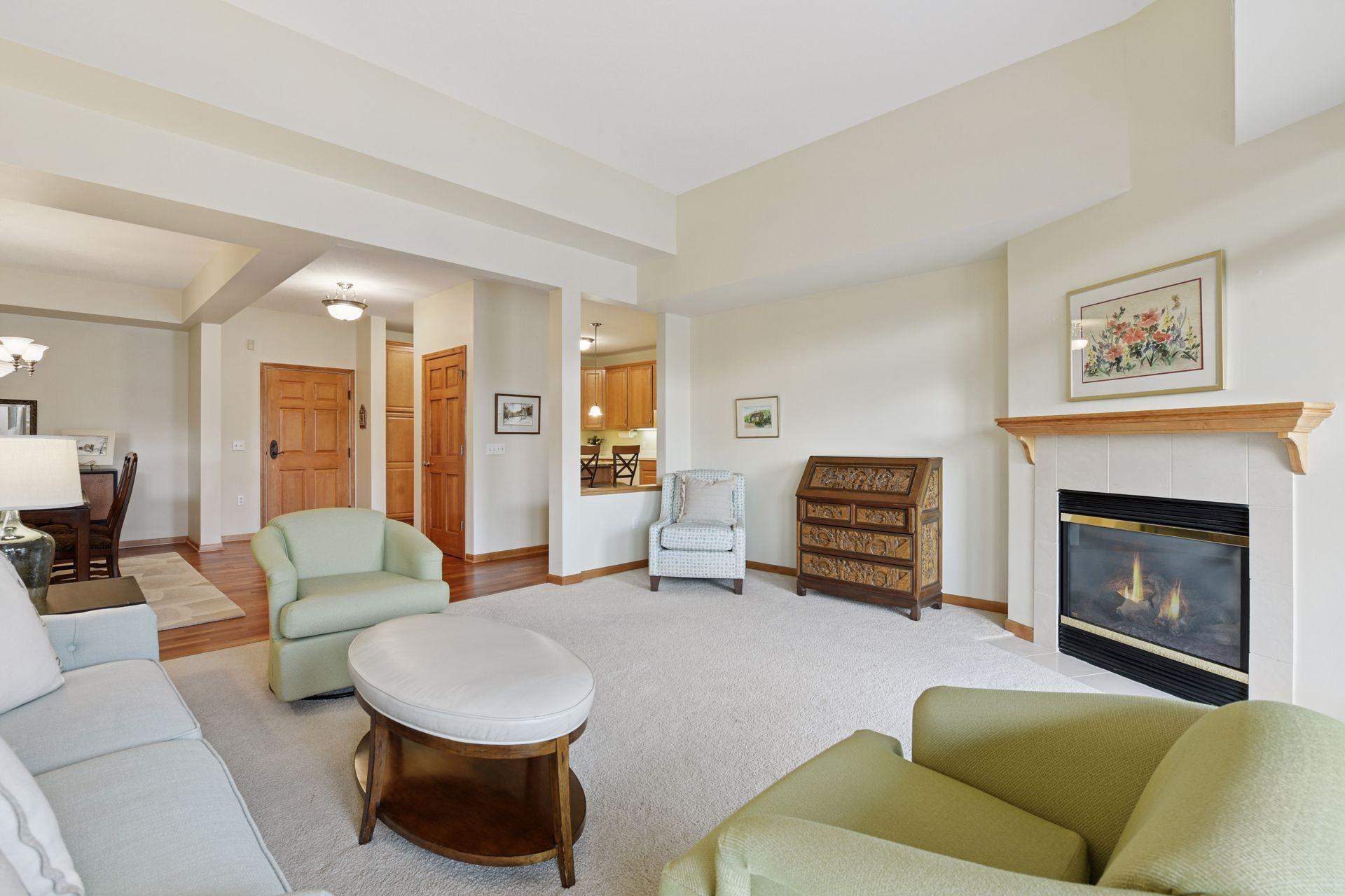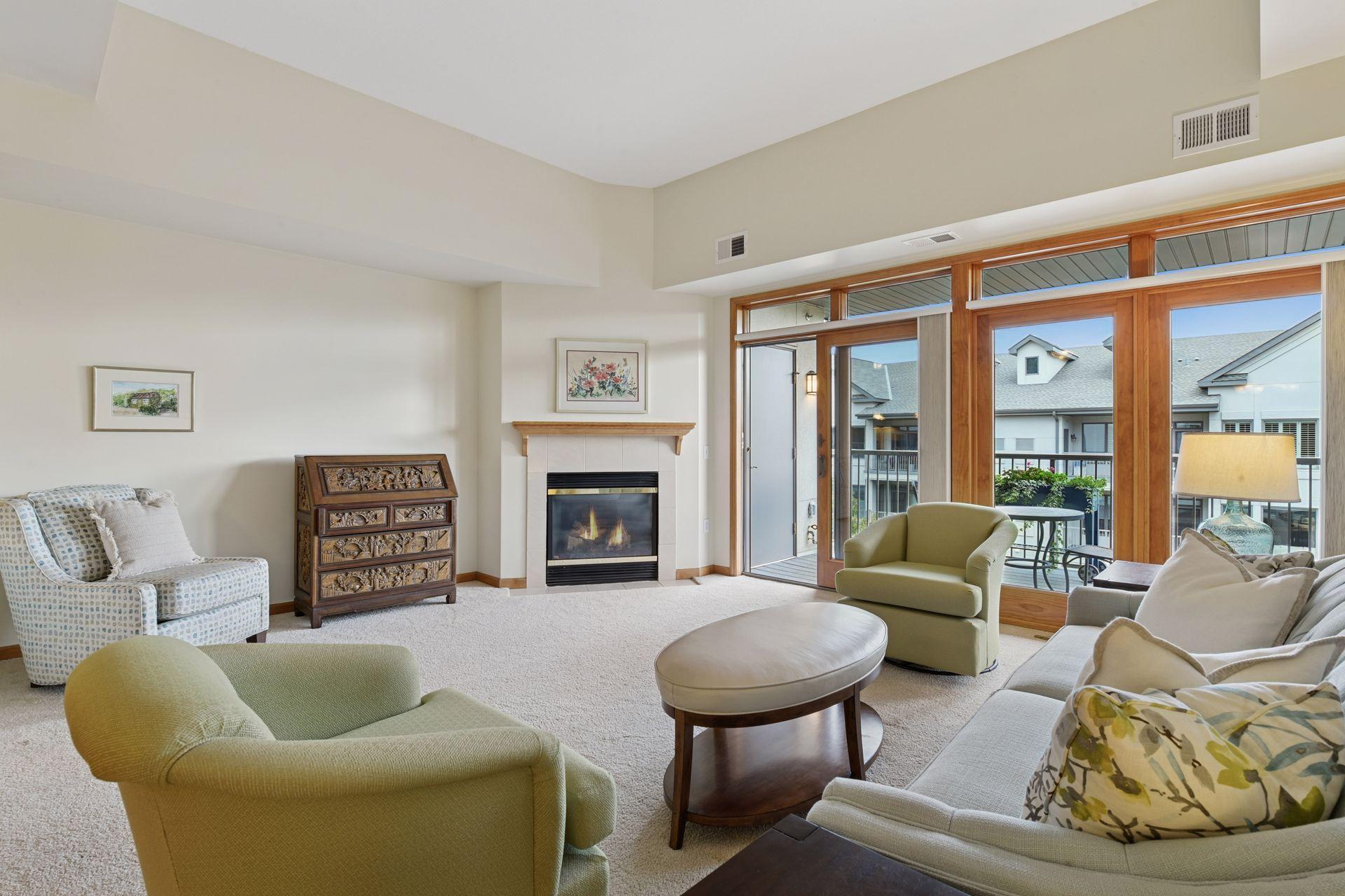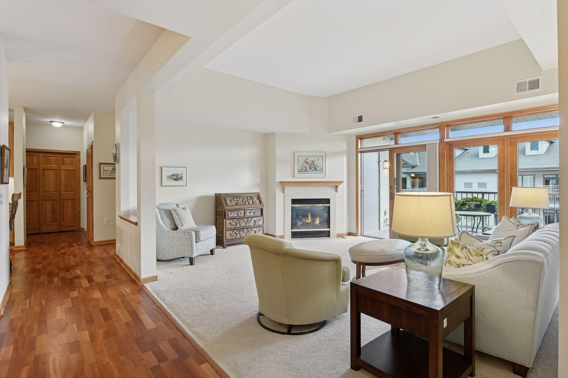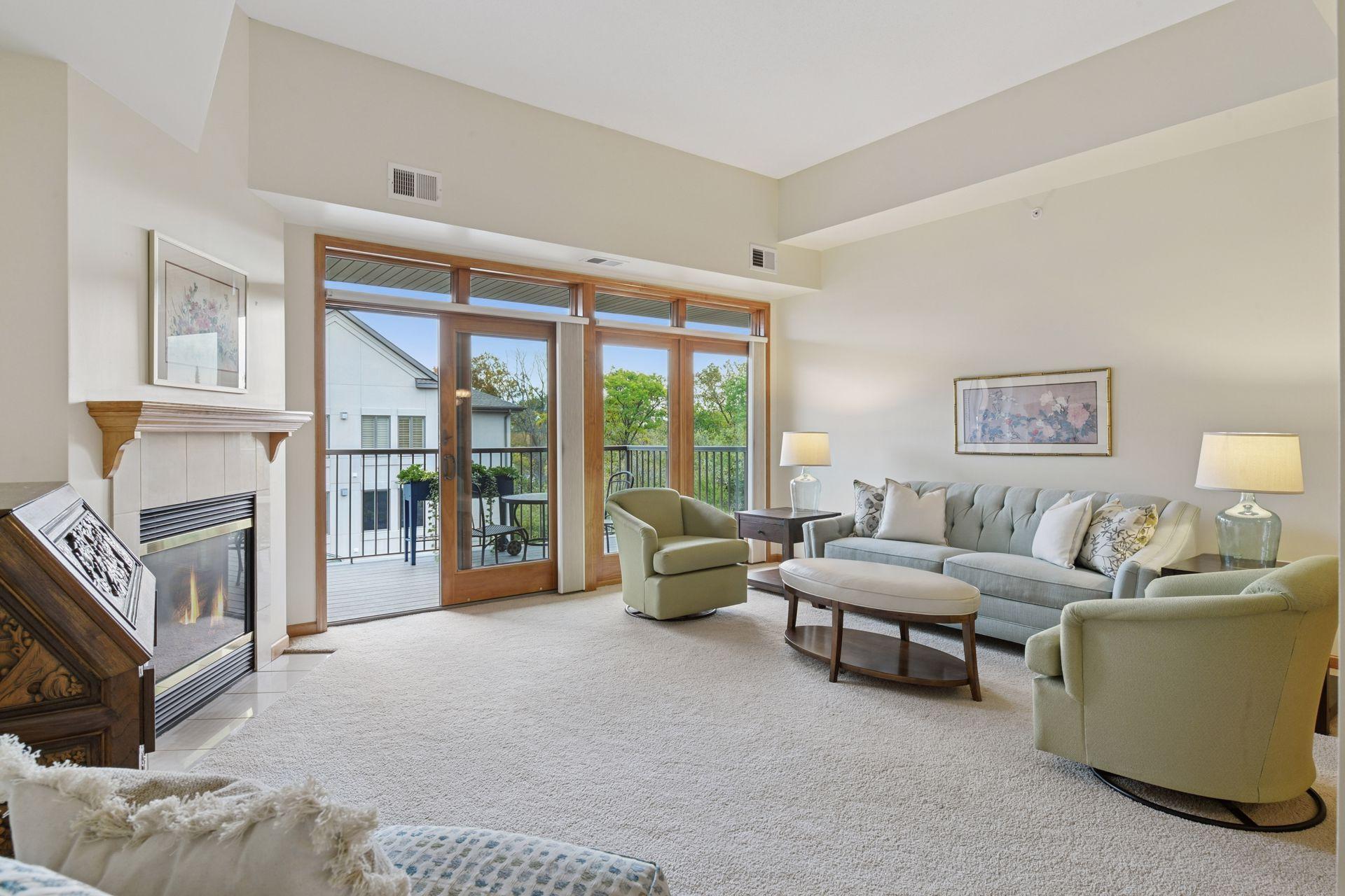 Spectacular top floor, corner unit in the highly sought-after Grandview Square. The elegance of single-level living boasting two bedrooms and two bathrooms across 1639 square feet. Gracious, open floor plan with 9'ceilings and abundant light pouring in from every window. The living room features a gas fireplace, transom windows with sliding doors opening to a private, composite balcony plumbed with a gas line for grilling. The formal dining room is perfect for entertaining with family and friends while providing wonderful everyday living space. The chefs kitchen has abundant cabinet space and breakfast bar. The large primary suite features a walk-in closet, luxurious primary bath with double vanity, separate soaking tub and shower. The second bedroom is bright, large closets throughout, built in bookshelves, laundry room with full size washer and dryer and sink. Wonderful location perfectly positioned by Jerrys, Edina Library, restaurants, walking paths, parks, not to be missed! Two adjacent garage stalls in the heated underground parking and a storage unit on the same floor as the condo. Welcoming community room, fitness room, guest room and hobby room plus outdoor patio.