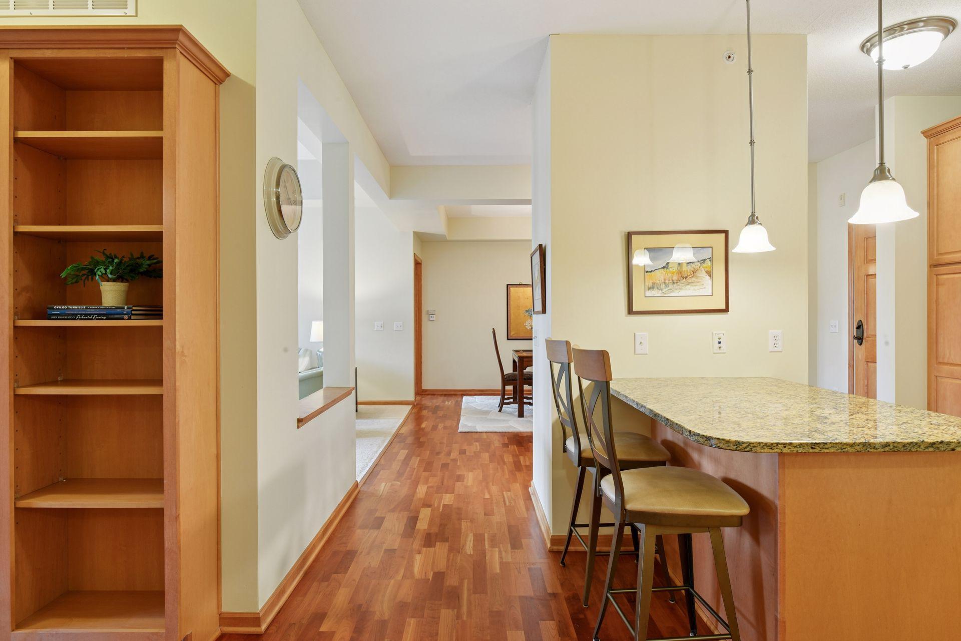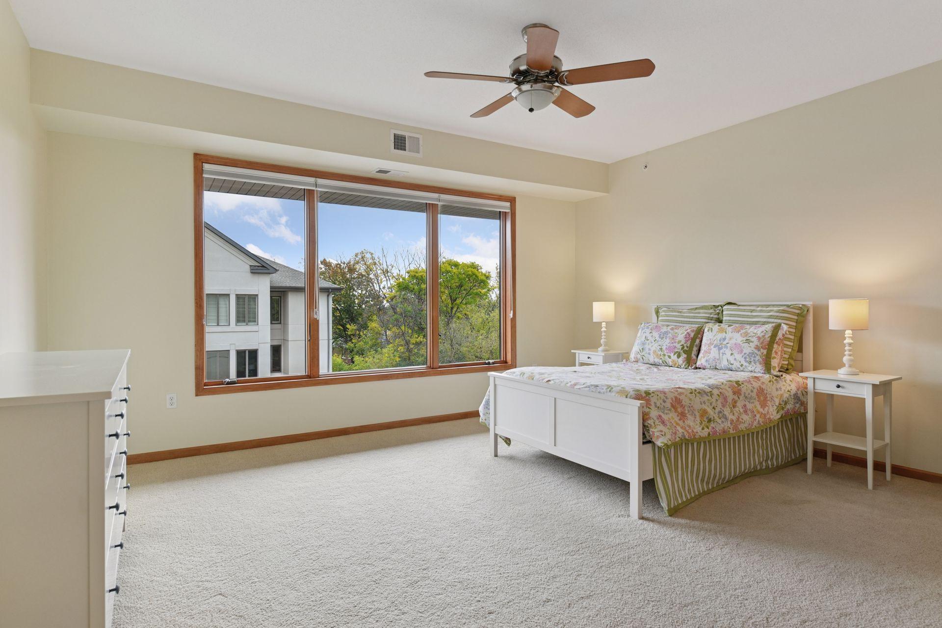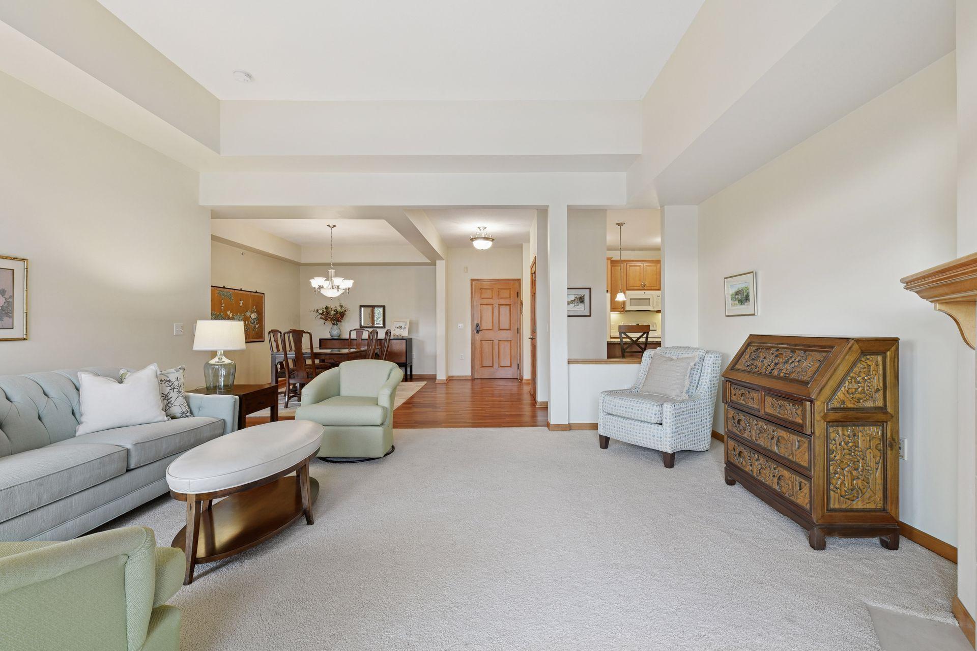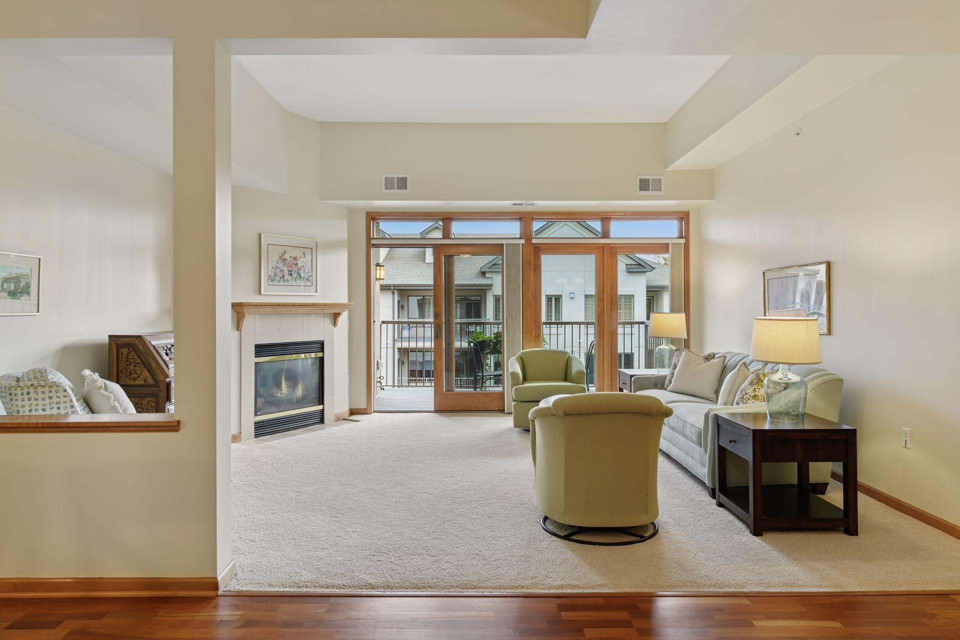 Spectacular top floor, corner unit in the highly sought-after Grandview Square. The elegance of single-level living boasting two bedrooms and two bathrooms across 1639 square feet. Gracious, open floor plan with 9'ceilings and abundant light pouring in from every window. The living room features a gas fireplace, transom windows with sliding doors opening to a private, composite balcony plumbed with a gas line for grilling. The formal dining room is perfect for entertaining with family and friends while providing wonderful everyday living space. The chefs kitchen has abundant cabinet space and breakfast bar. The large primary suite features a walk-in closet, luxurious primary bath with double vanity, separate soaking tub and shower. The second bedroom is bright, large closets throughout, built in bookshelves, laundry room with full size washer and dryer and sink. Wonderful location perfectly positioned by Jerrys, Edina Library, restaurants, walking paths, parks, not to be missed! Two adjacent garage stalls in the heated underground parking and a storage unit on the same floor as the condo. Welcoming community room, fitness room, guest room and hobby room plus outdoor patio.