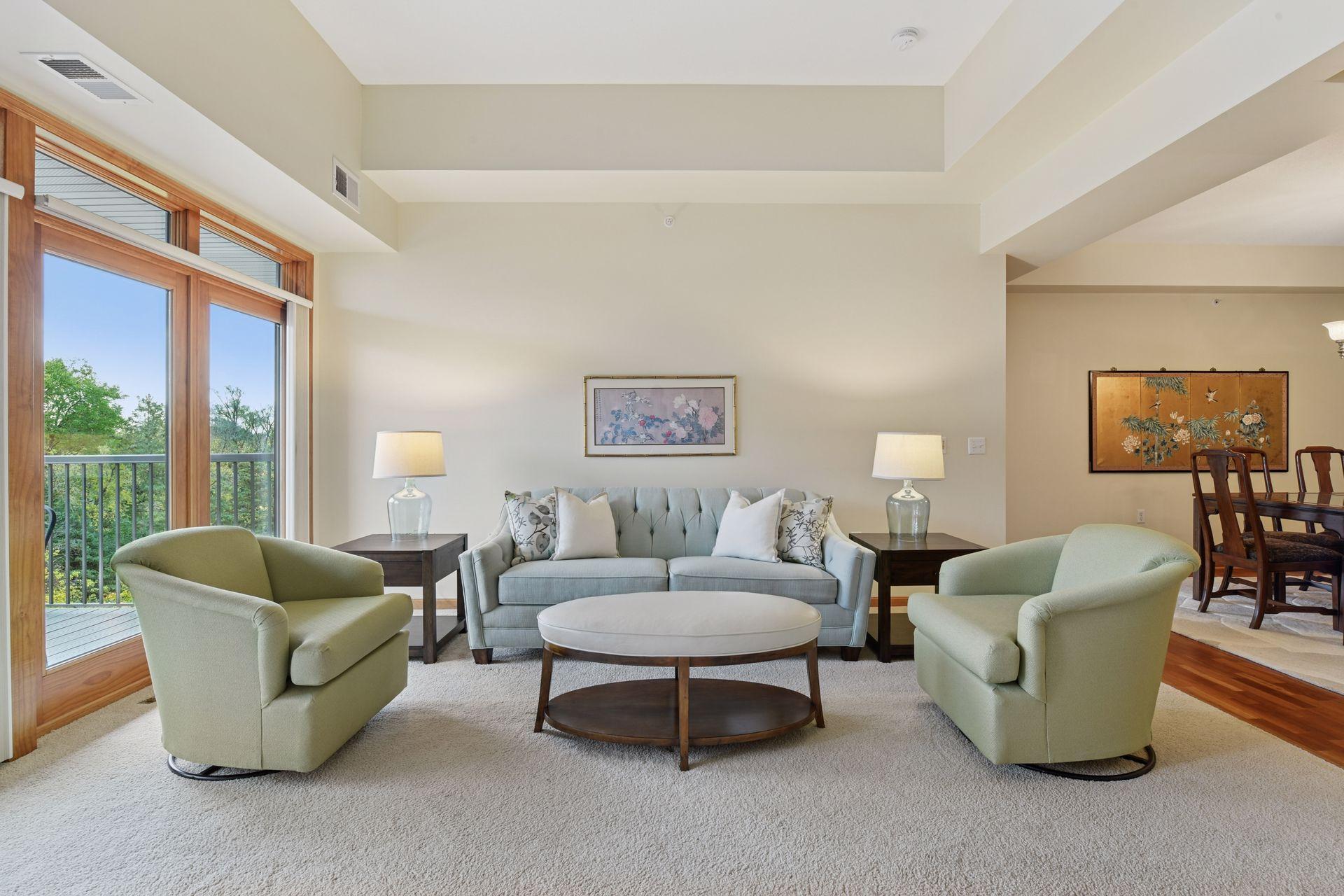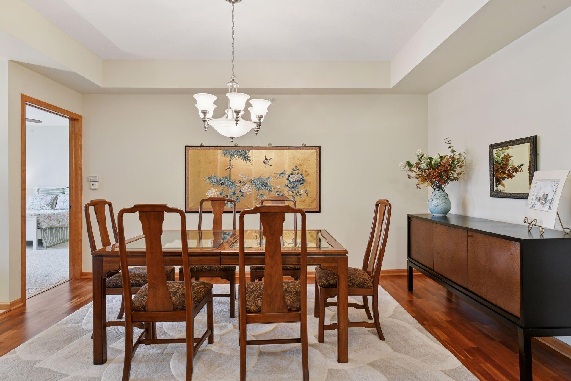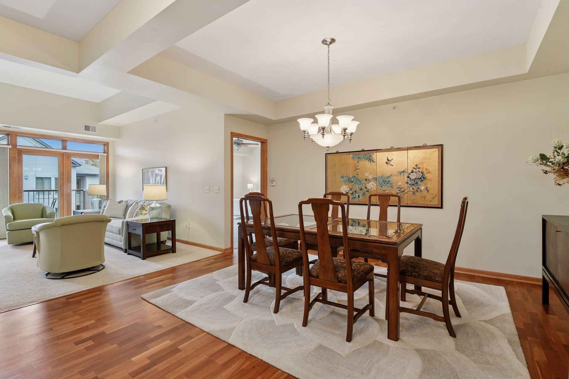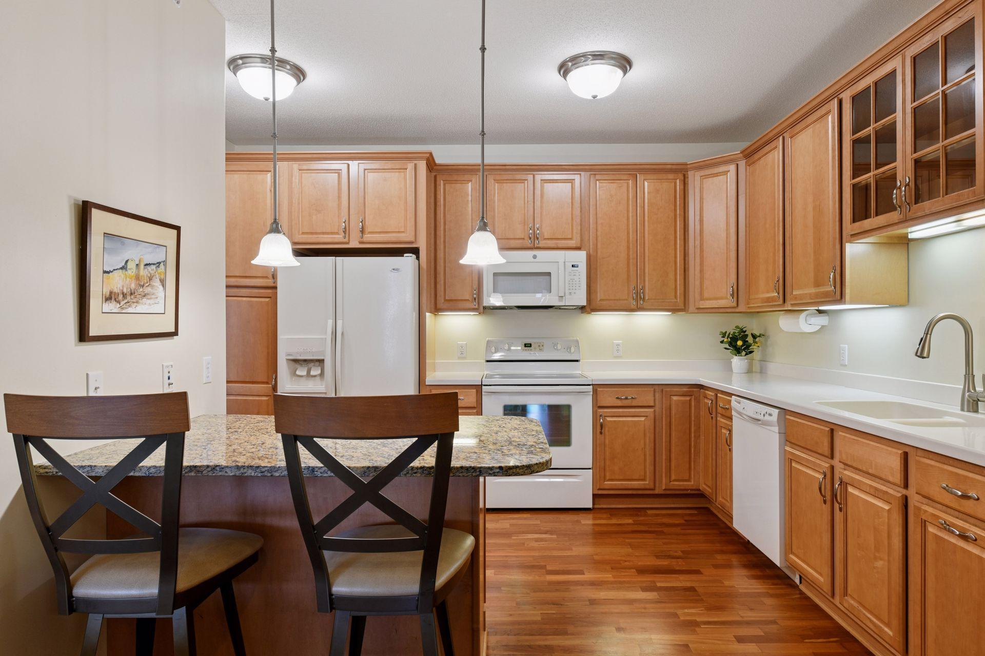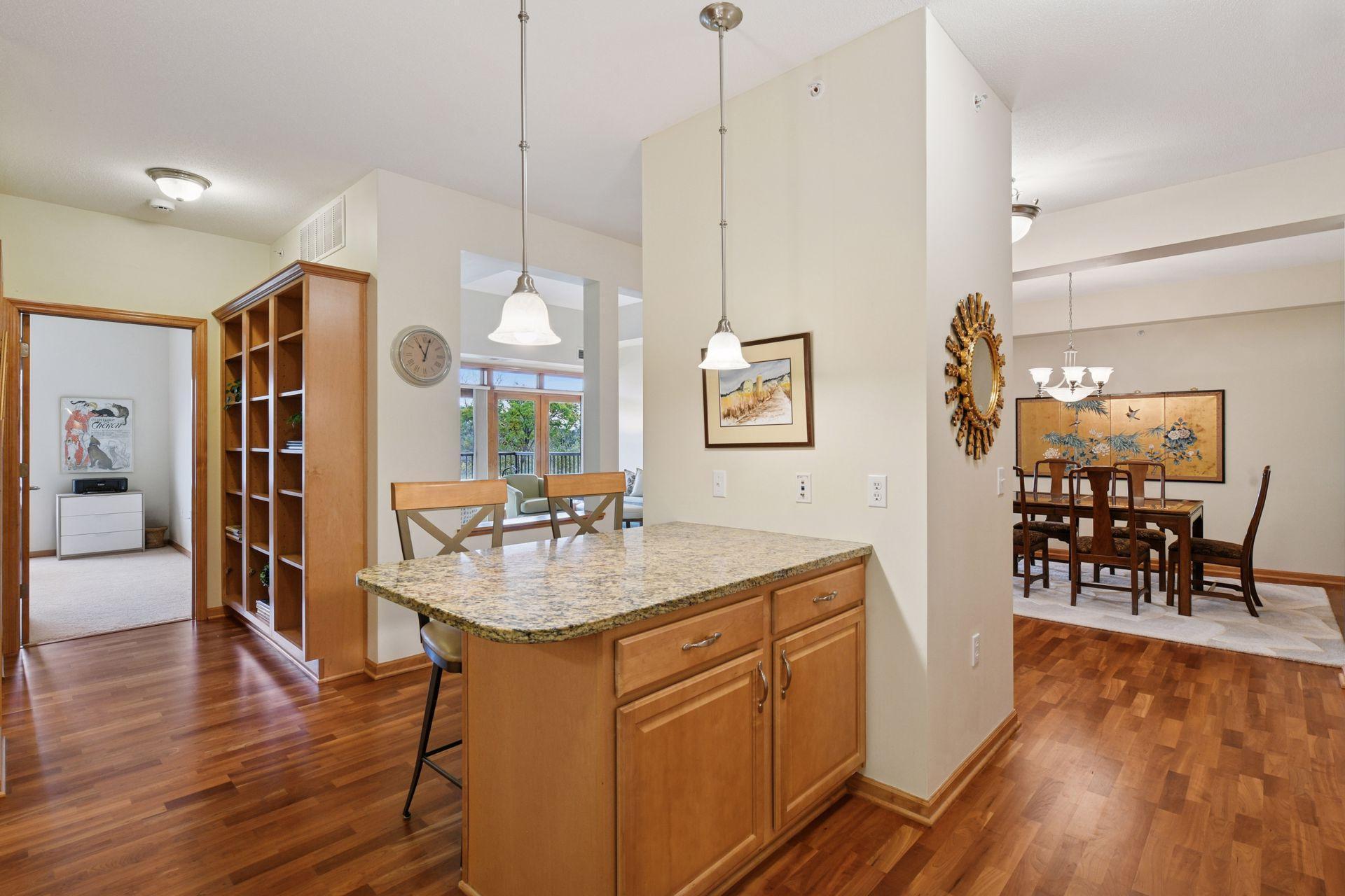 Spectacular top floor, corner unit in the highly sought-after Grandview Square. The elegance of single-level living boasting two bedrooms and two bathrooms across 1639 square feet. Gracious, open floor plan with 9'ceilings and abundant light pouring in from every window. The living room features a gas fireplace, transom windows with sliding doors opening to a private, composite balcony plumbed with a gas line for grilling. The formal dining room is perfect for entertaining with family and friends while providing wonderful everyday living space. The chefs kitchen has abundant cabinet space and breakfast bar. The large primary suite features a walk-in closet, luxurious primary bath with double vanity, separate soaking tub and shower. The second bedroom is bright, large closets throughout, built in bookshelves, laundry room with full size washer and dryer and sink. Wonderful location perfectly positioned by Jerrys, Edina Library, restaurants, walking paths, parks, not to be missed! Two adjacent garage stalls in the heated underground parking and a storage unit on the same floor as the condo. Welcoming community room, fitness room, guest room and hobby room plus outdoor patio.