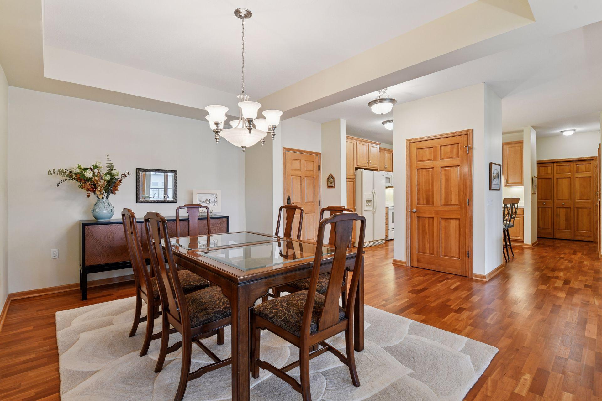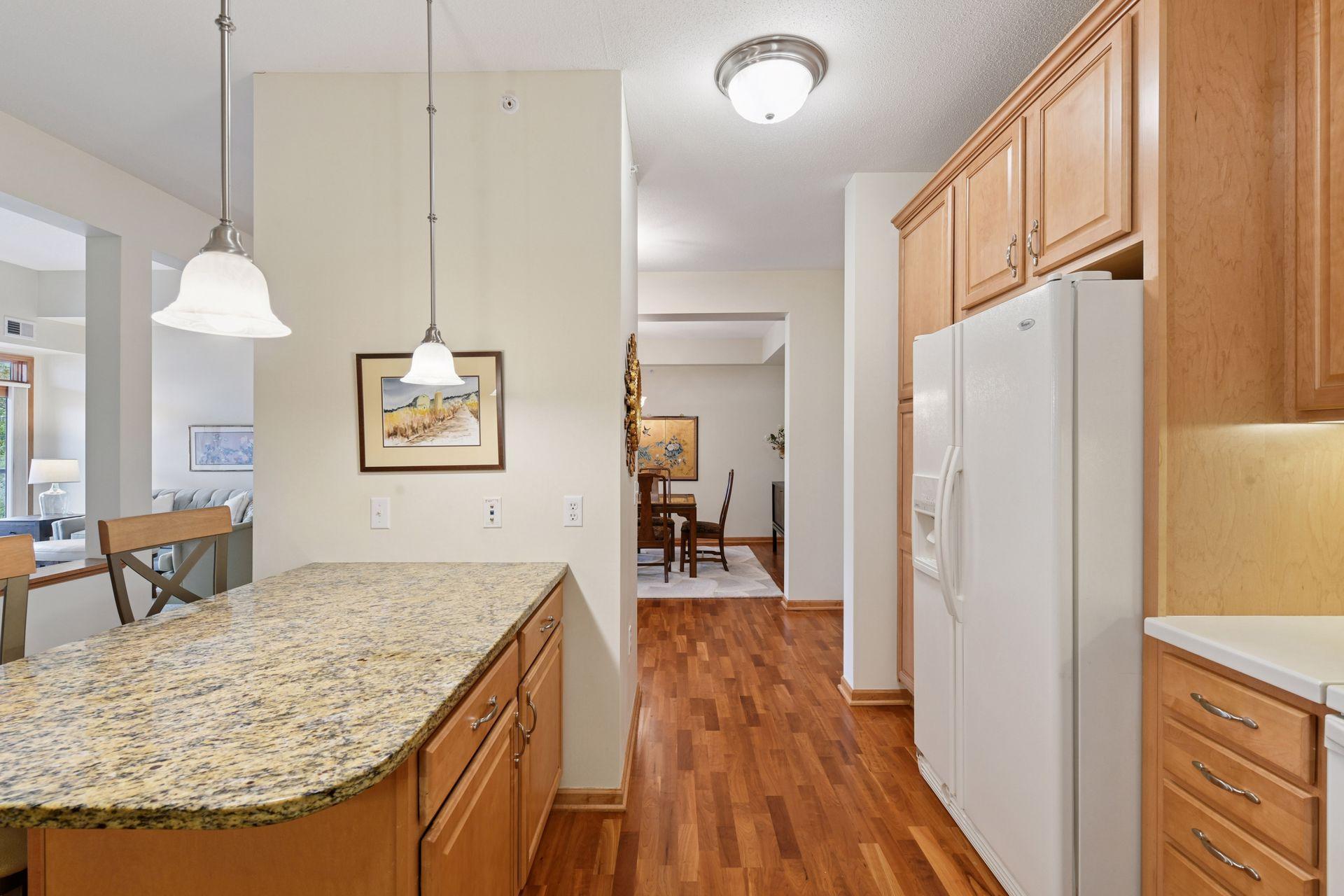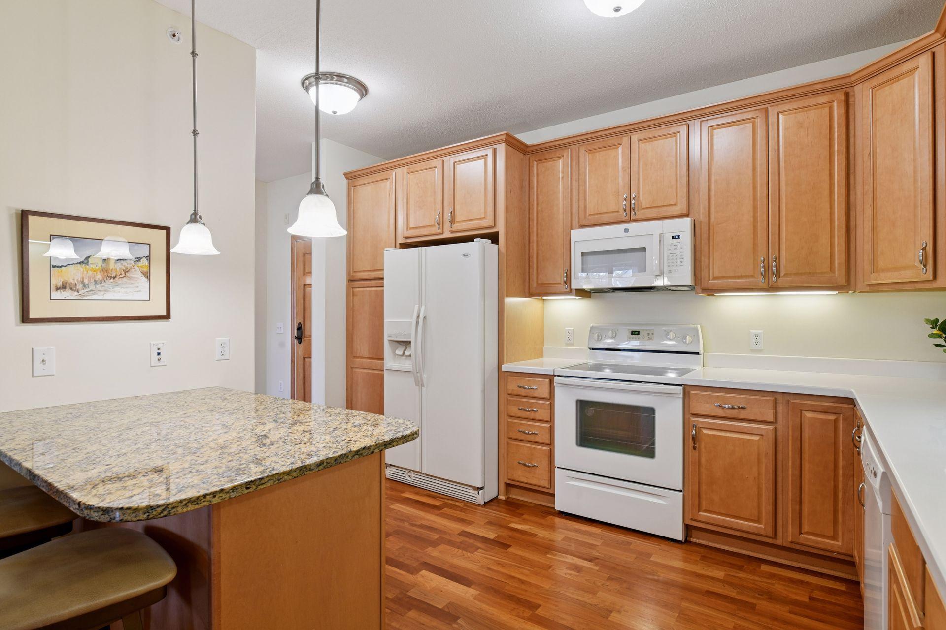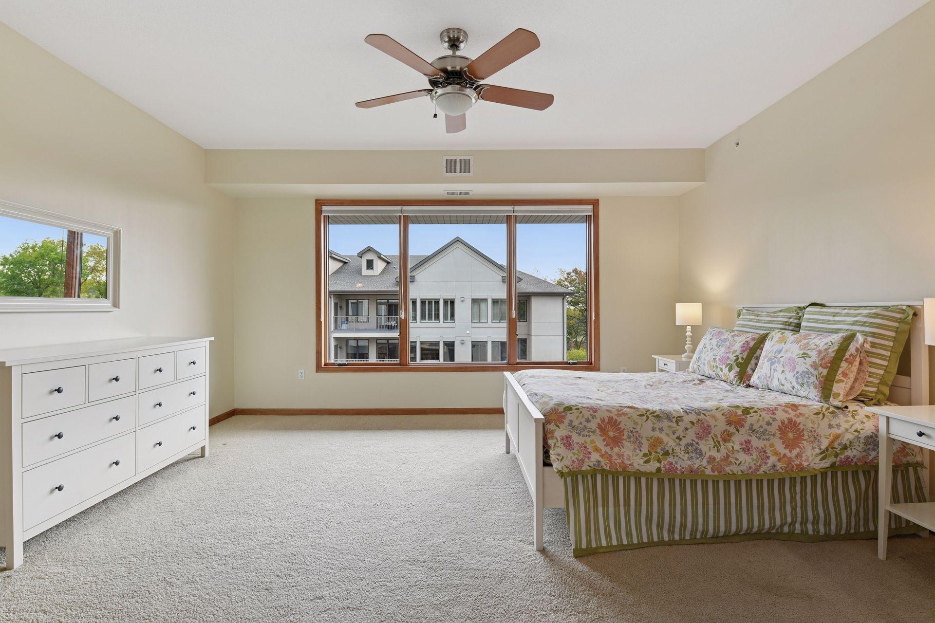 Spectacular top floor, corner unit in the highly sought-after Grandview Square. The elegance of single-level living boasting two bedrooms and two bathrooms across 1639 square feet. Gracious, open floor plan with 9'ceilings and abundant light pouring in from every window. The living room features a gas fireplace, transom windows with sliding doors opening to a private, composite balcony plumbed with a gas line for grilling. The formal dining room is perfect for entertaining with family and friends while providing wonderful everyday living space. The chefs kitchen has abundant cabinet space and breakfast bar. The large primary suite features a walk-in closet, luxurious primary bath with double vanity, separate soaking tub and shower. The second bedroom is bright, large closets throughout, built in bookshelves, laundry room with full size washer and dryer and sink. Wonderful location perfectly positioned by Jerrys, Edina Library, restaurants, walking paths, parks, not to be missed! Two adjacent garage stalls in the heated underground parking and a storage unit on the same floor as the condo. Welcoming community room, fitness room, guest room and hobby room plus outdoor patio.