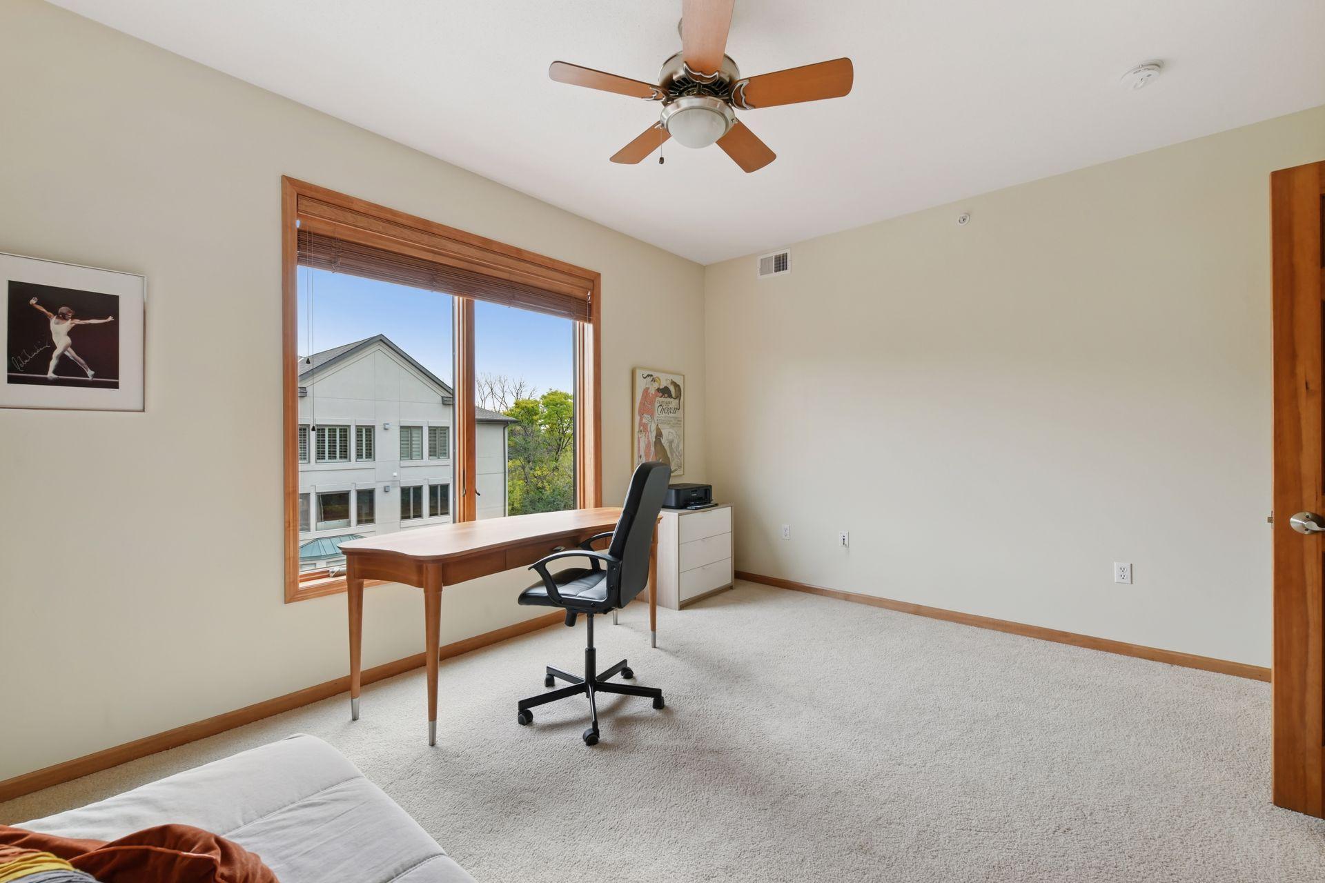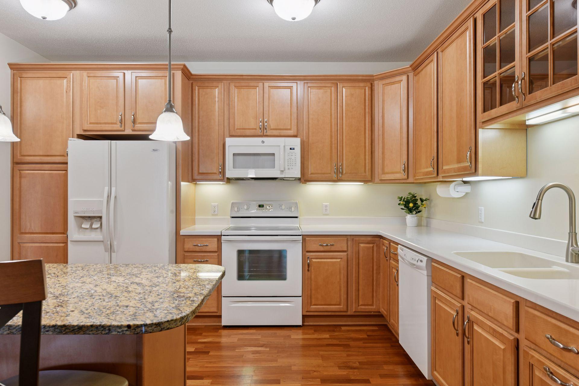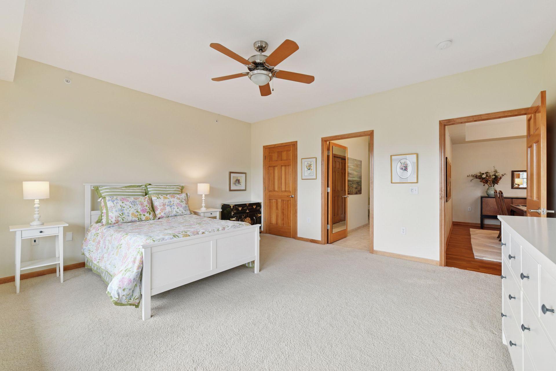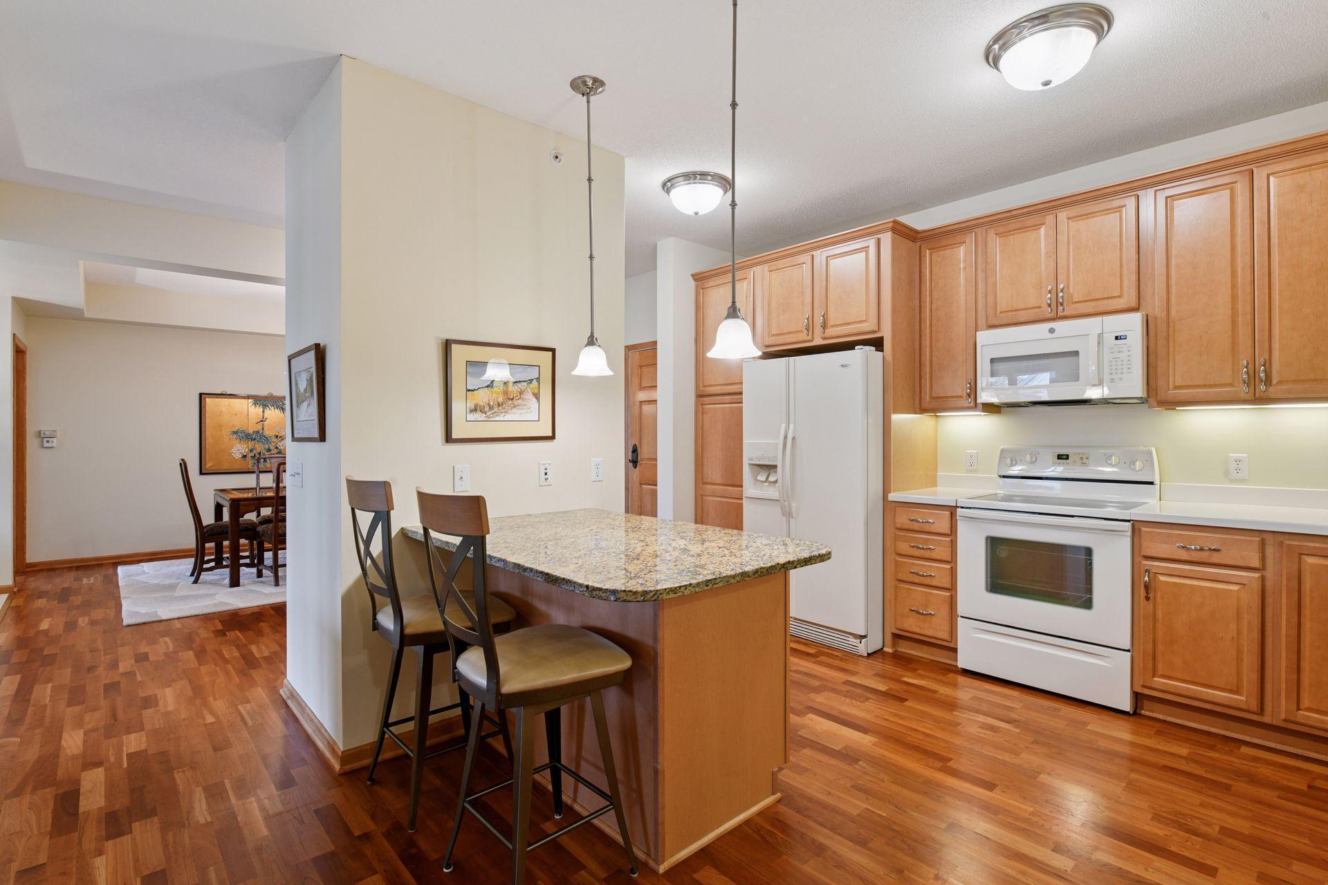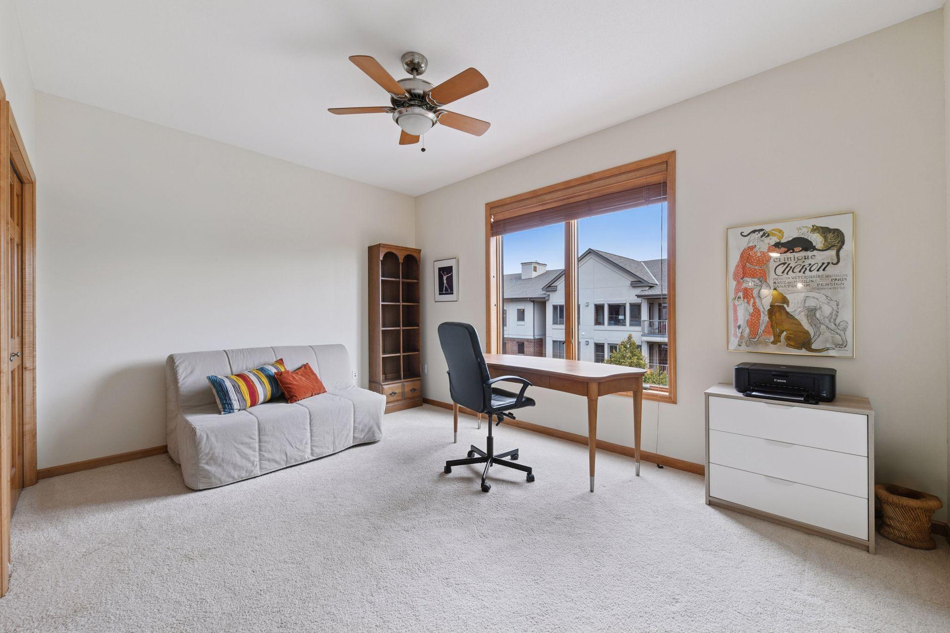 Spectacular top floor, corner unit in the highly sought-after Grandview Square. The elegance of single-level living boasting two bedrooms and two bathrooms across 1639 square feet. Gracious, open floor plan with 9'ceilings and abundant light pouring in from every window. The living room features a gas fireplace, transom windows with sliding doors opening to a private, composite balcony plumbed with a gas line for grilling. The formal dining room is perfect for entertaining with family and friends while providing wonderful everyday living space. The chefs kitchen has abundant cabinet space and breakfast bar. The large primary suite features a walk-in closet, luxurious primary bath with double vanity, separate soaking tub and shower. The second bedroom is bright, large closets throughout, built in bookshelves, laundry room with full size washer and dryer and sink. Wonderful location perfectly positioned by Jerrys, Edina Library, restaurants, walking paths, parks, not to be missed! Two adjacent garage stalls in the heated underground parking and a storage unit on the same floor as the condo. Welcoming community room, fitness room, guest room and hobby room plus outdoor patio.