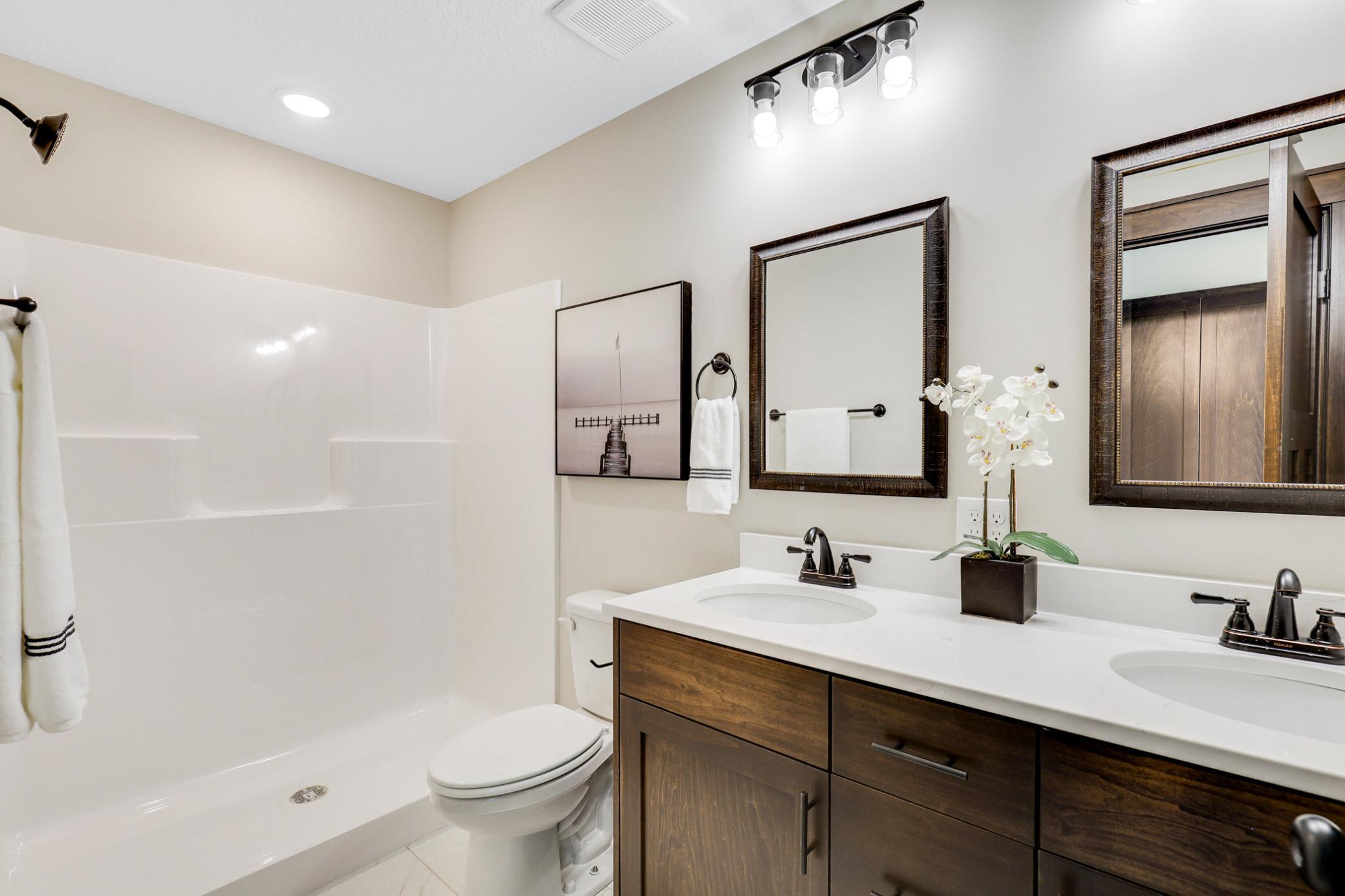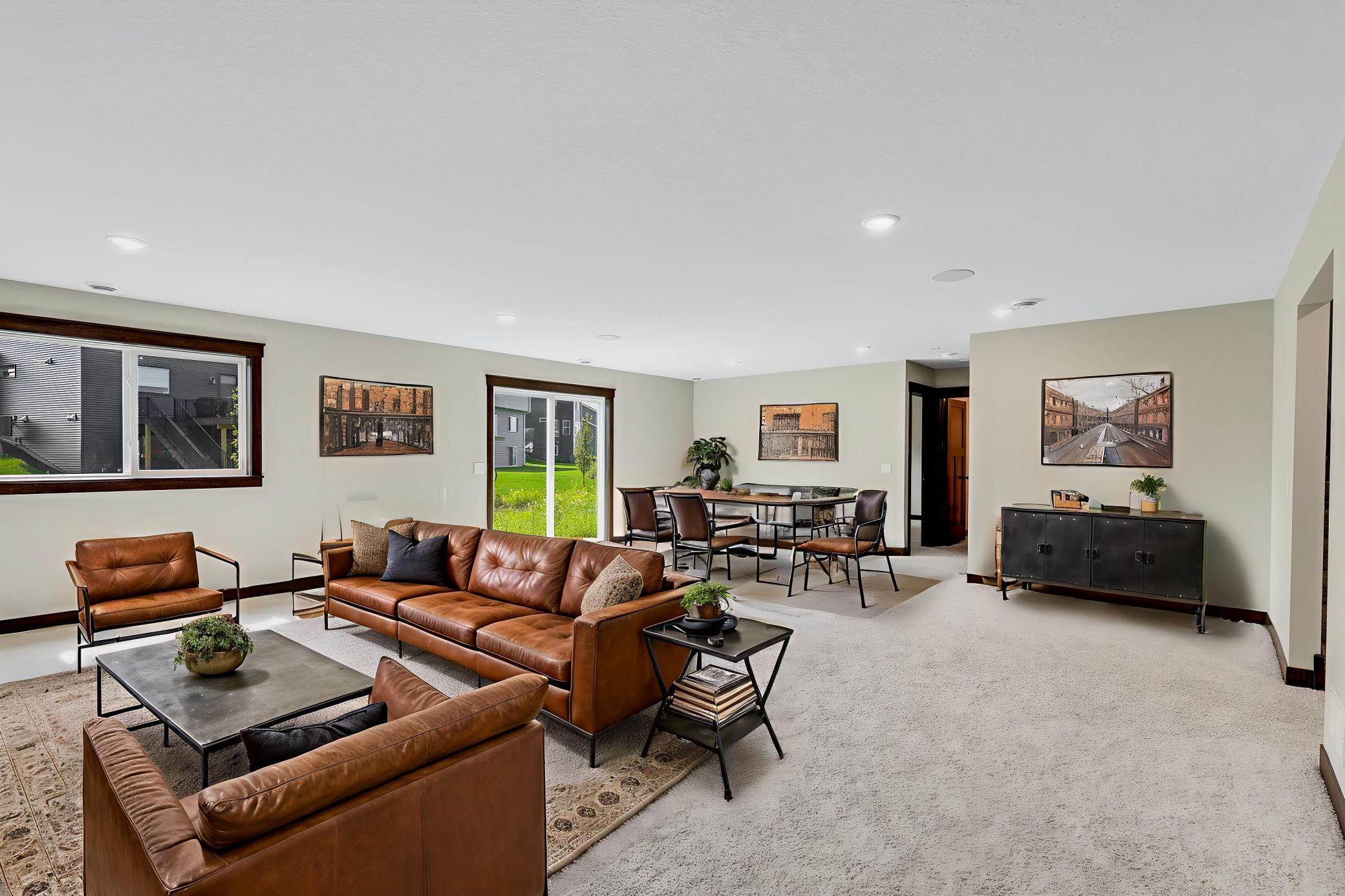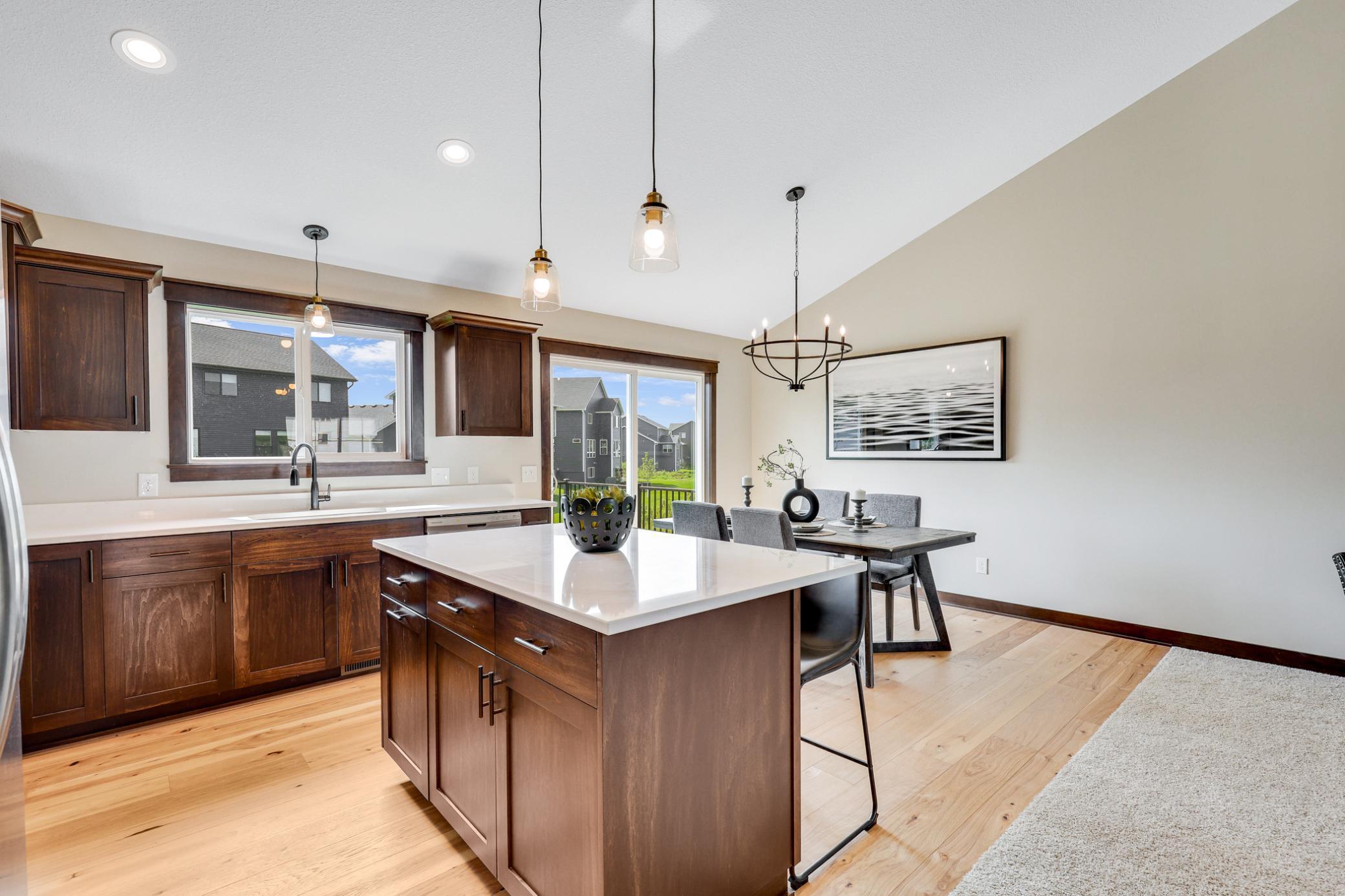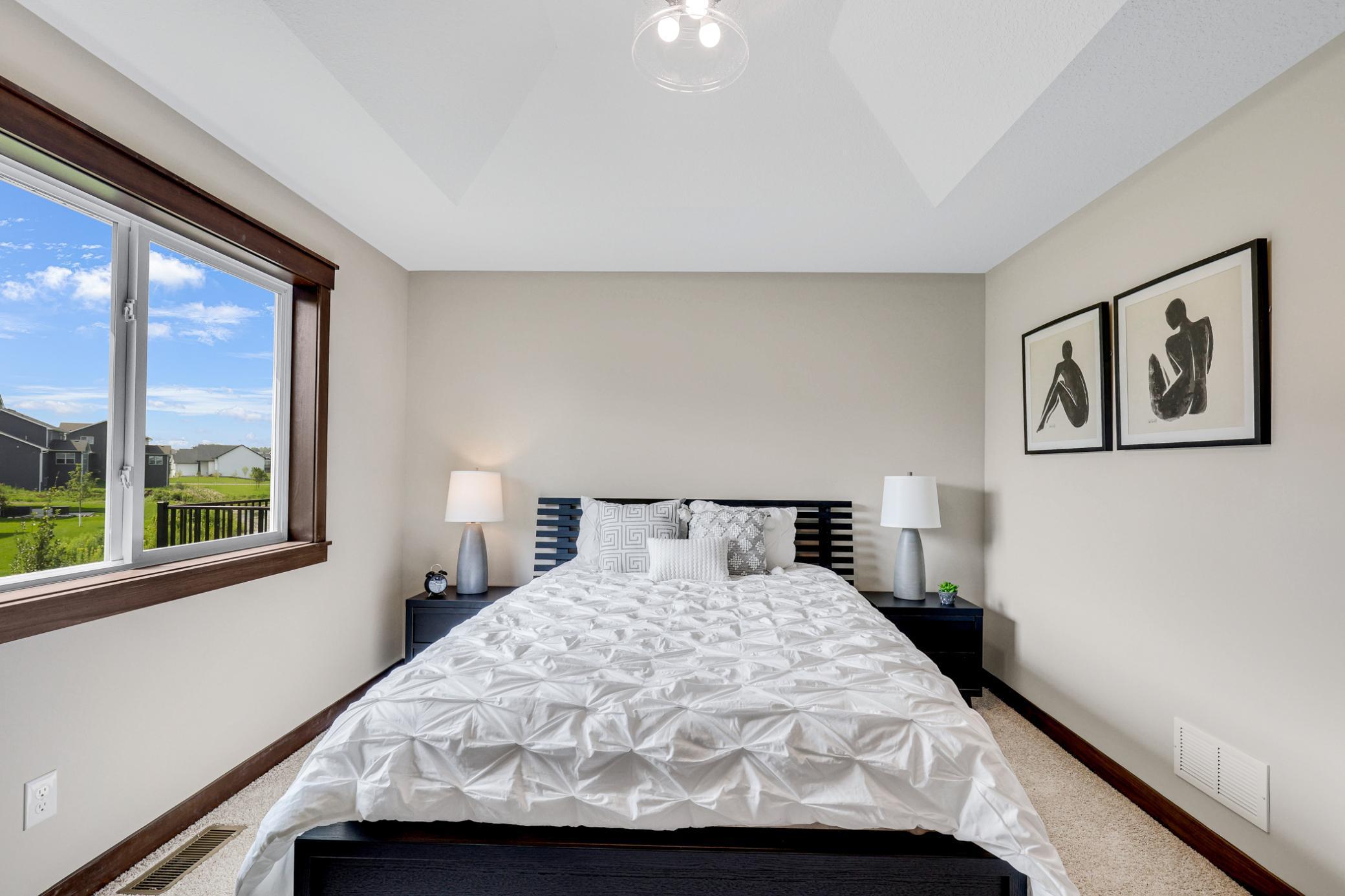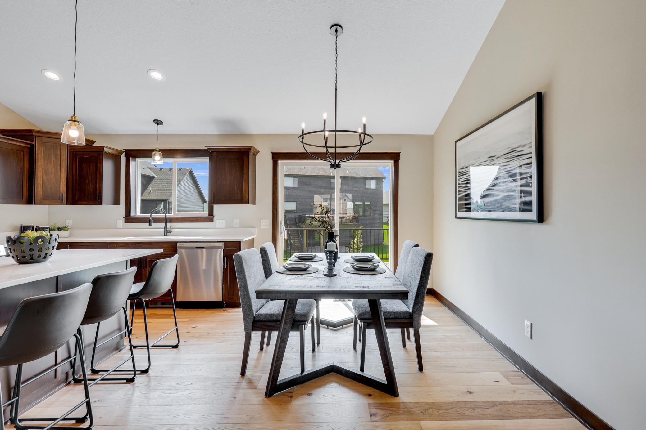 PARADE OF HOMES MODEL! New Construction—Without the Wait! Welcome to this custom-built August II split-level home, offering 5 bedrooms, 3 bathrooms, and a 3-car garage—all nestled on a beautiful walkout lot overlooking a pond in the desirable Pheasant Run neighborhood of Lakeville. Step inside to a vaulted, open-concept layout designed for modern living and effortless entertaining. High-end finishes throughout include knockdown ceilings, solid 3-panel doors, custom cabinetry with 3” crown molding, granite countertops, hardwood and tile flooring, and upgraded lighting and plumbing fixtures. The gourmet kitchen features stainless steel appliances, an oversized center island with breakfast bar seating, and upgraded cabinetry—ideal for everyday cooking and hosting. An adjacent informal dining room features a patio door leading to a 12x12 deck, perfect for summer grilling and outdoor dining. Relax in the main-level vaulted living room, or retreat to the spacious primary suite complete with tray-vault ceiling, walk-in closet, and private 3/4 bath. The finished walkout lower level adds two more bedrooms, a full 3/4 bath, a large family room, and a dedicated laundry/mechanical room—plenty of space for guests or growing families. The home is located in Lakeville, one of Minnesota’s fastest-growing and most sought-after communities, this home offers access to top-rated schools, abundant parks and trails, and convenient shopping, dining, and commuter access via I-35. Lakeville blends small-town charm with big-city amenities—making it an ideal place to call home. Ask about our available move-in-ready inventory or choose your own lot and floor plan to build the custom home of your dreams!