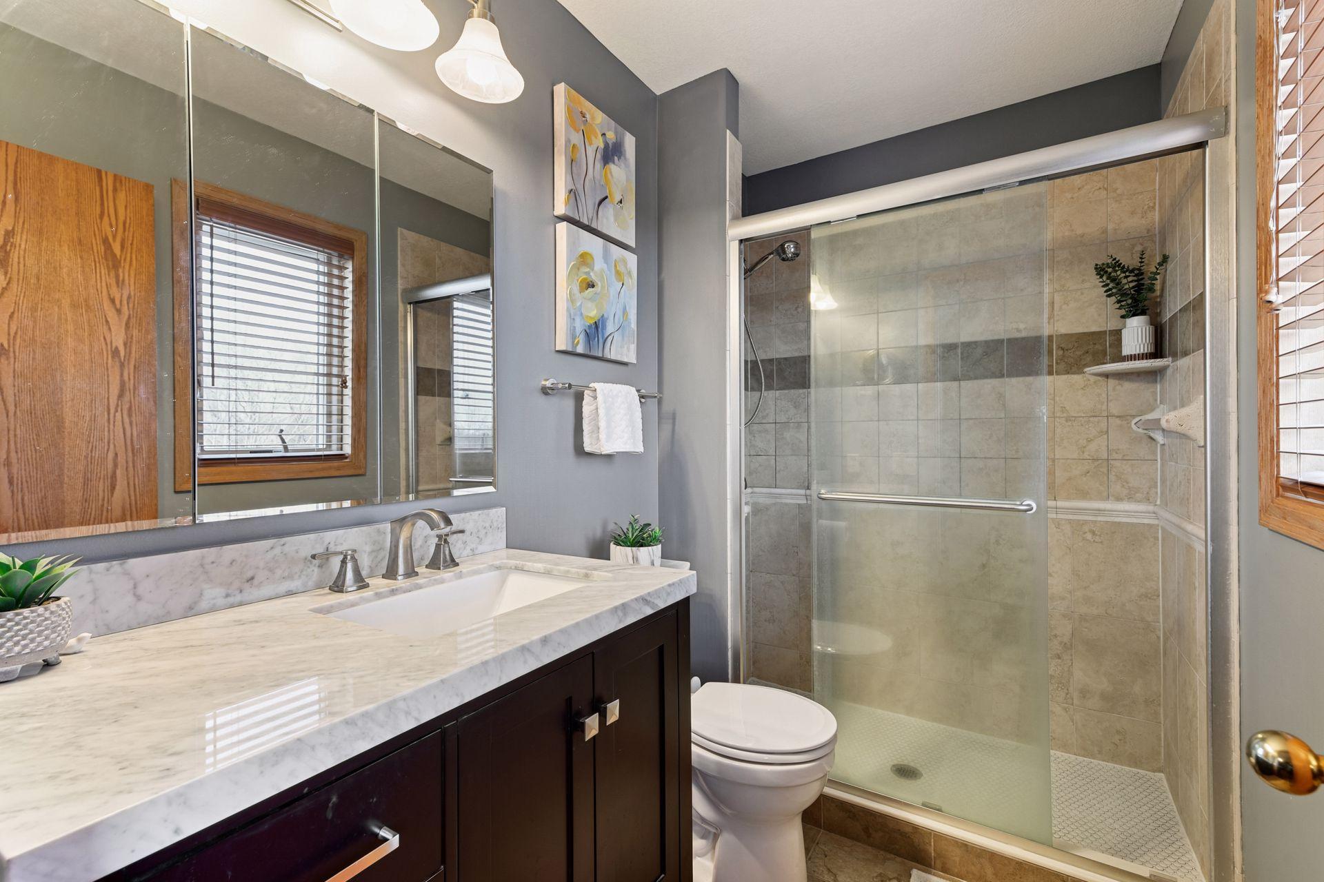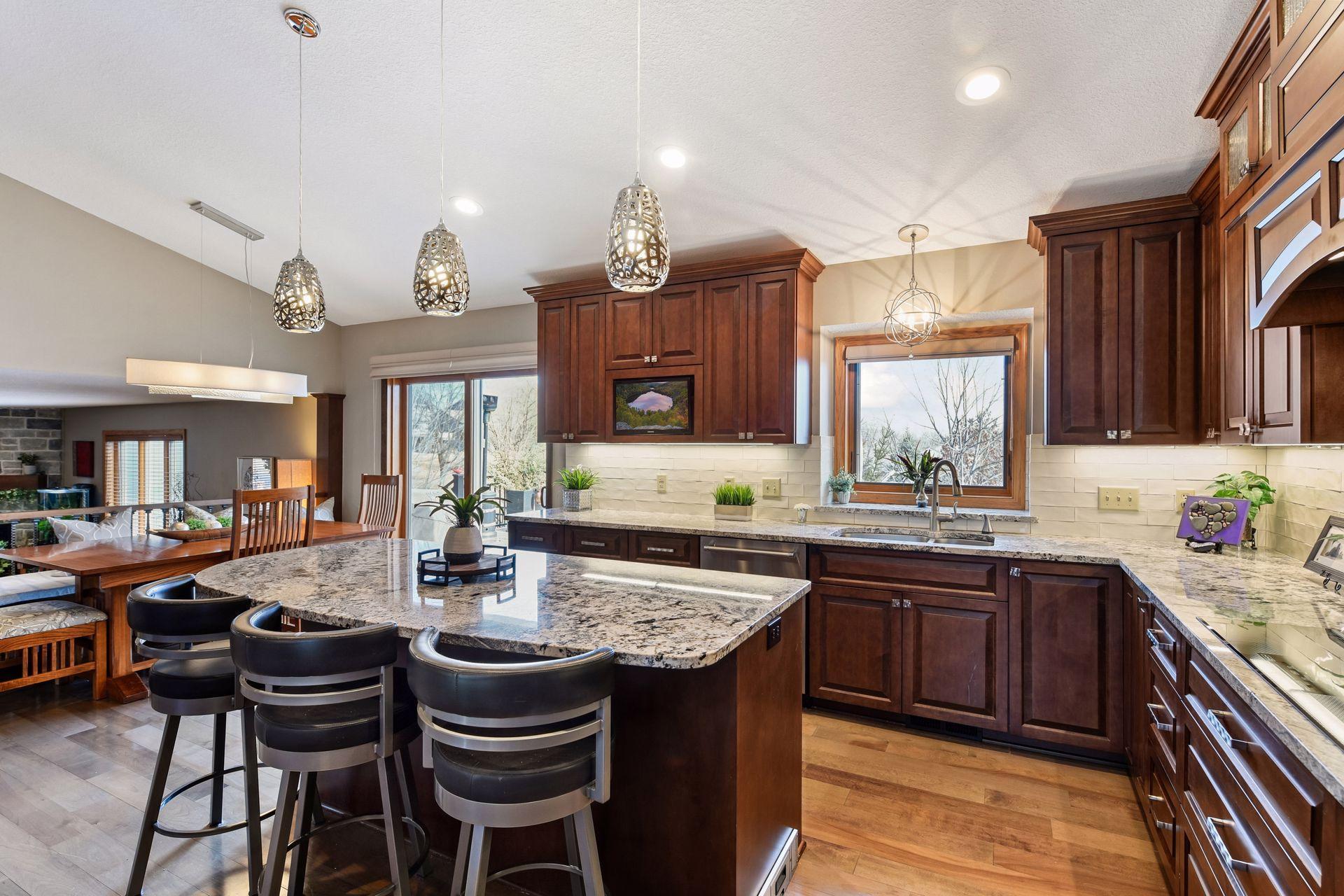 An understated beautiful Modified 2-Story Home in Central Plymouth: This sharp, well-maintained 4-bedroom, 4-bathroom home also includes a study/den, on a large, usable lot with semi-private elevated easterly panorama rear views. 3-car attached garage and numerous upgrades and updates along the way... remodeled vaulted kitchen with granite countertops and center island, equipped with a Kitchen-Aid Stainless Steel appliances. (Includes a toe-tap electronic dustpan) open Family Room with stone gas fireplace. Main floor laundry with built-in's, Washer and Dryer as well. Large living areas with two gas fireplaces, perfect for cozy evenings. Remodeled ceramic baths offers a touch of luxury. Irrigated Lawn, Paver Stone driveway, substantial composite decking, and creative landscape lighting also included. The lower-level 2nd family room includes Stone gas fireplace, wet bar and dry bar viewing area, along with a dedicated gaming space, ideal for entertaining, kind of a cozy sports bar atmosphere...walks out to impressive large, stamped patio. The property beautifully combines elegance and functionality, making it the perfect place for both relaxation and entertaining with an easy location and access to all amenities...Shopping, Regional Parks, Banking, Medical facilities and Restaurant's too. Newer Mechanicals with New Roof in 2024. Easy access and quick close available...