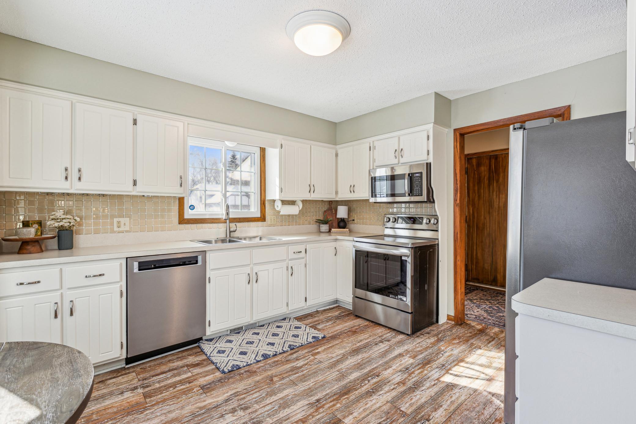 Come home to fantastic wooded views and great features throughout this great opportunity! You'll love the location - situated on a cul de sac and backing up to long, private nature scenes. Step into the main level with spacious Kitchen, stainless steel appliances and vaulted Dining Room with great natural light! Brand new carpet on the upper level with large Living Room and 3 Bedrooms including Owners' Suite with private 3/4 Bath! Head down to the walkout lower level where you can relax in front of a fire! Fantastic flexibility outside the 4th Bedroom with additional Office/Den that's perfect for working from home or setting up a quiet play area! Plenty of ways to enjoy the outdoors with a generous backyard, newer paver patio or spacious deck! Close proximity to Bass Lake, trails, playfields and so much more! **Multiple offers received - highest and best due by 2pm on Monday, 3/10**