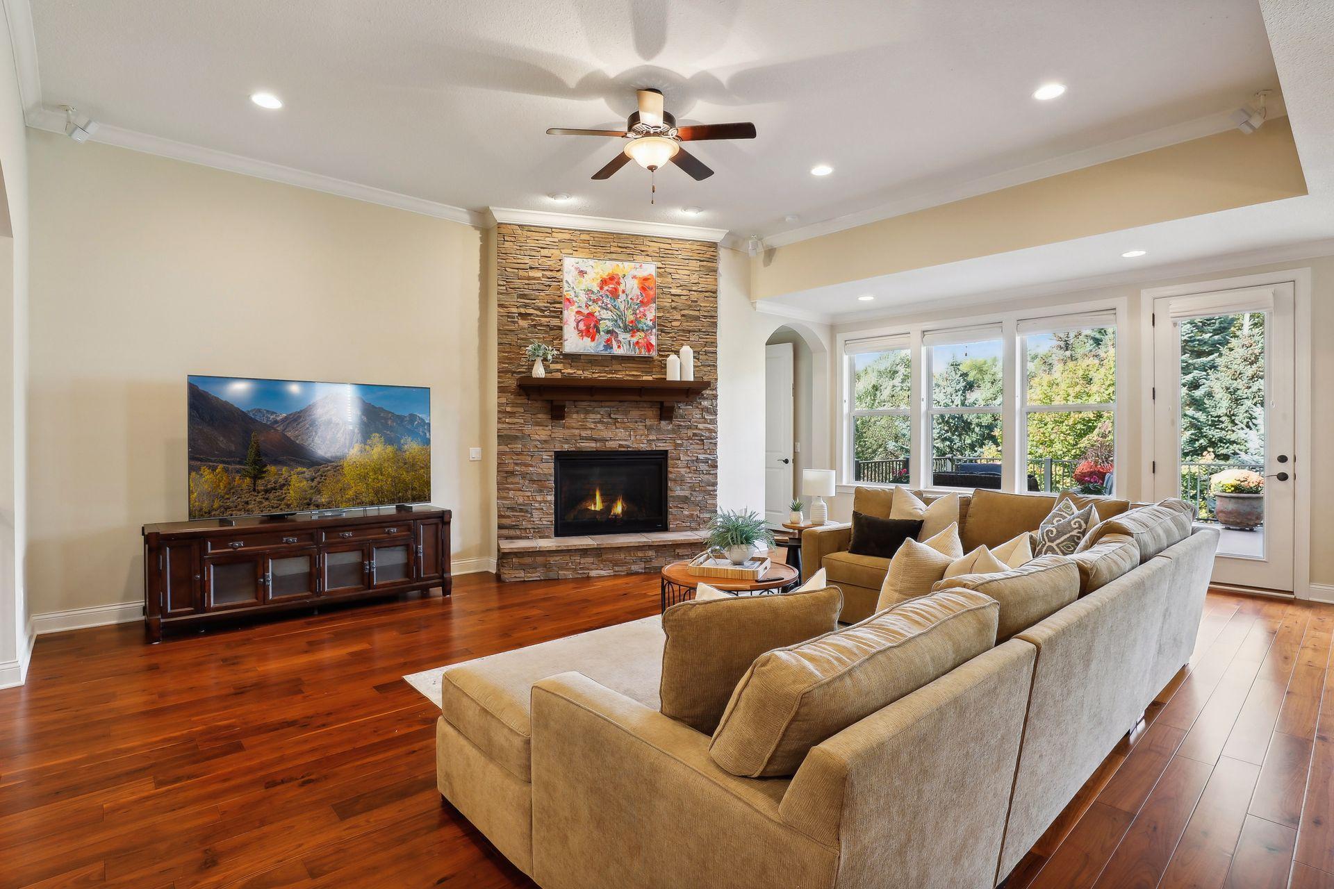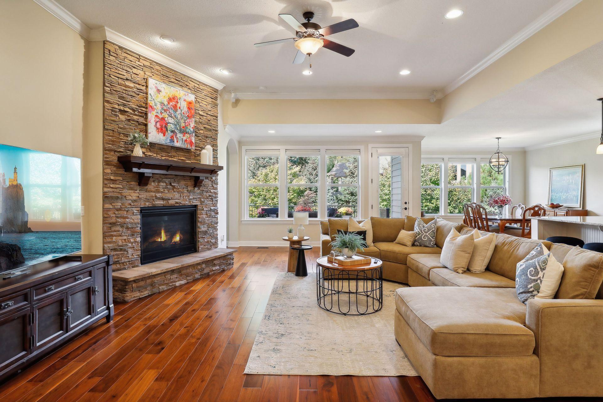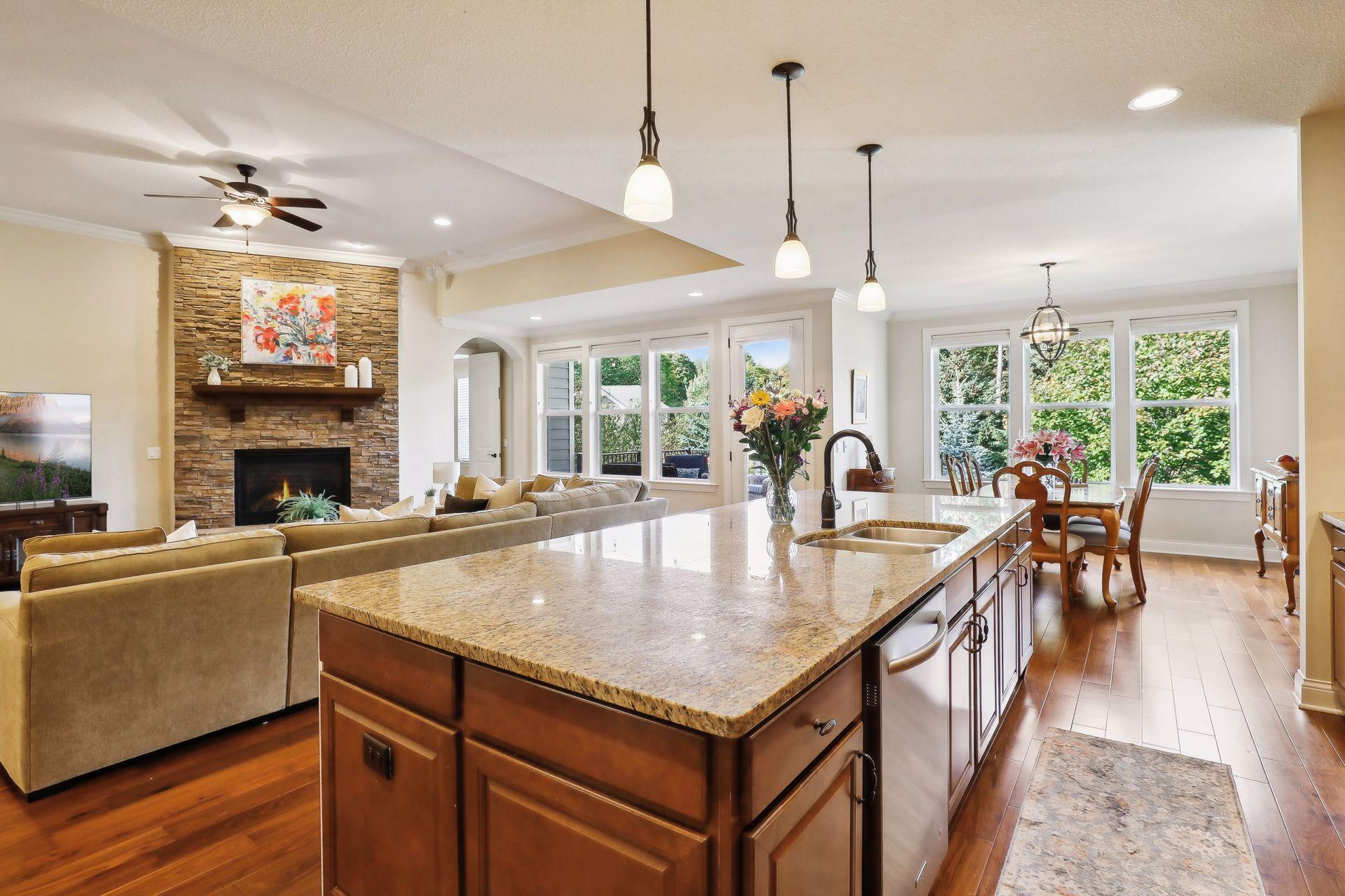 Enjoy main level living at it's finest with this rare opportunity in desired Palmer Pointe development, featuring private beach on Lake Minnetonka, clubhouse & heated community pool! Step inside to beautiful wood floors, soaring ceilings, 8 foot doors throughout & open views to the tree-filled lot! Convenience & beauty combine with 3 bedrooms including J&J Bath & Laundry Room on the 1st floor! Escape to the spacious Primary Suite with lovely views, 2 walk-in closets & private bath with soaking tub & separate shower! Gourmet Kitchen overlooks your Living Room showcased by the gorgeous stone gas fireplace, & enjoy stunning western sunsets from the Dining Room or relax on the oversized maintenance-free deck! The front Den offers flexibility as an option for Office, Playroom or Sunroom & nook off the Kitchen is perfect for additional working space! Journey into the newly finished basement (2022) & be wowed with expansive entertaining spaces, gas fireplace, bar area, 2 Bedrooms plus workout/flex room! Enormous unfinished area provides almost endless storage possibilities! Options for Westonka or Minnetonka schools, with convenient bus stop for both! Trails & Lake Minnetonka Regional Park nearby!