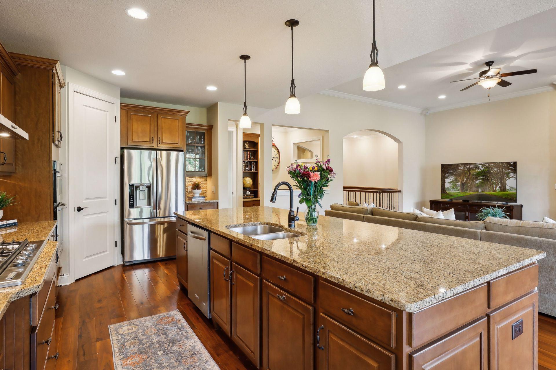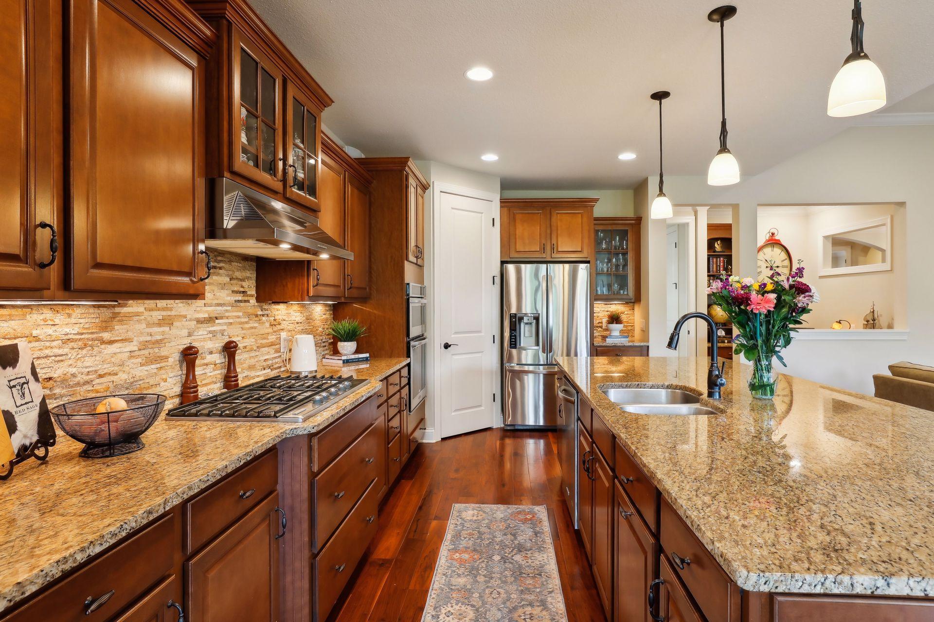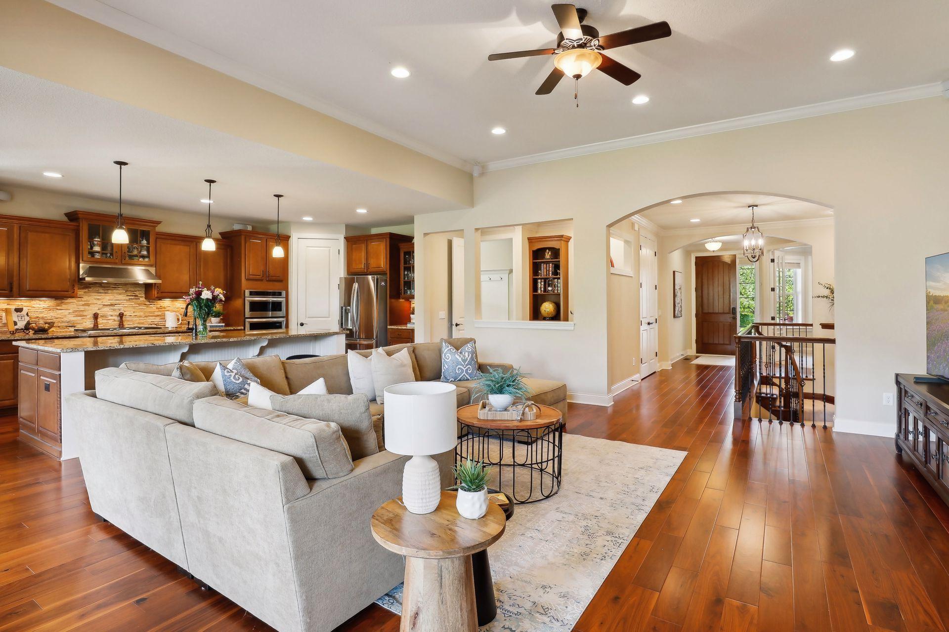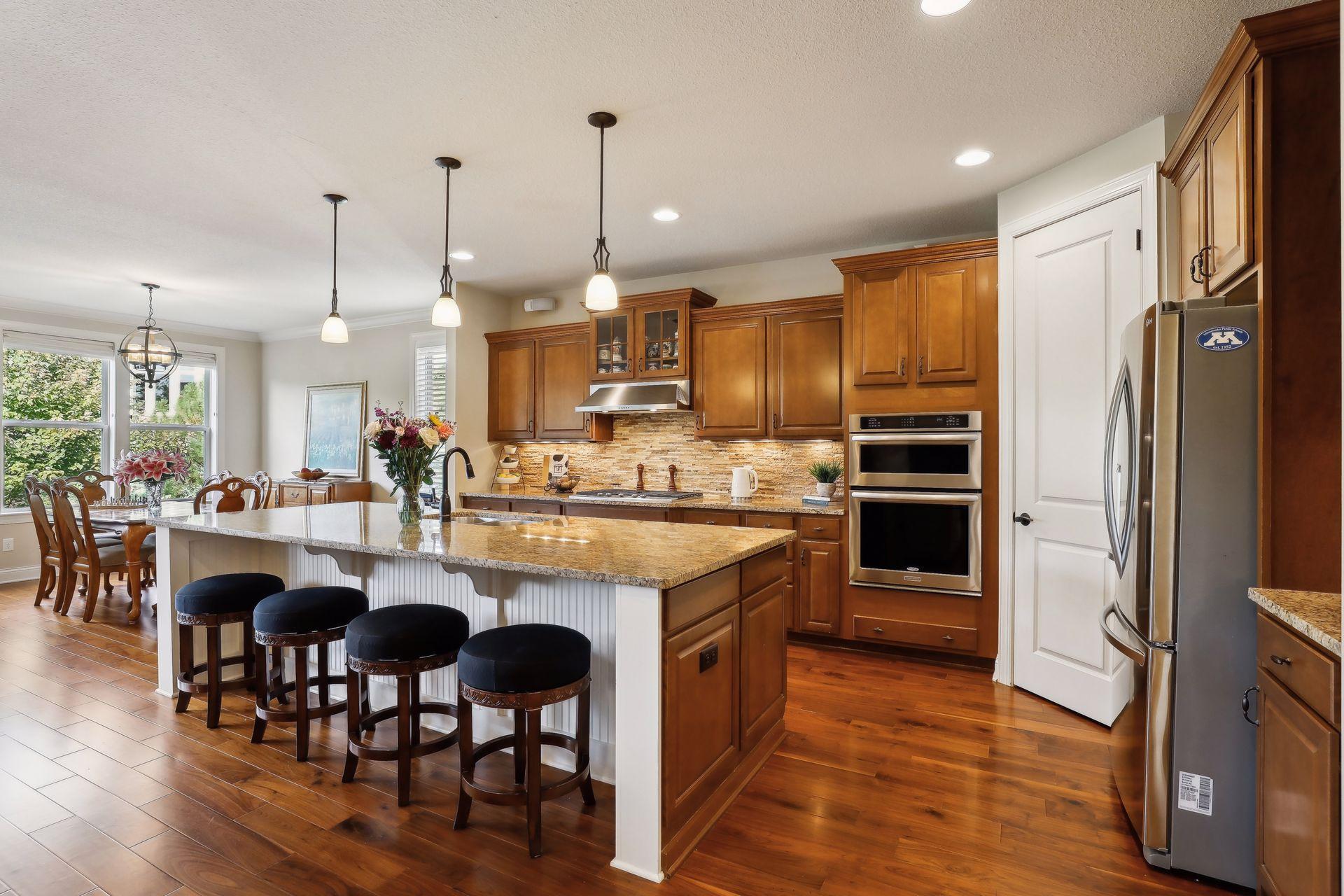 Enjoy main level living at it's finest with this rare opportunity in desired Palmer Pointe development, featuring private beach on Lake Minnetonka, clubhouse & heated community pool! Step inside to beautiful wood floors, soaring ceilings, 8 foot doors throughout & open views to the tree-filled lot! Convenience & beauty combine with 3 bedrooms including J&J Bath & Laundry Room on the 1st floor! Escape to the spacious Primary Suite with lovely views, 2 walk-in closets & private bath with soaking tub & separate shower! Gourmet Kitchen overlooks your Living Room showcased by the gorgeous stone gas fireplace, & enjoy stunning western sunsets from the Dining Room or relax on the oversized maintenance-free deck! The front Den offers flexibility as an option for Office, Playroom or Sunroom & nook off the Kitchen is perfect for additional working space! Journey into the newly finished basement (2022) & be wowed with expansive entertaining spaces, gas fireplace, bar area, 2 Bedrooms plus workout/flex room! Enormous unfinished area provides almost endless storage possibilities! Options for Westonka or Minnetonka schools, with convenient bus stop for both! Trails & Lake Minnetonka Regional Park nearby!