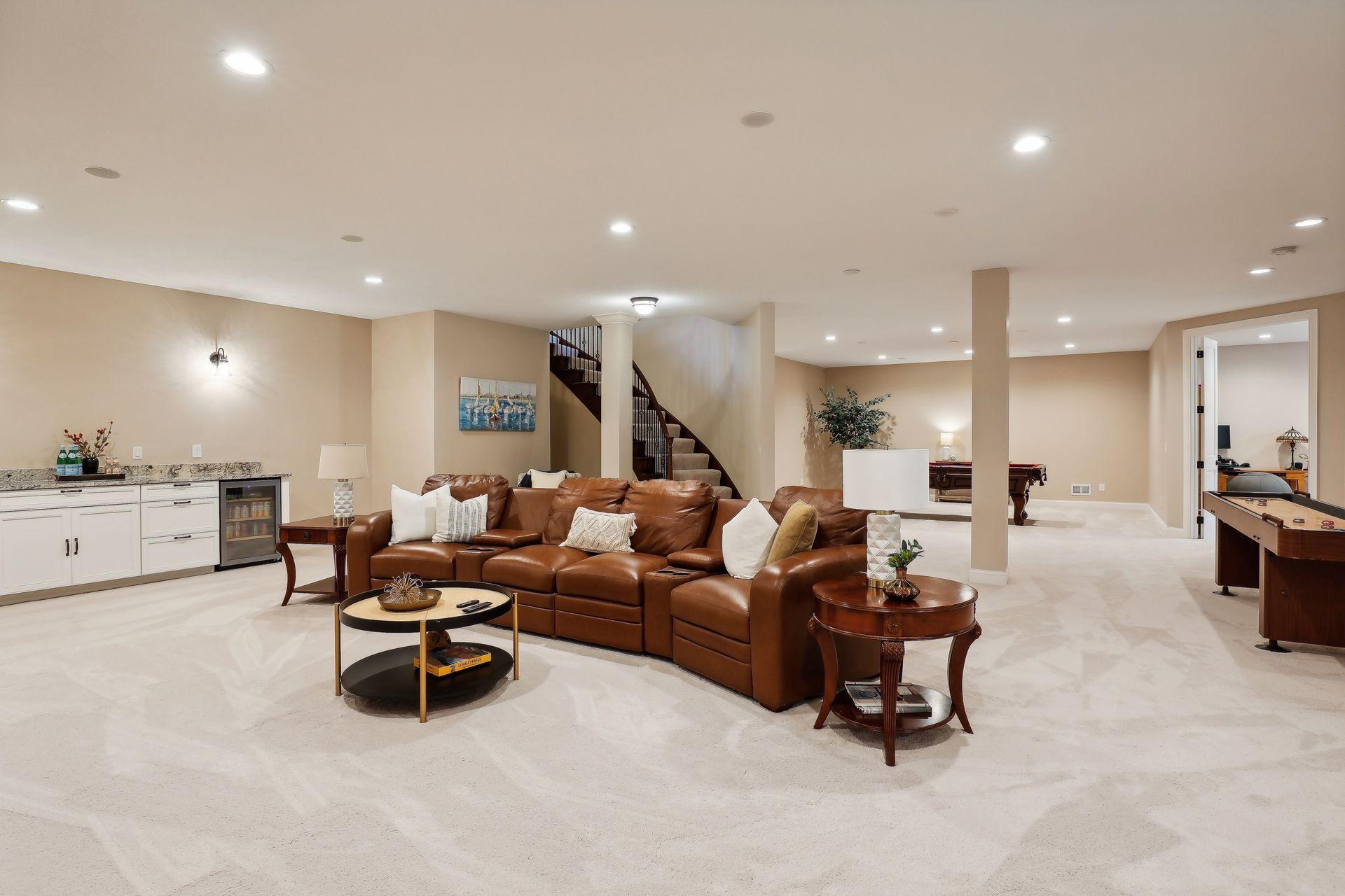 Basement Details: Daylight/Lookout Windows, Drain Tiled, 8 ft+ Pour, Finished, Concrete, Storage Space, Sump Pump,