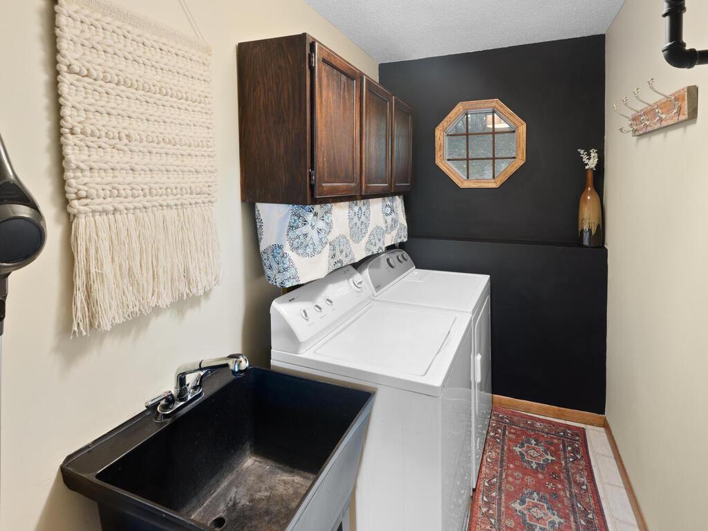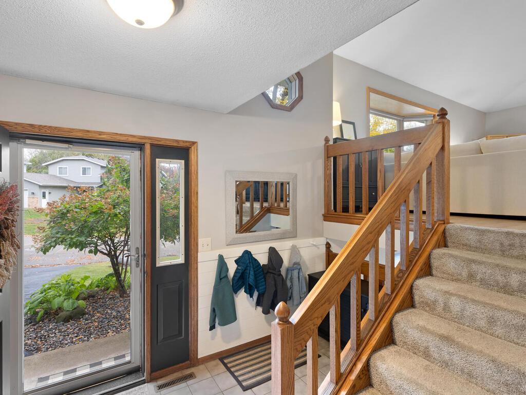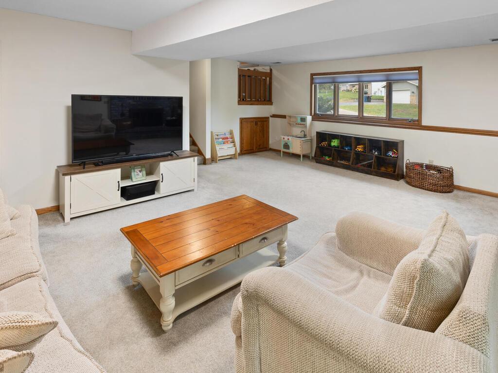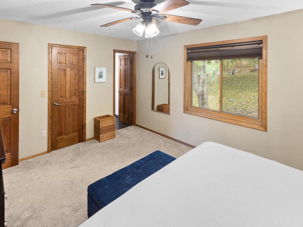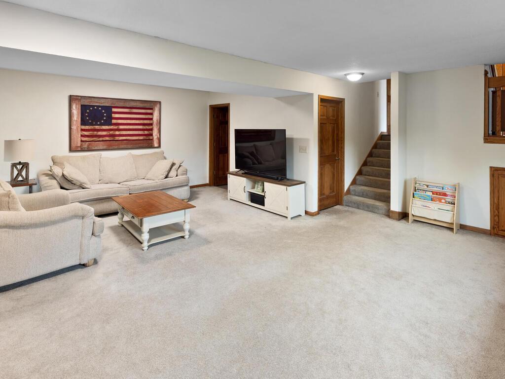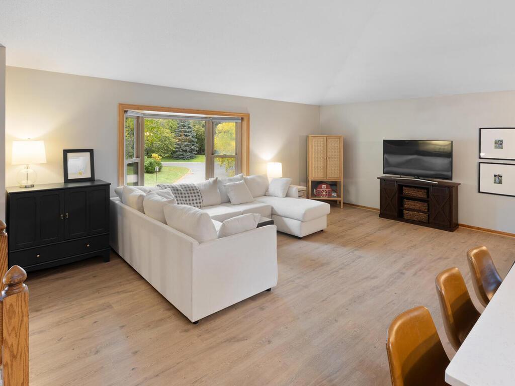 Beautifully updated home with a bright, open layout! The remodeled kitchen features a large center island and flows seamlessly into the living and dining areas-perfect for entertaining. Step outside to the deck and enjoy peaceful views of the treed backyard. Vaulted ceilings and skylights fill the space with natural light. Three bedrooms on one level offer comfort and convenience, including a private primary suite with a remodeled bath and laundry room on the same level. The lower level boasts a cozy family room with a wood-burning fireplace, ideal for gatherings. Immaculate condition with stylish updates throughout - truly move-in ready. Fantastic location within walking distance to Bass Lake Playfield, parks, and trails. A perfect blend of modern design and everyday comfort!