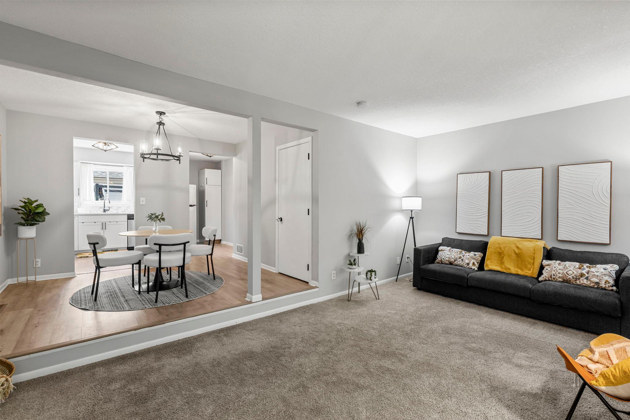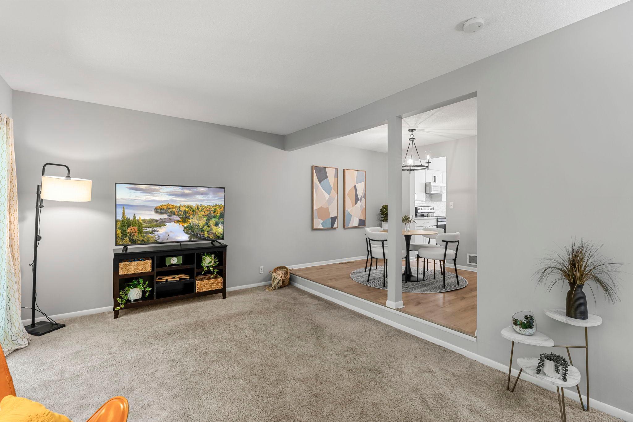 Renovated in 2022 with upgraded electrical service, water heater, new windows, kitchen appliances, quartz countertops, backsplash, new bathroom vanities and faucets and recently freshened up paint, this 3 bedroom, 3 bath, 2 stall garage townhouse is value packed! Enjoy two main living areas and a walkout lower level near trails. The home backs up to wooded privacy. Your outdoor spaces include 2 balconies, a front courtyard, and a patio off of the walkout lower level. Enjoy the association's pool, tennis courts, community room and playground. Prime location near 694, dining, parks, trails, recreation and entertainment. Dogs and cats are allowed but must be licensed with the City of Fridley. Rentals allowed but restrictions apply. Quick close possible.