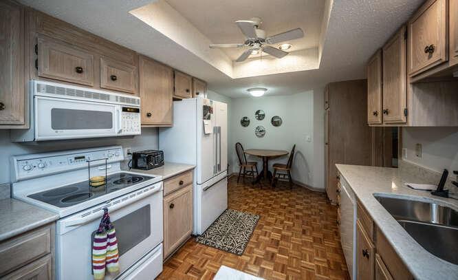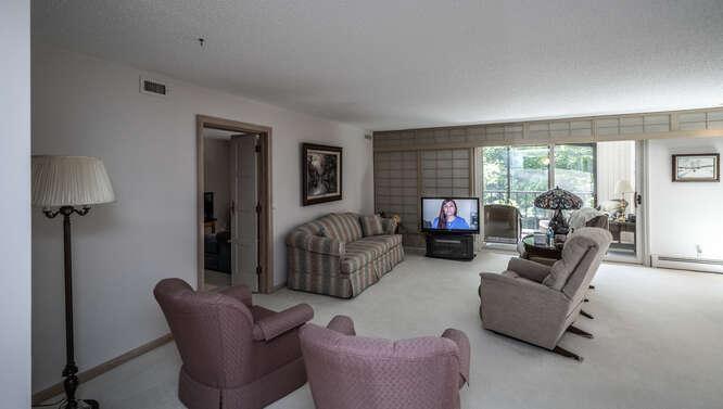 Lovely & Spacious Corner Unit - 2 bedroom +Den Welcome to this bright and beautiful maintained corner unit offering a thoughtful layout and ample space throughout. Featuring 2 bedrooms plus a versatile den, this home boasts an open-concept living room filled with natural light, a formal dining area ideal for entertaining, and an eat-in kitchen with generous counter space and storage. Retreat to the generous master suite complete with a private balcony, walk-in closet, and a luxurious en-suite bath featuring a double vanity. The second bathroom is nicely sized and adjacent to a tasteful full guest bath. Additional convivences include a dedicated laundry room with folding space and extra storage. Start your mornings in the sprawling, sun-drenched 4 season porch perfect for enjoying coffee year-round. Community amenities include: Indoor/Outdoor Pool Tennis Courts Scenic Walking Paths Don't miss you chance to enjoy comfort, space, and community in this expansive home!