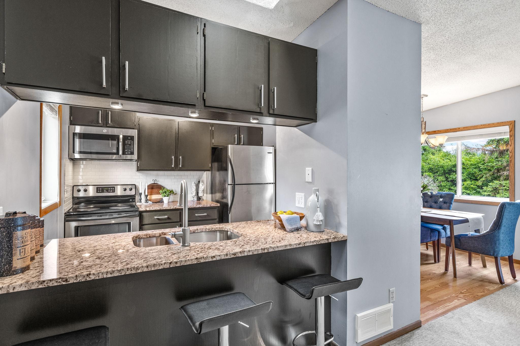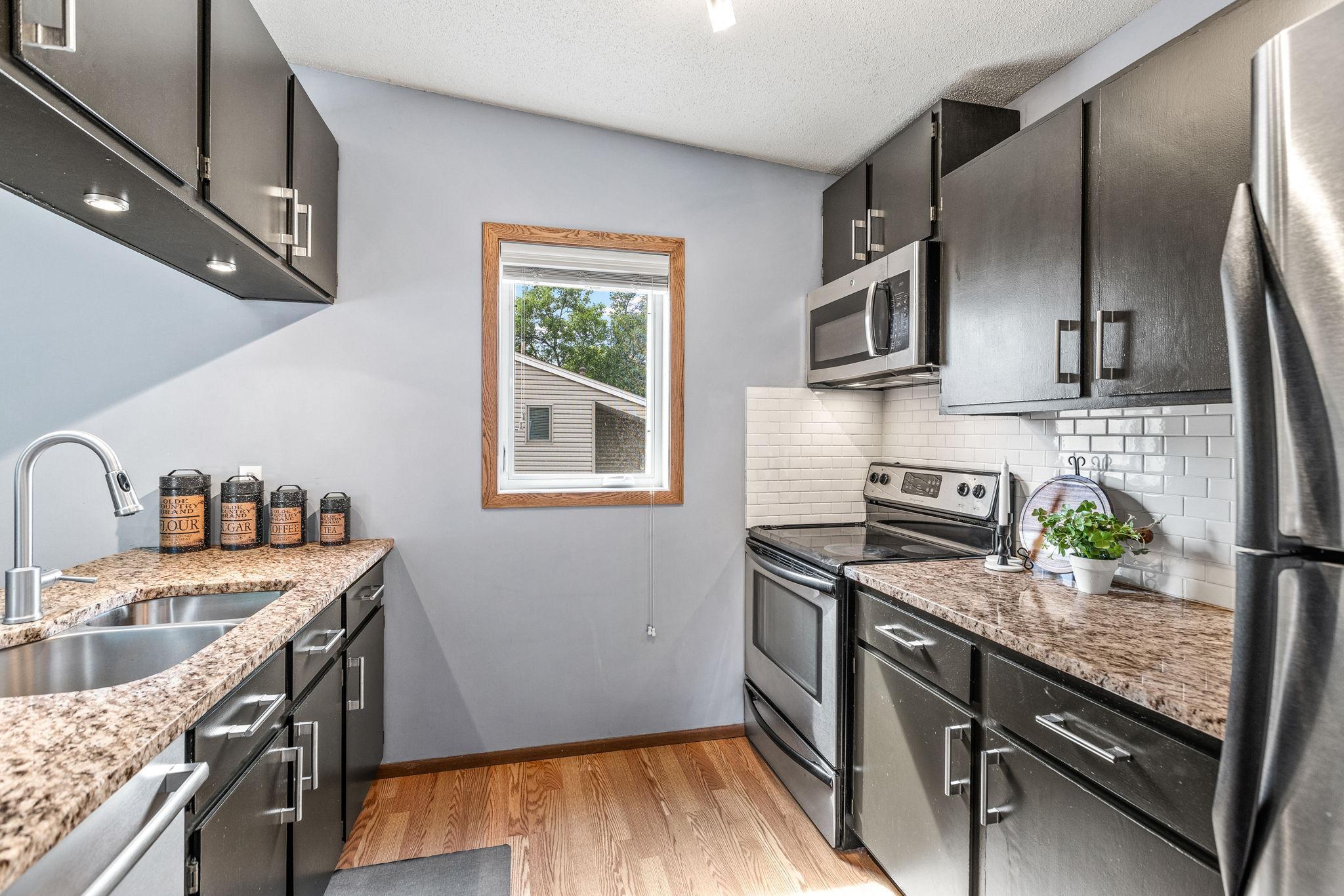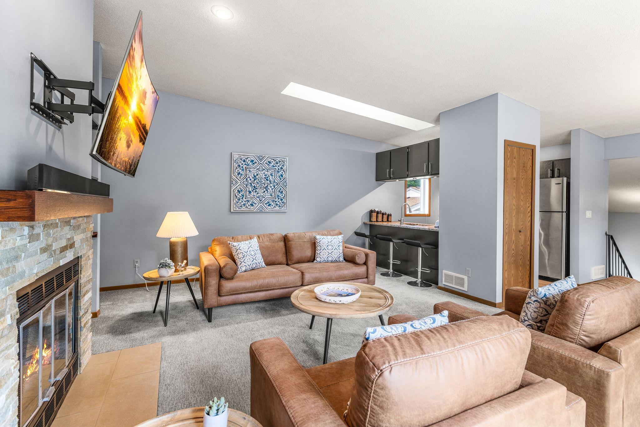 Welcome to this beautifully updated 2-bedroom, 2-bath townhome that combines modern elegance with everyday convenience. Perfectly situated in a prime Minnetonka location, you’ll enjoy quick access to restaurants, shopping, scenic trails, and major highways. Step inside to find a bright, open-concept layout with soaring vaulted ceilings, a skylight, and large balcony doors that flood the home with natural light. The living room features a newer fireplace, perfect for cozy evenings, while the updated kitchen is a chef’s delight with granite countertops, stainless steel appliances, and ample space for entertaining. Recent updates include newer carpet, fresh paint, stylish light fixtures, and an updated AC unit. The roof is less than 8 years old, and the lower-level windows have already been replaced—giving you peace of mind. Host summer gatherings on the easy-to-maintain deck or relax in privacy with the benefits of a corner unit. The association offers a well-run community with low monthly fees, making it an excellent choice for those seeking both comfort and value. This is everything you want in a Minnetonka townhome—style, updates, location, and affordability—all wrapped into one!