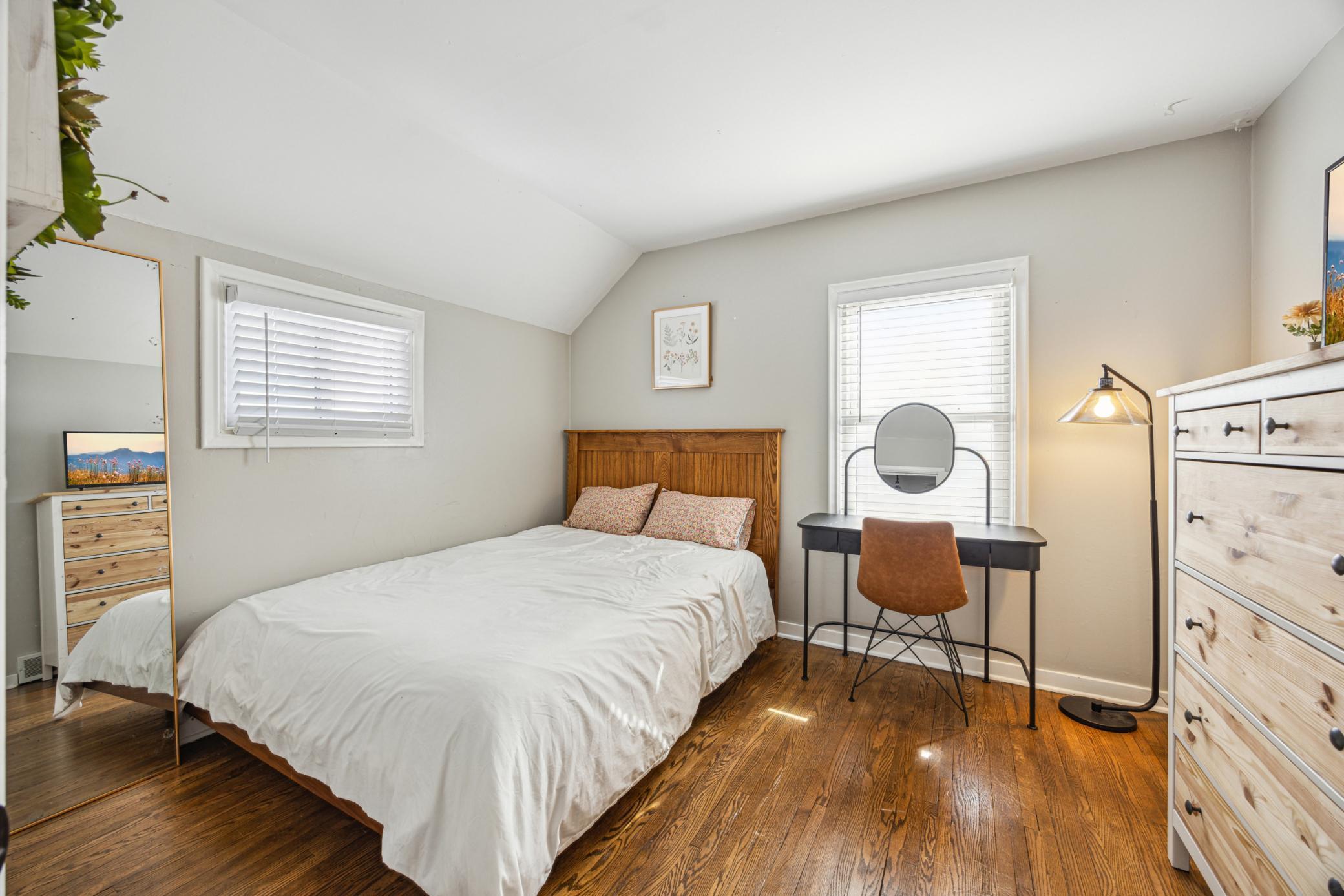 Discover this delightful 3-bedroom home, Featuring beautiful hardwood floors throughout, this home exudes warmth and character while offering modern conveniences. Enjoy peace of mind! The beautiful, renovated kitchen offers ample space, granite tops, and kitchen window. The large, fully fenced backyard provides a private retreat, perfect for entertaining, gardening, or letting pets roam freely. The oversized 2-stall detached garage offers ample storage and workspace for hobbyists or extra parking. With low-maintenance vinyl siding and a well-designed layout, this home is the perfect blend of charm and practicality. Don't miss this opportunity—schedule your showing today!