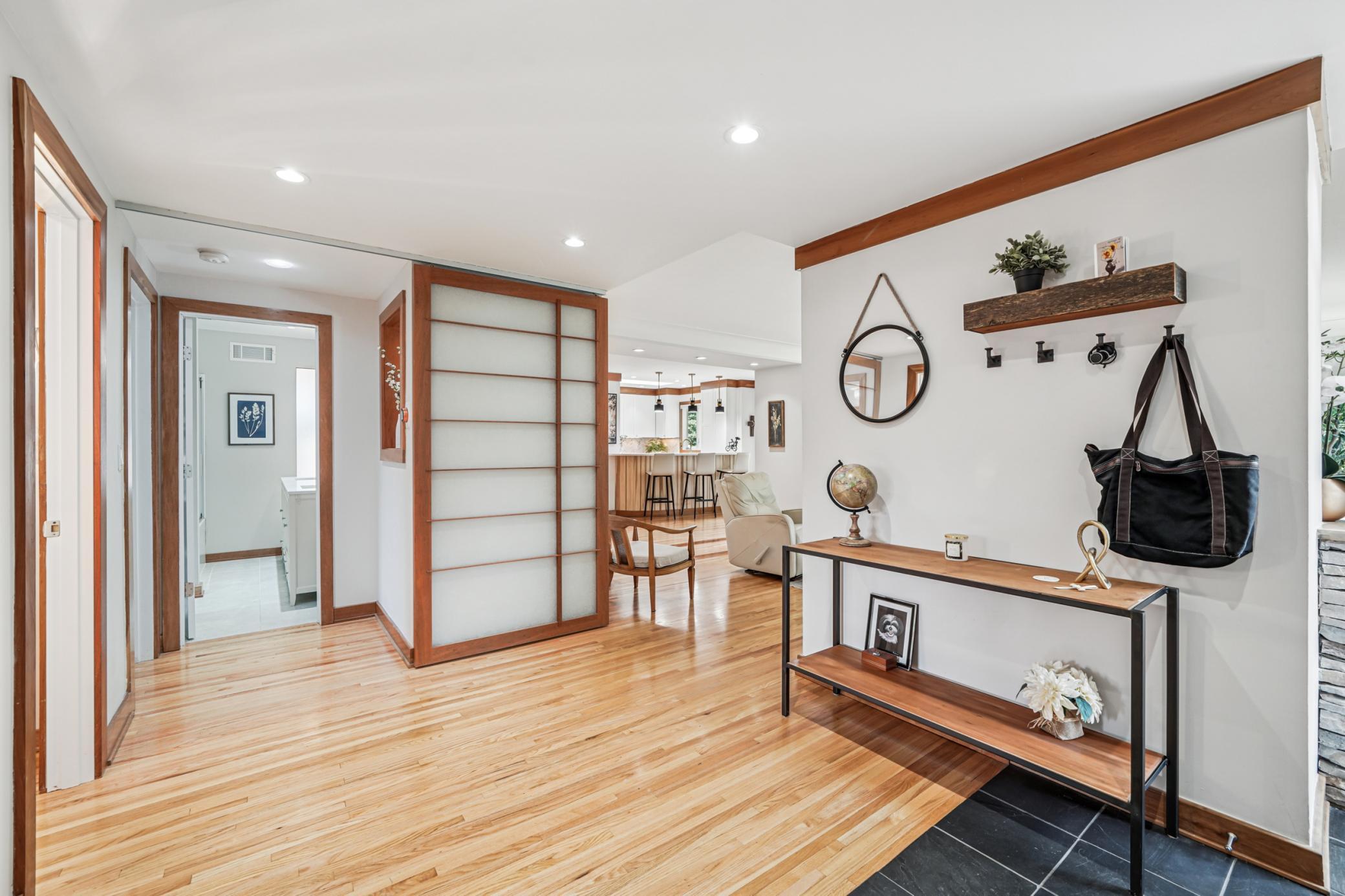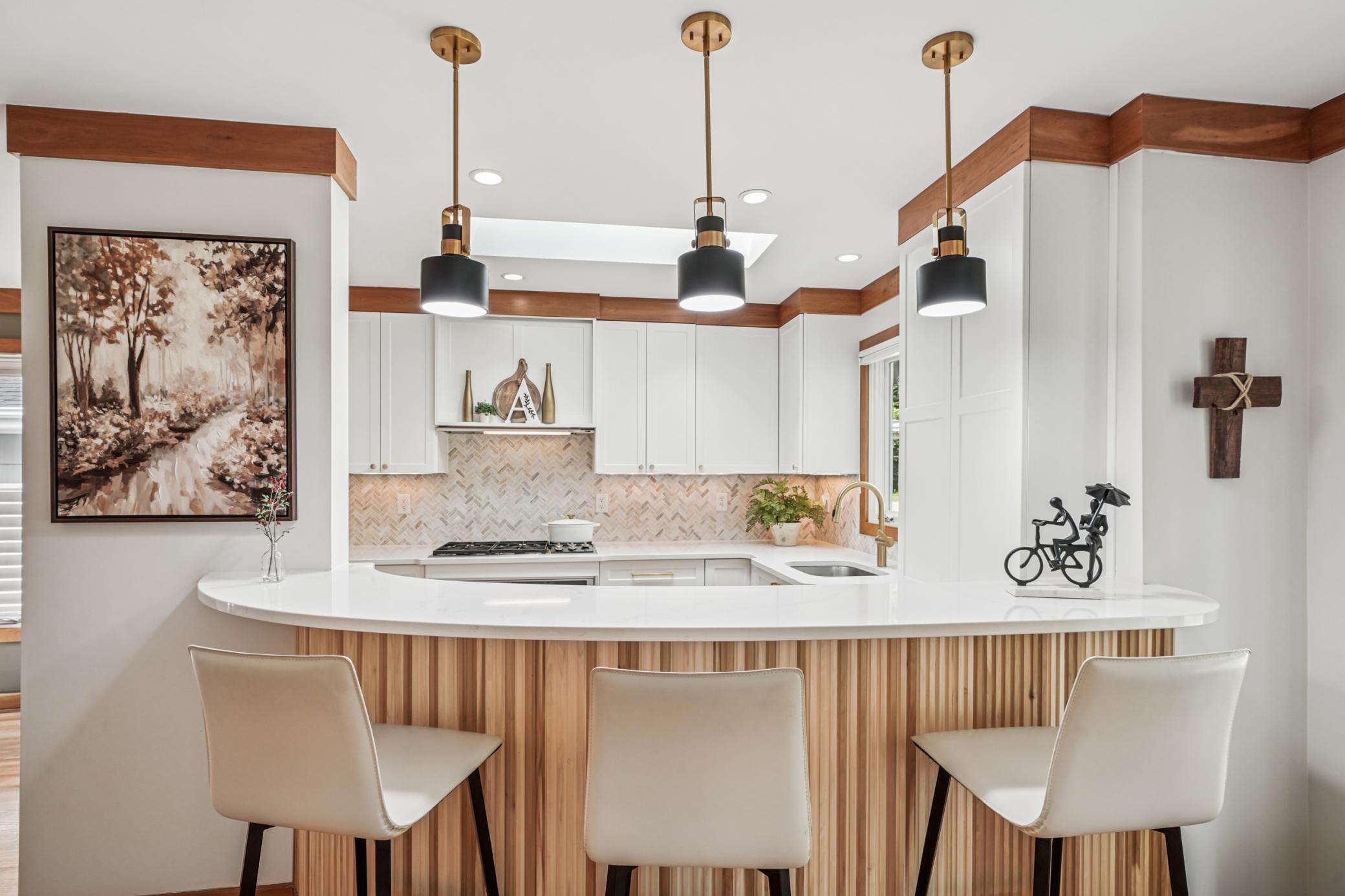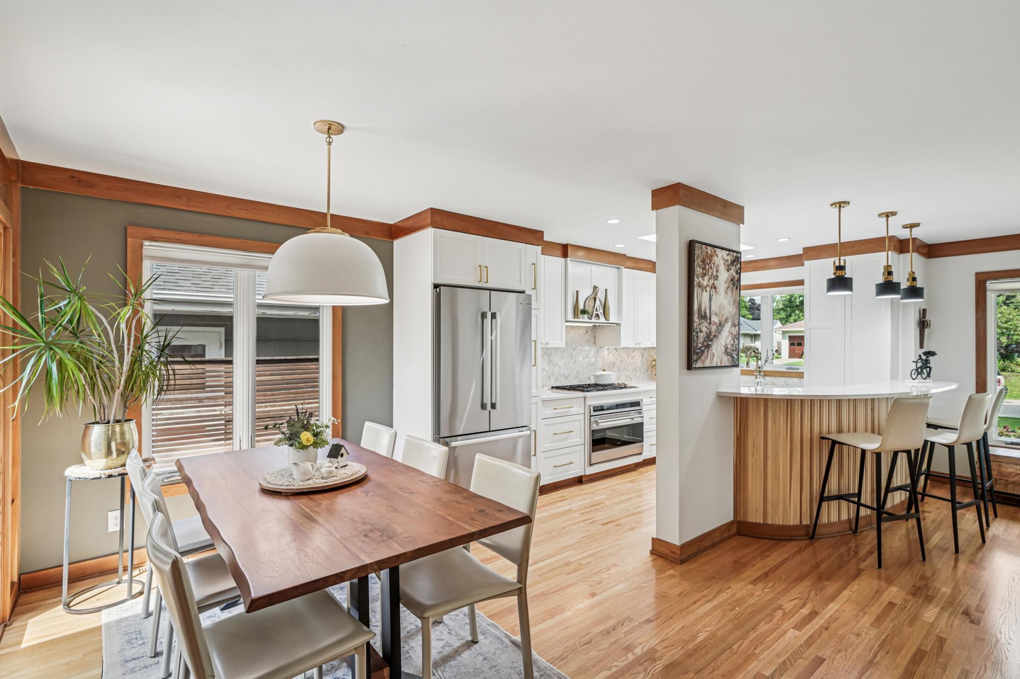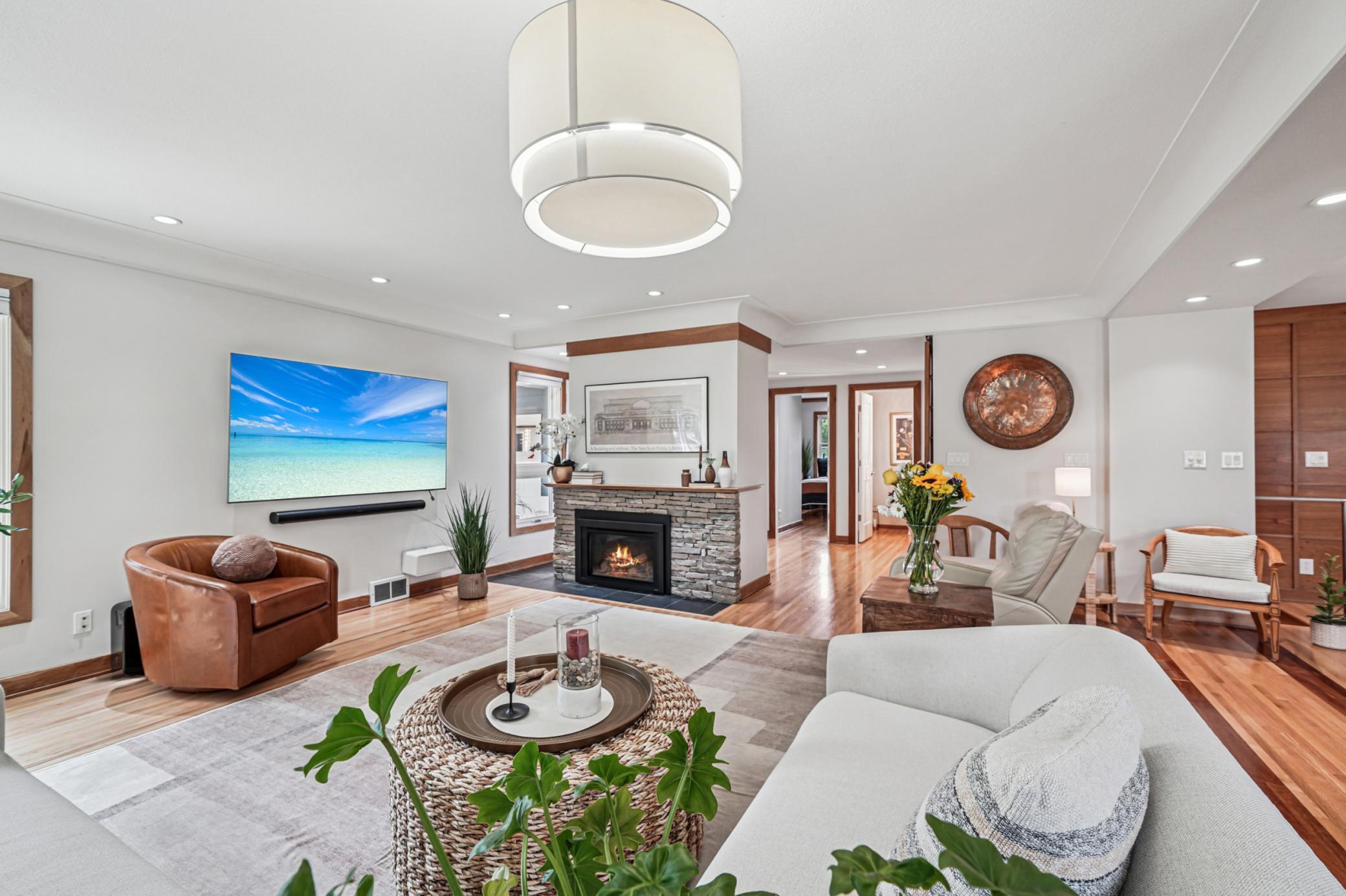 Modern midcentury style shines in this move-in ready home featuring distinctive architectural millwork with maple inlay crown molding, flat-panel wall accents,hardwood floors throughout the main level, and distinctive light fixtures that tie the whole look together. The spacious living room features a gas fireplace and oversized windows that fill the home with natural light. The updated eat-in kitchen showcases white cabinetry, granite counters, a striking chevron tile backsplash, and a peninsula with a fluted wood base design feature. Decorative Shoji doors add a unique touch. The owner’s suite offers an updated bath with a double vanity. The walkout lower level is ideal for guests or an in-law suite, complete with a family room and gas fireplace, two bedrooms, a ¾ bath, laundry with kitchenette, office/playroom nook, flex room, and new flooring throughout. Two decks provide easy outdoor living—one off the dining room and another behind the garage with sliding doors that brighten the space and make grilling convenient. Fabulous curb appeal in a prime location near Southdale and 50th & France. A true entertainer’s home with over $150K in updates, improvements, and meticulous care (see supplements). Seller to include a one-year home warranty. The home has been pre-inspected by the sellers.