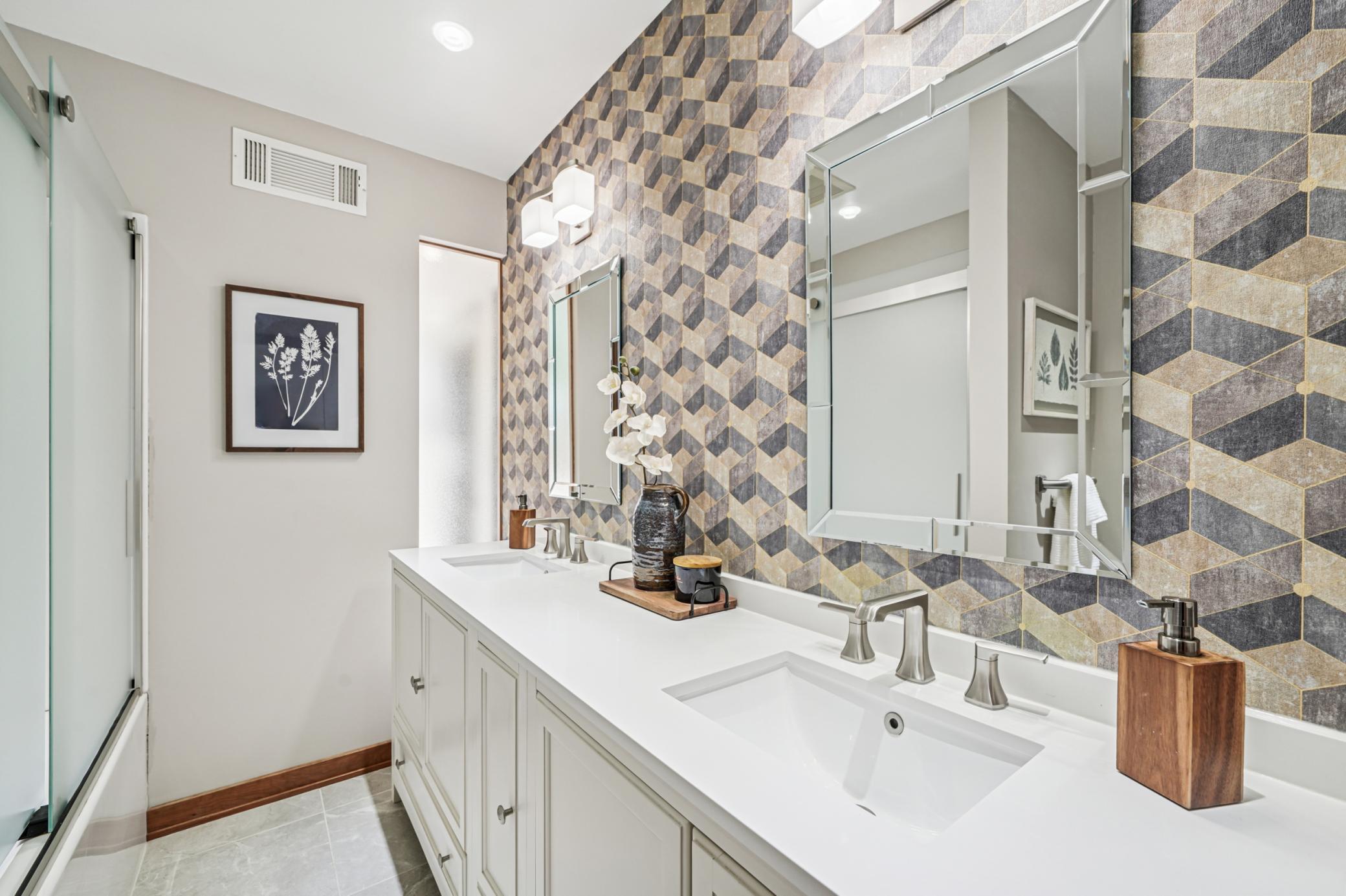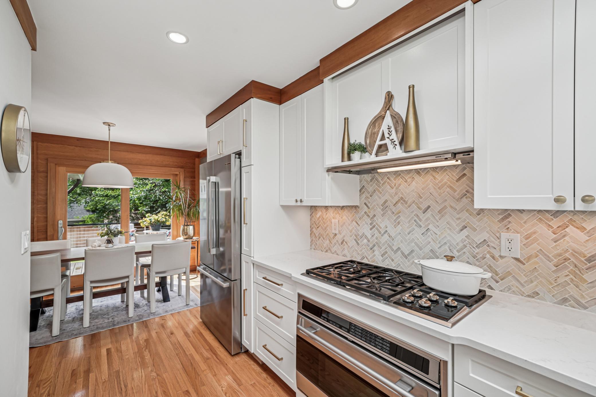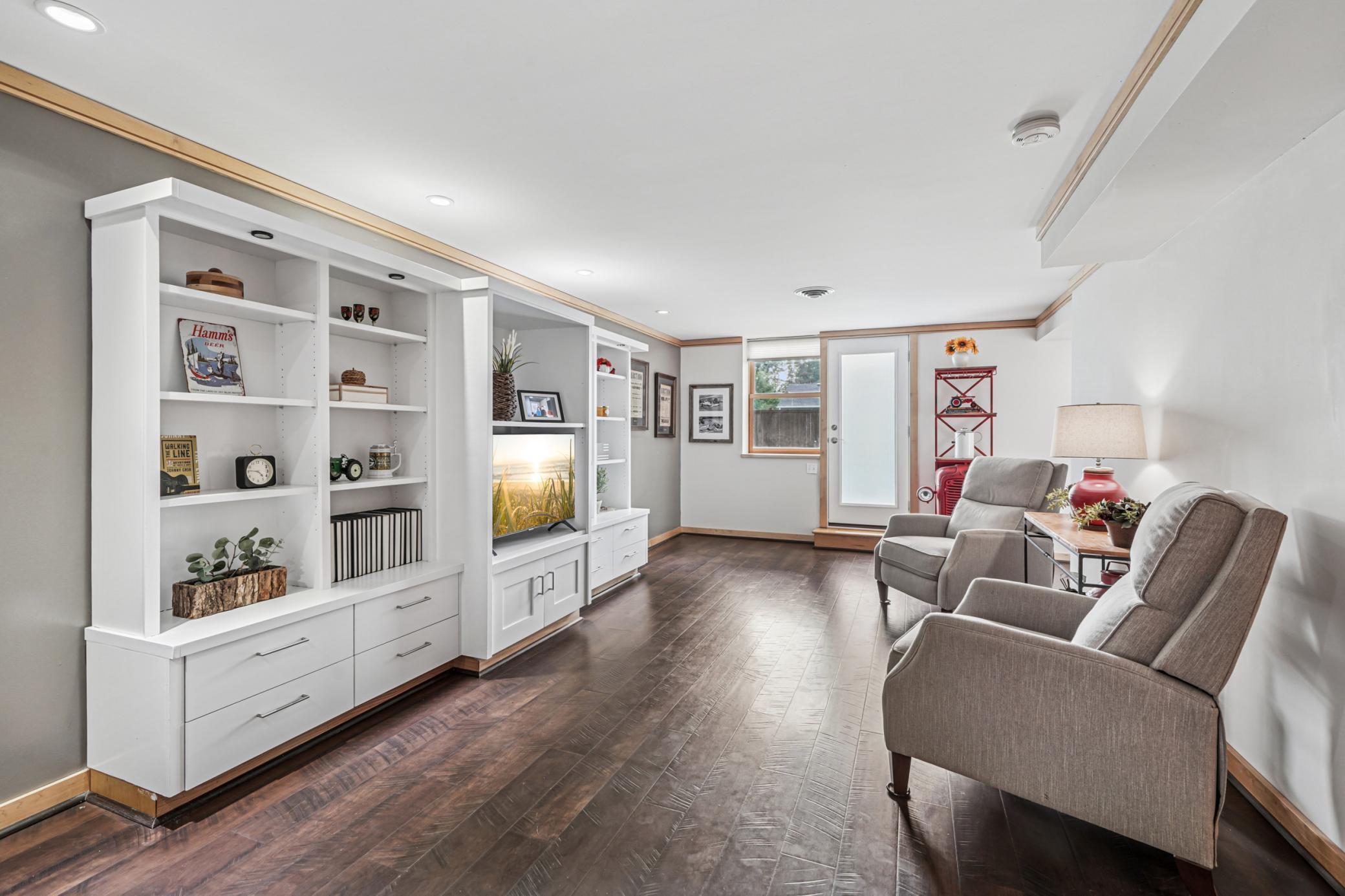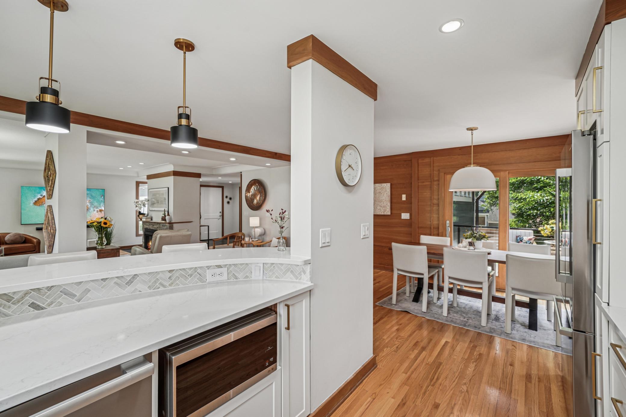 Modern midcentury style shines in this move-in ready home featuring distinctive architectural millwork with maple inlay crown molding, flat-panel wall accents,hardwood floors throughout the main level, and distinctive light fixtures that tie the whole look together. The spacious living room features a gas fireplace and oversized windows that fill the home with natural light. The updated eat-in kitchen showcases white cabinetry, granite counters, a striking chevron tile backsplash, and a peninsula with a fluted wood base design feature. Decorative Shoji doors add a unique touch. The owner’s suite offers an updated bath with a double vanity. The walkout lower level is ideal for guests or an in-law suite, complete with a family room and gas fireplace, two bedrooms, a ¾ bath, laundry with kitchenette, office/playroom nook, flex room, and new flooring throughout. Two decks provide easy outdoor living—one off the dining room and another behind the garage with sliding doors that brighten the space and make grilling convenient. Fabulous curb appeal in a prime location near Southdale and 50th & France. A true entertainer’s home with over $150K in updates, improvements, and meticulous care (see supplements). Seller to include a one-year home warranty. The home has been pre-inspected by the sellers.