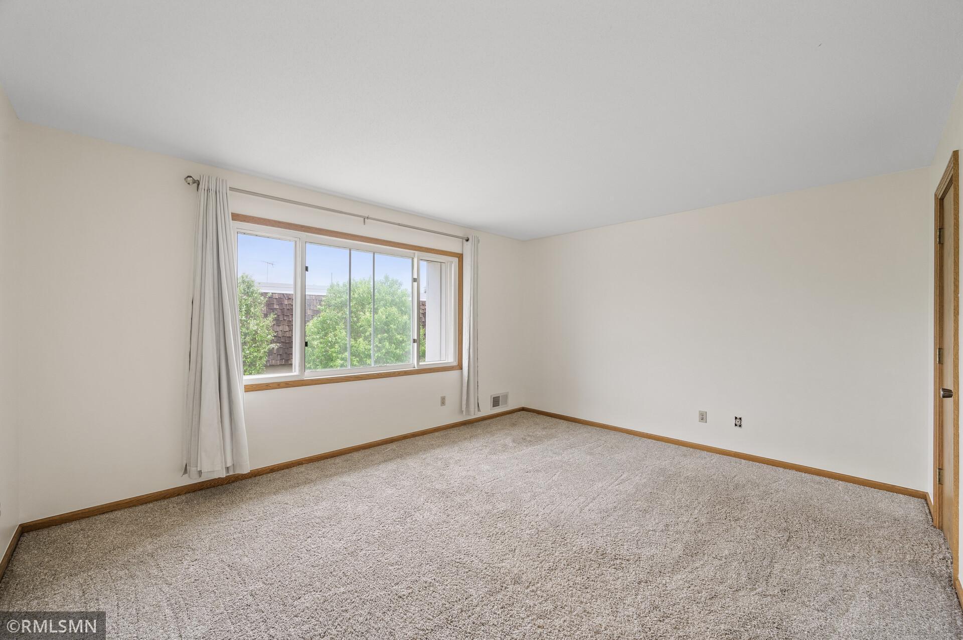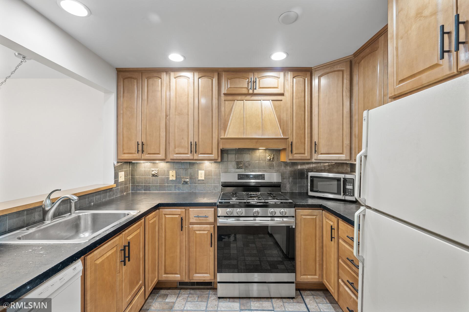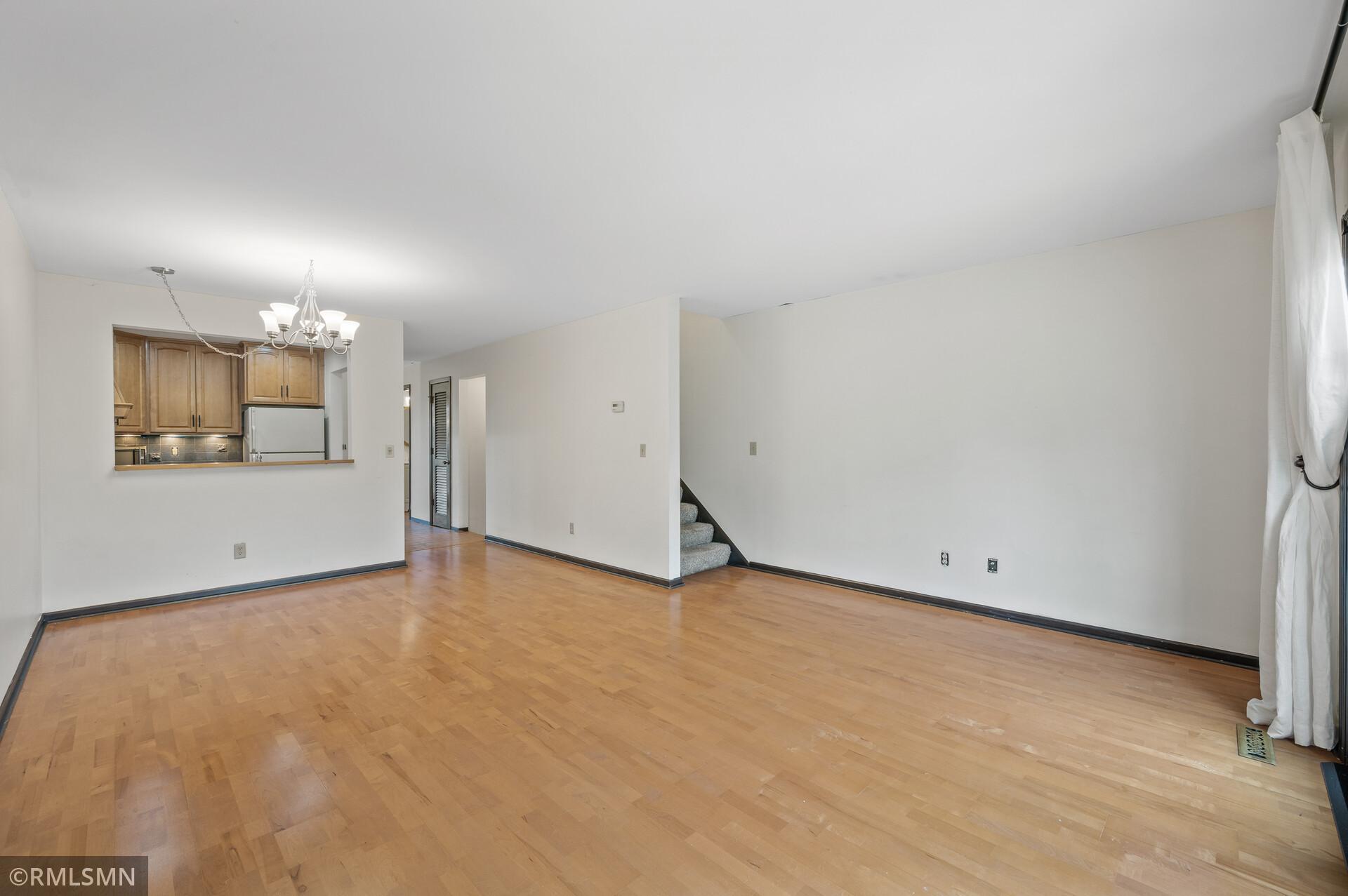 Welcome to Hidden Village! This well-maintained complex is close to shopping, restaurants, parks, and highway access, plus only 12 minutes from downtown. It has an open kitchen with new cabinets and a new stainless steel stove with a built-in air fryer. The main floor's open layout takes full advantage of the light from the floor-to-ceiling patio doors and windows. The private patio features easily maintained blooming flowers. The half bath on the main floor has a new sink and vanity, and the upstairs bathroom has an oversized vanity, a large ceramic shower with a bench, and a multiple-setting shower head. Both bedrooms have walk-in closets and large windows bringing in natural light. This townhome features a full basement with flexible space and storage in the laundry room.