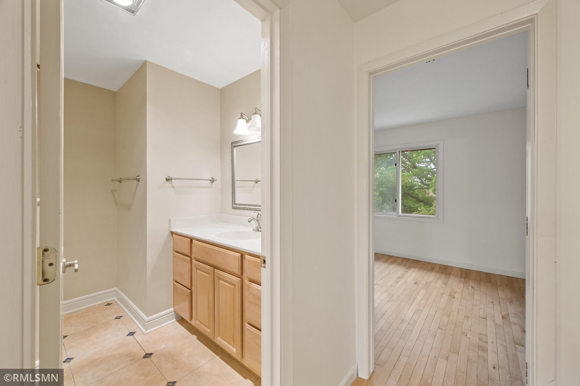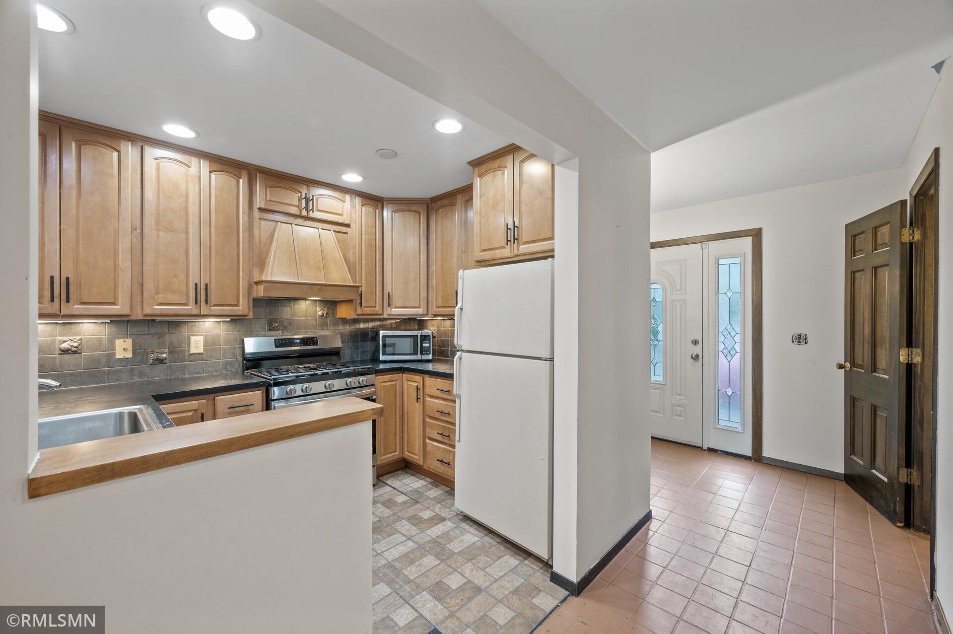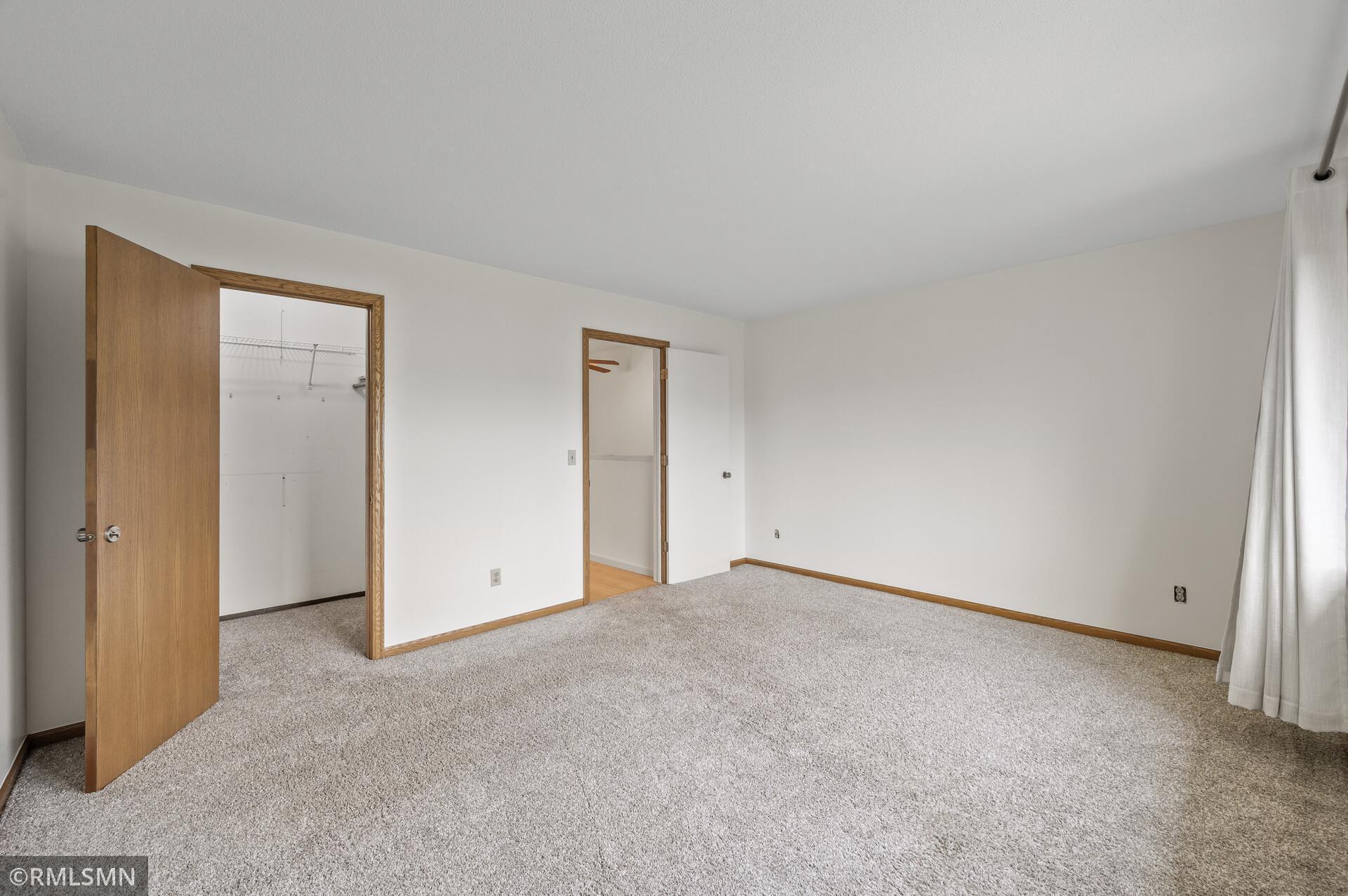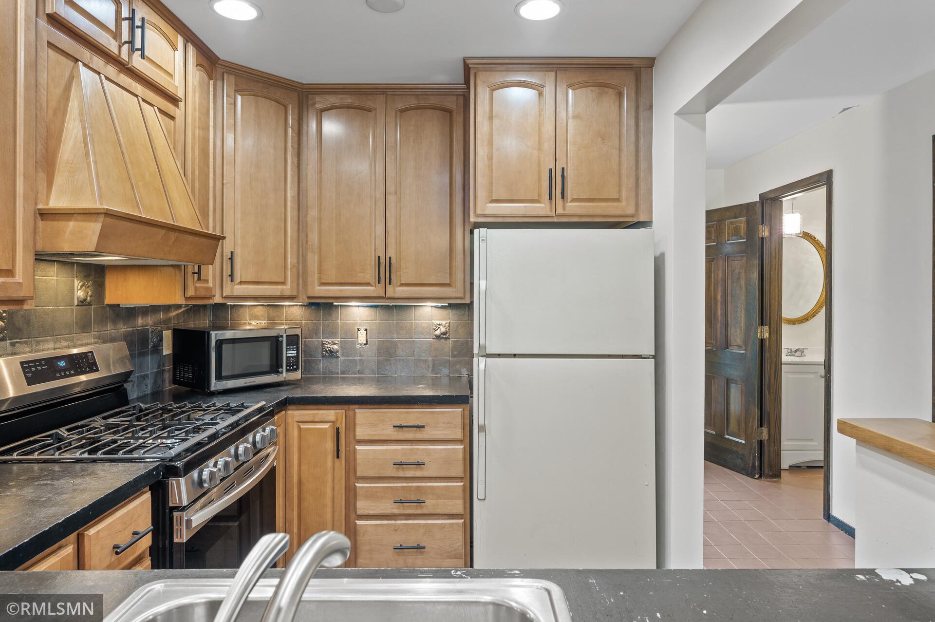 Welcome to Hidden Village! This well-maintained complex is close to shopping, restaurants, parks, and highway access, plus only 12 minutes from downtown. It has an open kitchen with new cabinets and a new stainless steel stove with a built-in air fryer. The main floor's open layout takes full advantage of the light from the floor-to-ceiling patio doors and windows. The private patio features easily maintained blooming flowers. The half bath on the main floor has a new sink and vanity, and the upstairs bathroom has an oversized vanity, a large ceramic shower with a bench, and a multiple-setting shower head. Both bedrooms have walk-in closets and large windows bringing in natural light. This townhome features a full basement with flexible space and storage in the laundry room.
