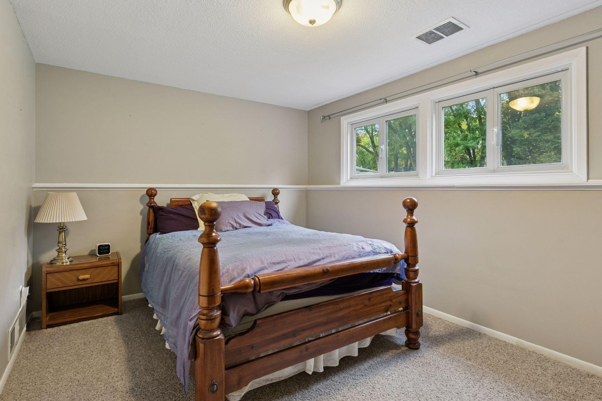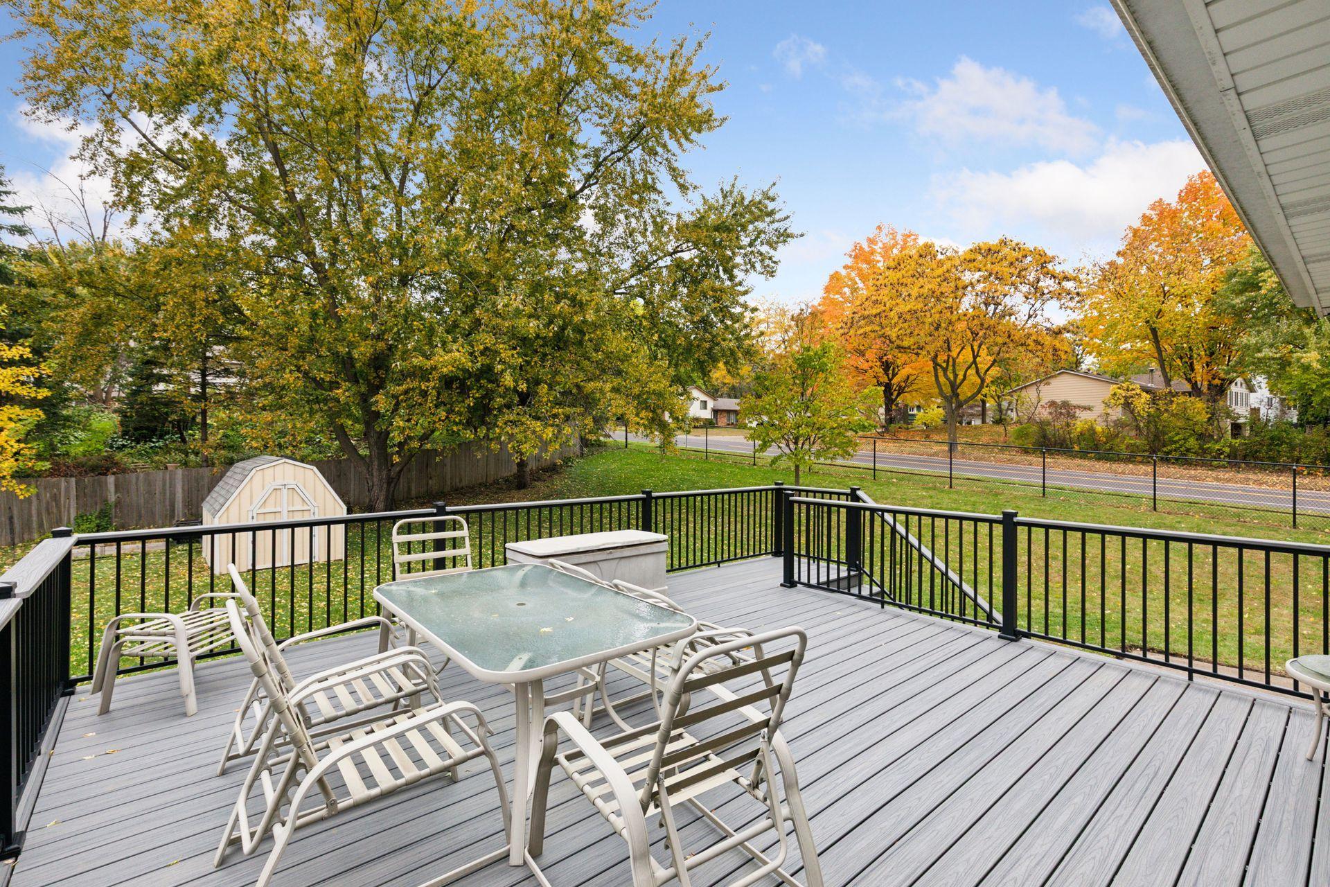 Wonderful opportunity to own a spacious split-foyer home in the highly sought-after Greenleaf neighborhood of Apple Valley! Located within the award-winning Eastview High, Falcon Ridge Middle, and Greenleaf Elementary school boundaries, this home offers 4 bedrooms, 2 baths, and an inviting open layout filled with natural light. The stunning kitchen features rich Hickory-style cabinetry with soft-close doors and drawers, stainless steel appliances, and an oversized center island with pendant lighting—perfect for the home chef and entertaining alike. Gleaming hardwood floors flow through the living and dining areas, where a large patio door opens to an expansive 18x18 maintenance-free deck overlooking the private, fenced 1/3-acre corner lot. The lower level includes a spacious family room with a cozy wood-burning fireplace, two additional bedrooms, a ¾ bath, and a bright laundry/utility room. Recent updates include a new HVAC system (2025), Composite 18x18 deck and a Timberline-style roof. Move-in ready and beautifully maintained—this one won’t last!