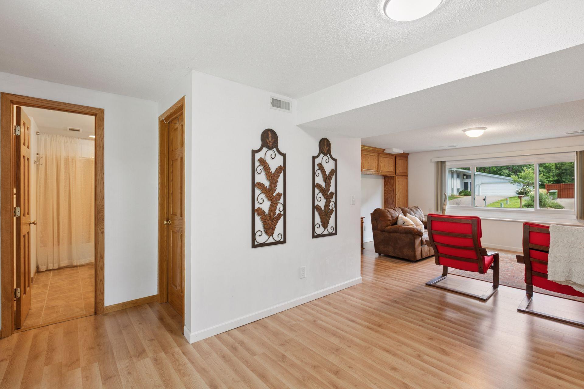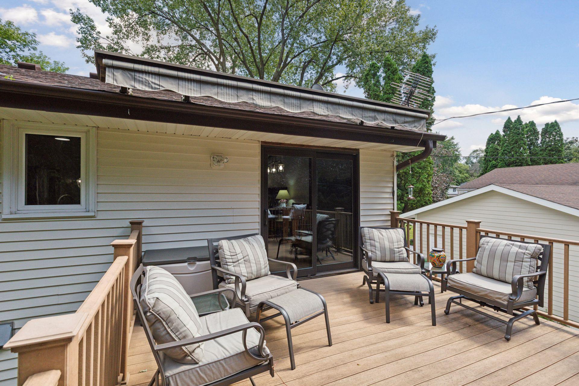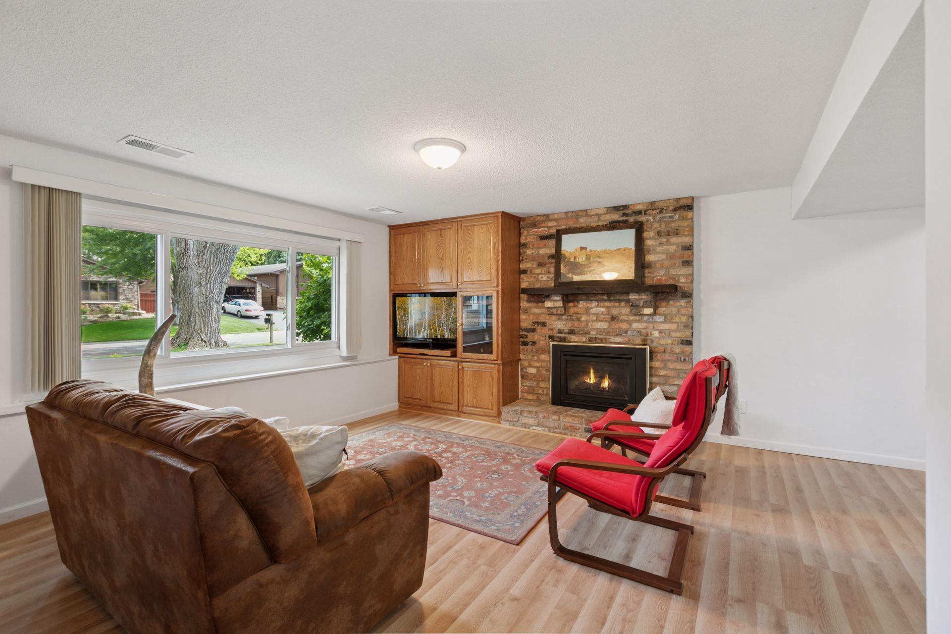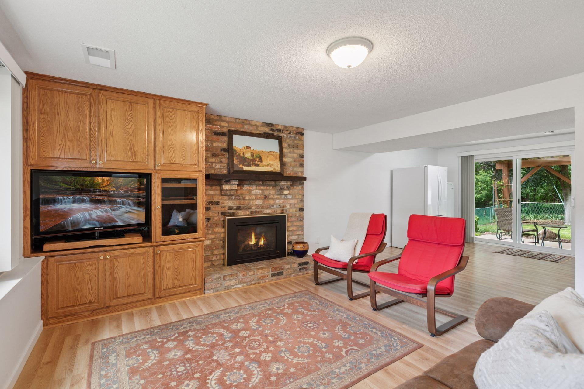 Impeccably maintained home in desirable Fridley location. Freshly updated kitchen with white cabinetry and stainless appliances flows seamlessly into the dining area, accented by exposed wood beams and direct deck access to a private, tree-lined backyard. Beautiful hardwood floors throughout main level. Three bedrooms on upper level provide excellent separation of space. Lower level family room showcases brick fireplace and custom built-ins. Generous lot with mature landscaping ensures maximum privacy. Attached two-car garage. Prime location near Locke Park and Moore Lake Commons with quick access to retail, restaurants, and major commuter routes. Don't miss this one.