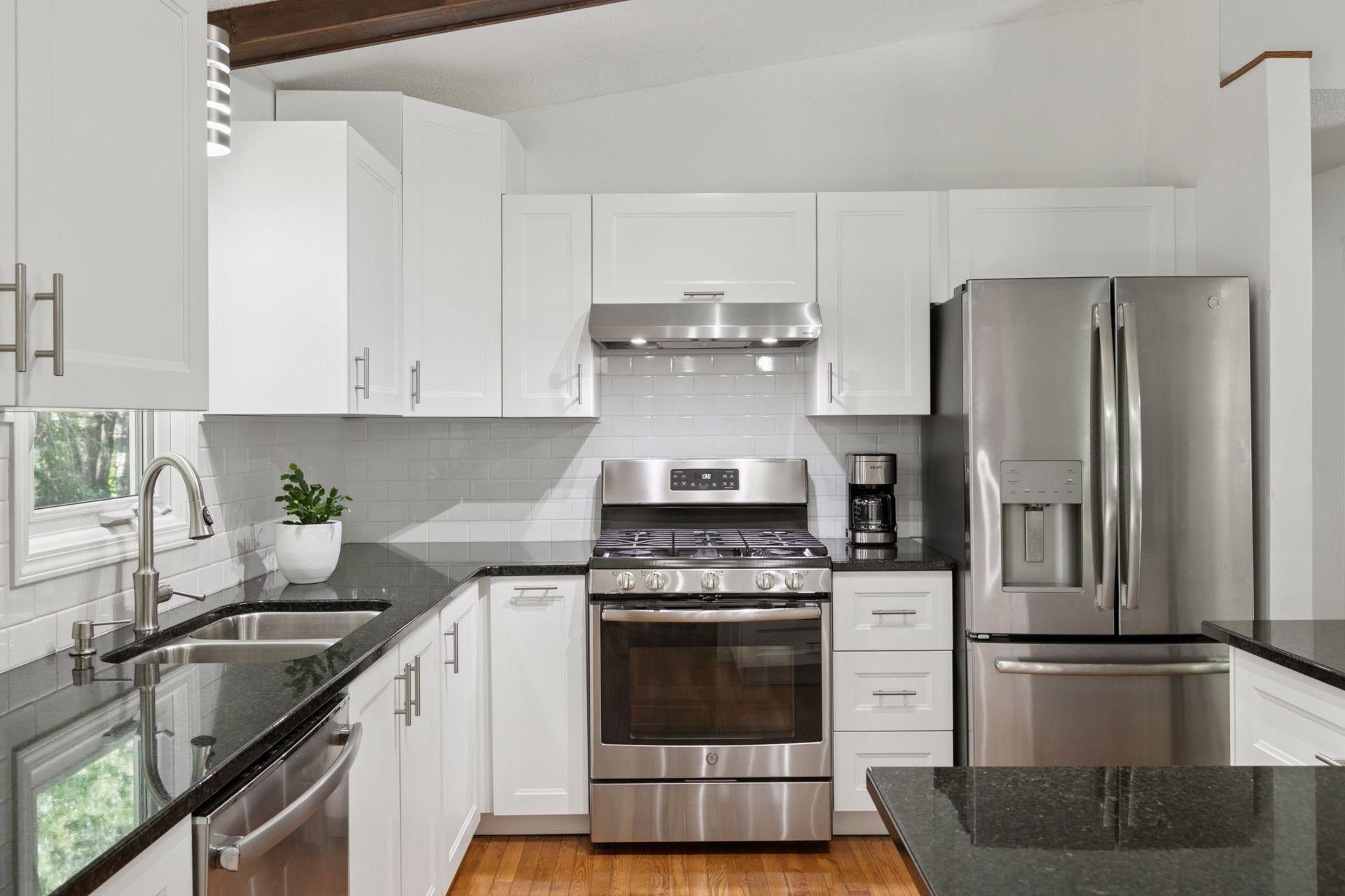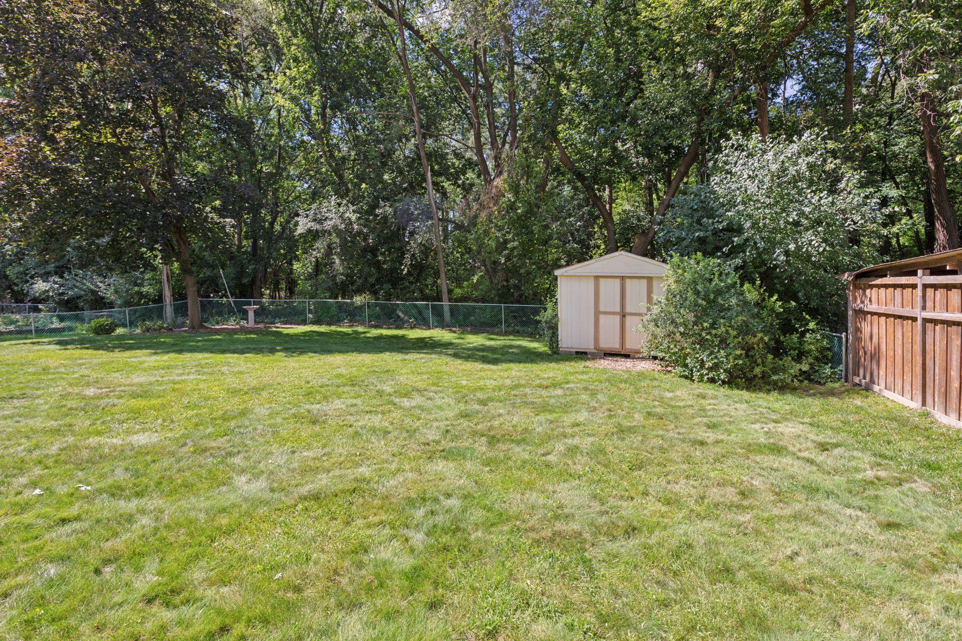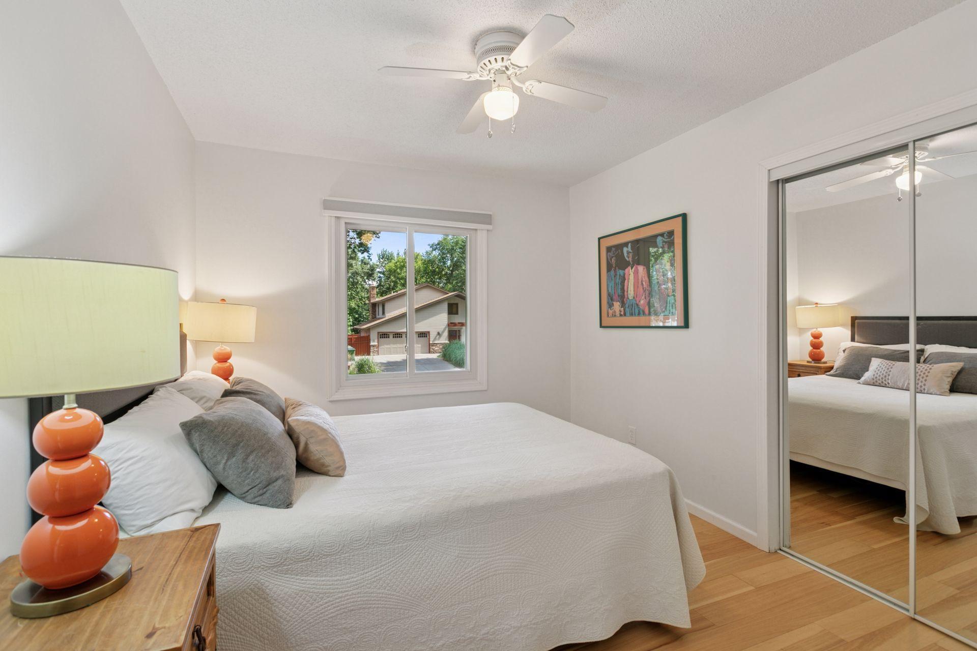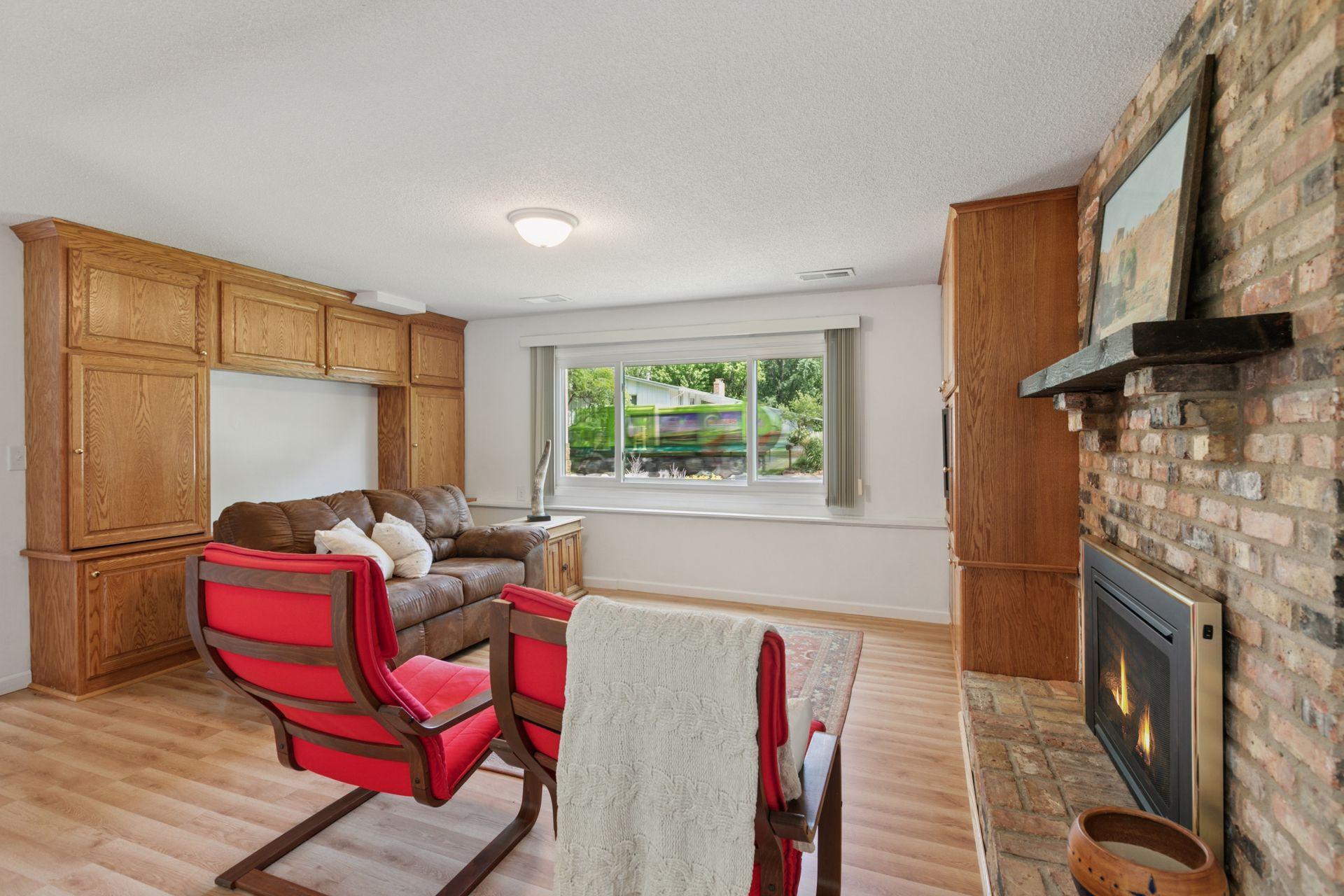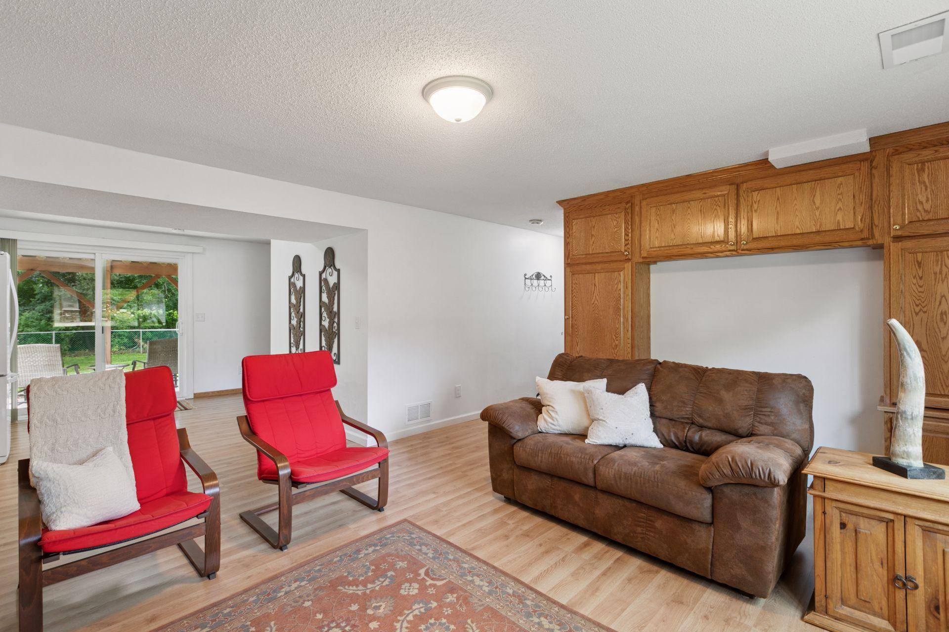Impeccably maintained home in desirable Fridley location. Freshly updated kitchen with white cabinetry and stainless appliances flows seamlessly into the dining area, accented by exposed wood beams and direct deck access to a private, tree-lined backyard. Beautiful hardwood floors throughout main level. Three bedrooms on upper level provide excellent separation of space. Lower level family room showcases brick fireplace and custom built-ins. Generous lot with mature landscaping ensures maximum privacy. Attached two-car garage. Prime location near Locke Park and Moore Lake Commons with quick access to retail, restaurants, and major commuter routes. Don't miss this one.