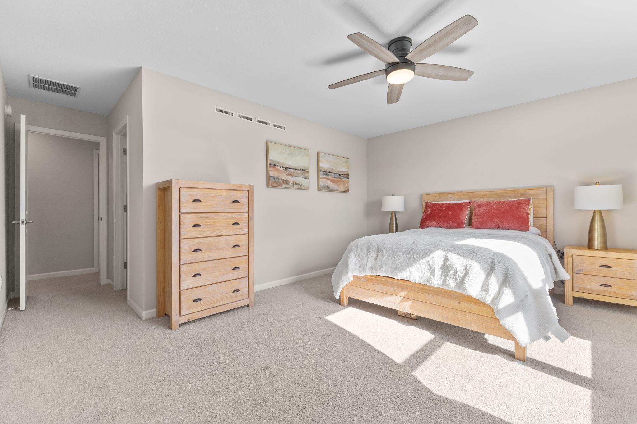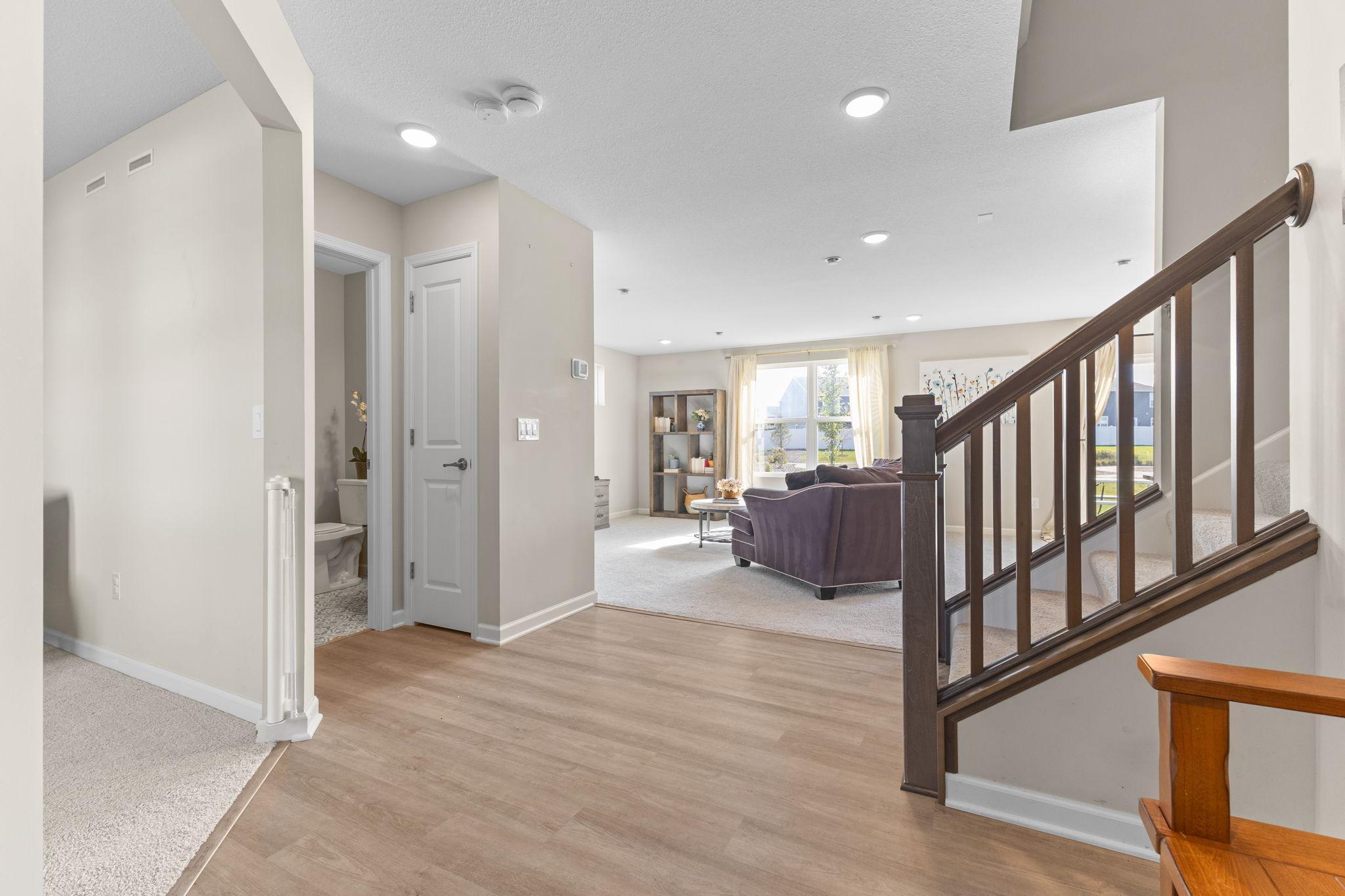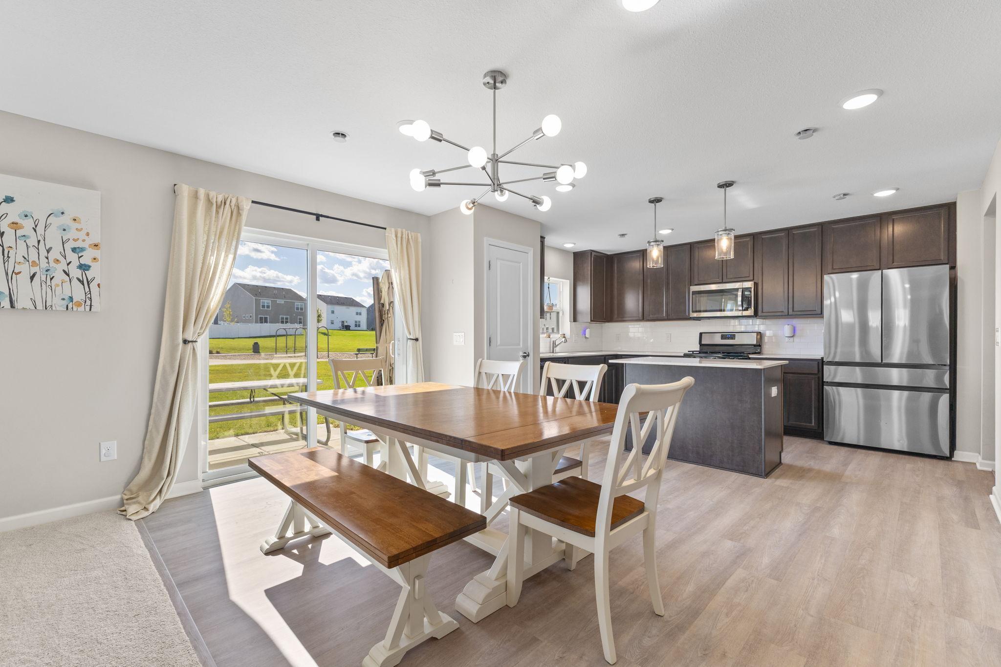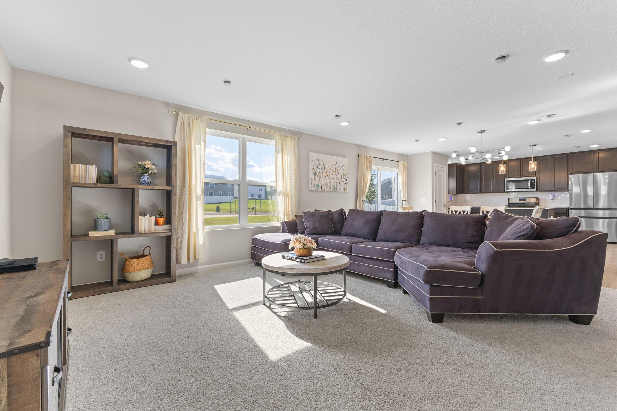 Move in ready like-new Pulte "Aspire" model in the highly sought-after Hawthorne Pines neighborhood of Cottage Grove. Bypass the new construction wait time and hefty price tag with this 2022 build. The main floor features a versatile flex room perfect for an office or playroom, a spacious and bright living room with luxury vinyl plank flooring, and a stylish kitchen with stainless steel appliances. Enjoy tastefully designed finishes and a roomy informal dining that opens to the backyard where you'll find the community playground. Upstairs you’ll find four generously sized bedrooms painted in neutral colors, including a primary suite with a walk-in closet and private ensuite. A thoughtfully designed loft provides extra living space and the convenient second-floor laundry makes daily routines simple. Located in the acclaimed South Washington County School District (#833) and just minutes from the airport and Mall of America, this home offers the space, comfort, and location you’ve been looking for.