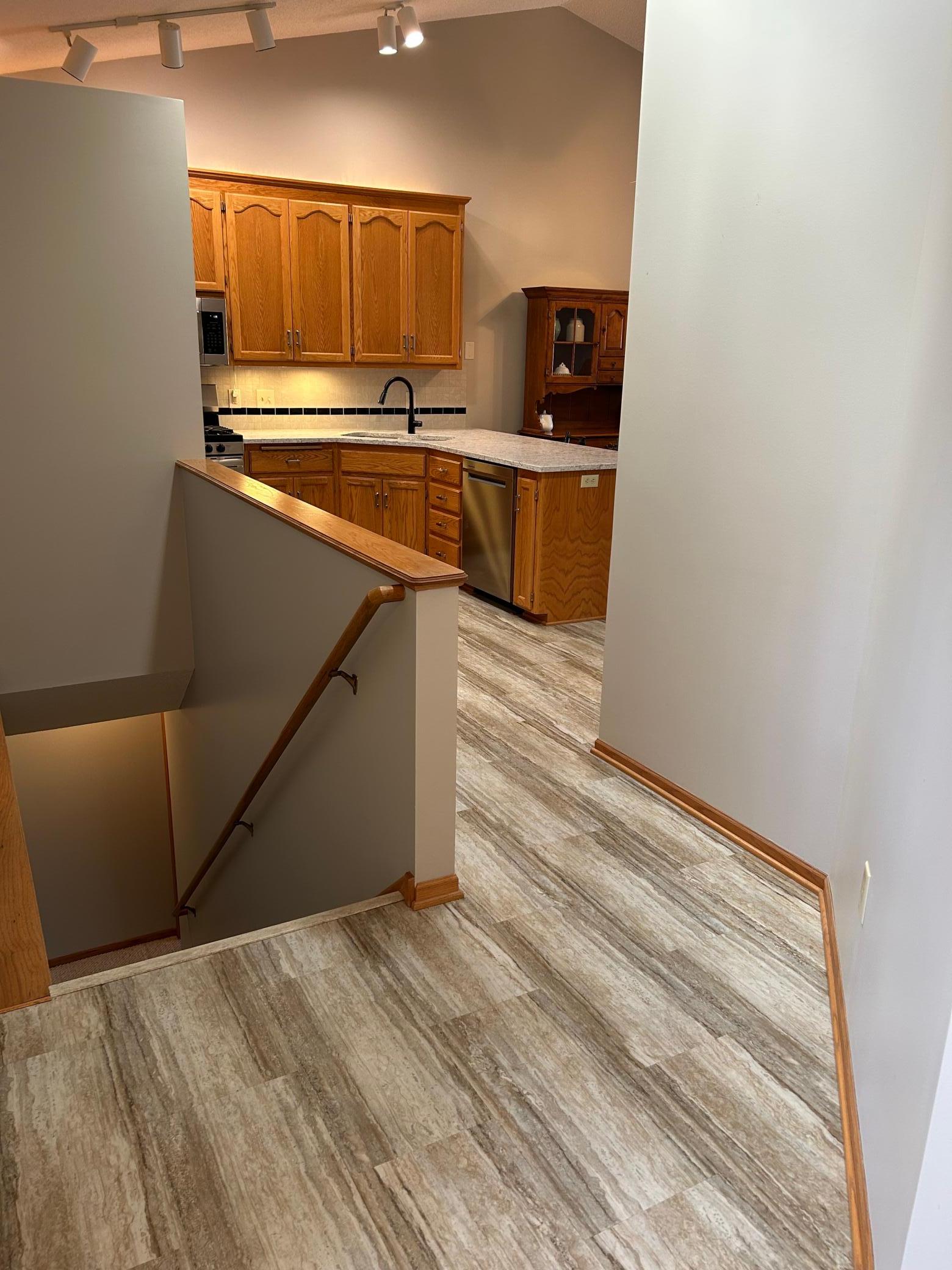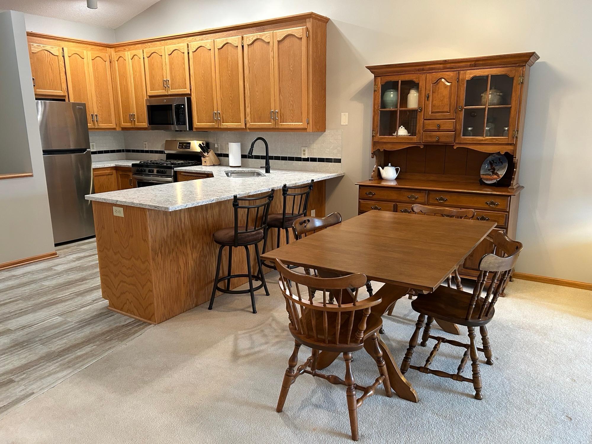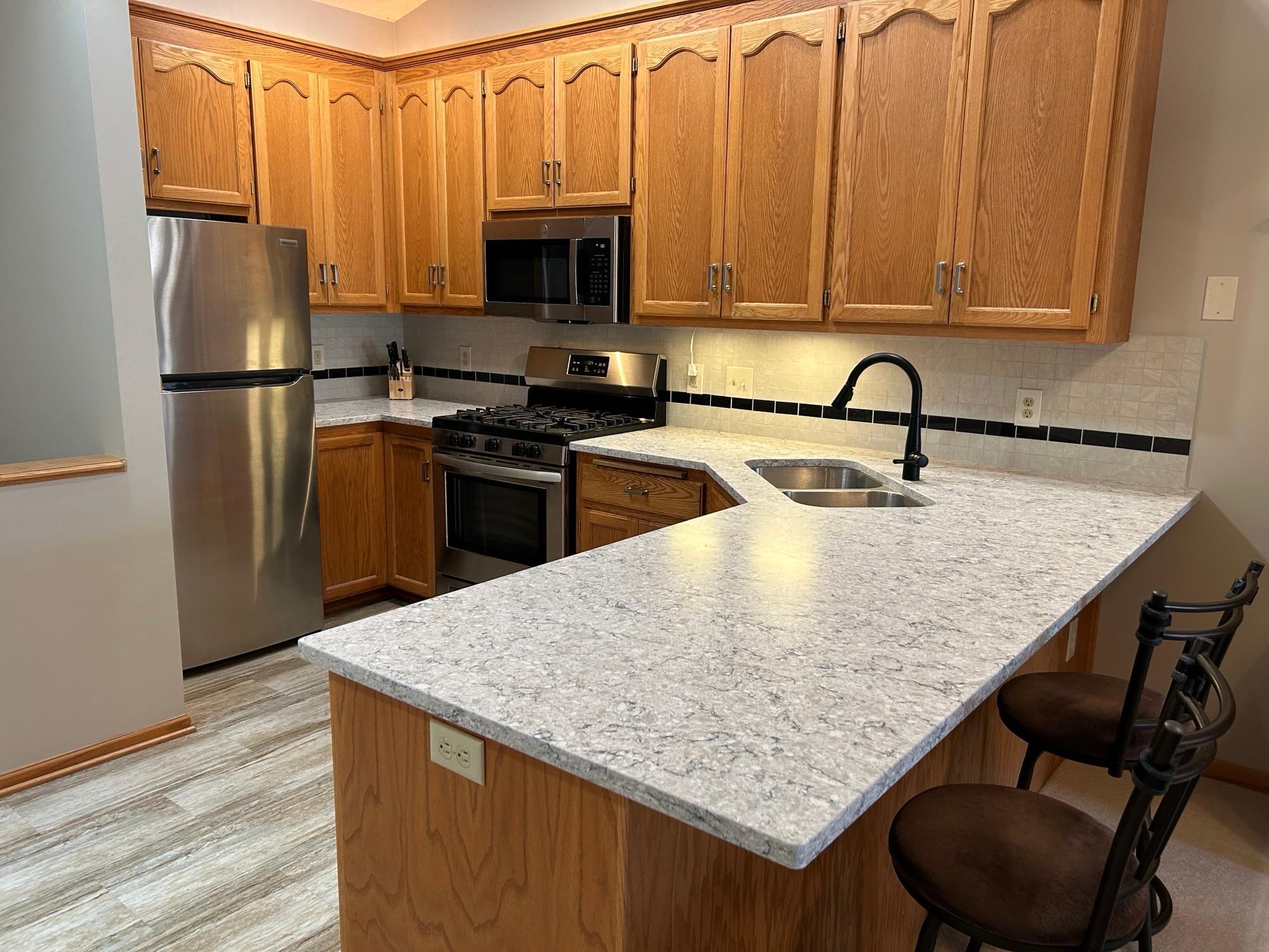 You will be Delighted when you see the space, openness and room sizes. Walk-out Townhouse in a Cul-de-sac location, backs to scenic views of wetlands and wooded area. A lovely sloping yard to the wetlands. adds to your privacy! Greeted by an open entry and main level with vaulted ceilings! The Living Room features a corner Gas Fireplace. Newer Patio Door to Deck adds peace and tranquility to enjoy those summer days! Kitchen improvements include: New Style Stone Countertops, corner Sink and Faucet, Back Splash, Dishwasher and Disposal! Refrigerator, Range/Oven & Microwave are 3 Years old. Added under and lower counter lighting. Newer Entry, Kitchen, Bath Flooring. Large Owners Bedroom has a walk-in Closet! Spacious Laundry Room with plenty of room for storage. This property is clean, great condition and is MOVE-IN READY! Quick Close!