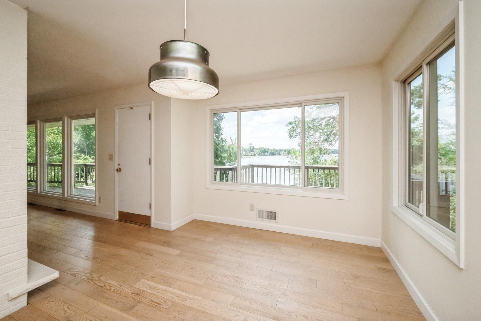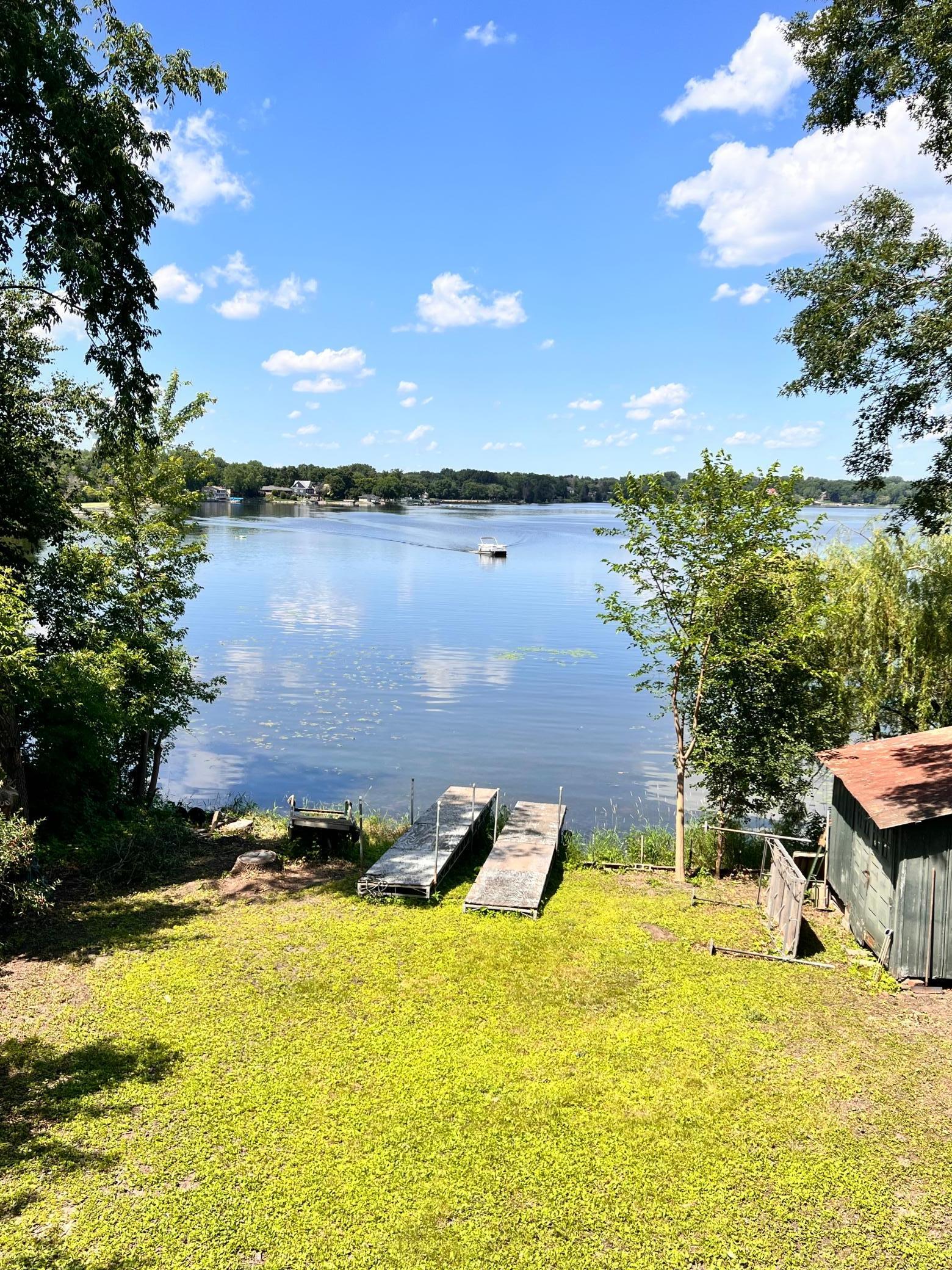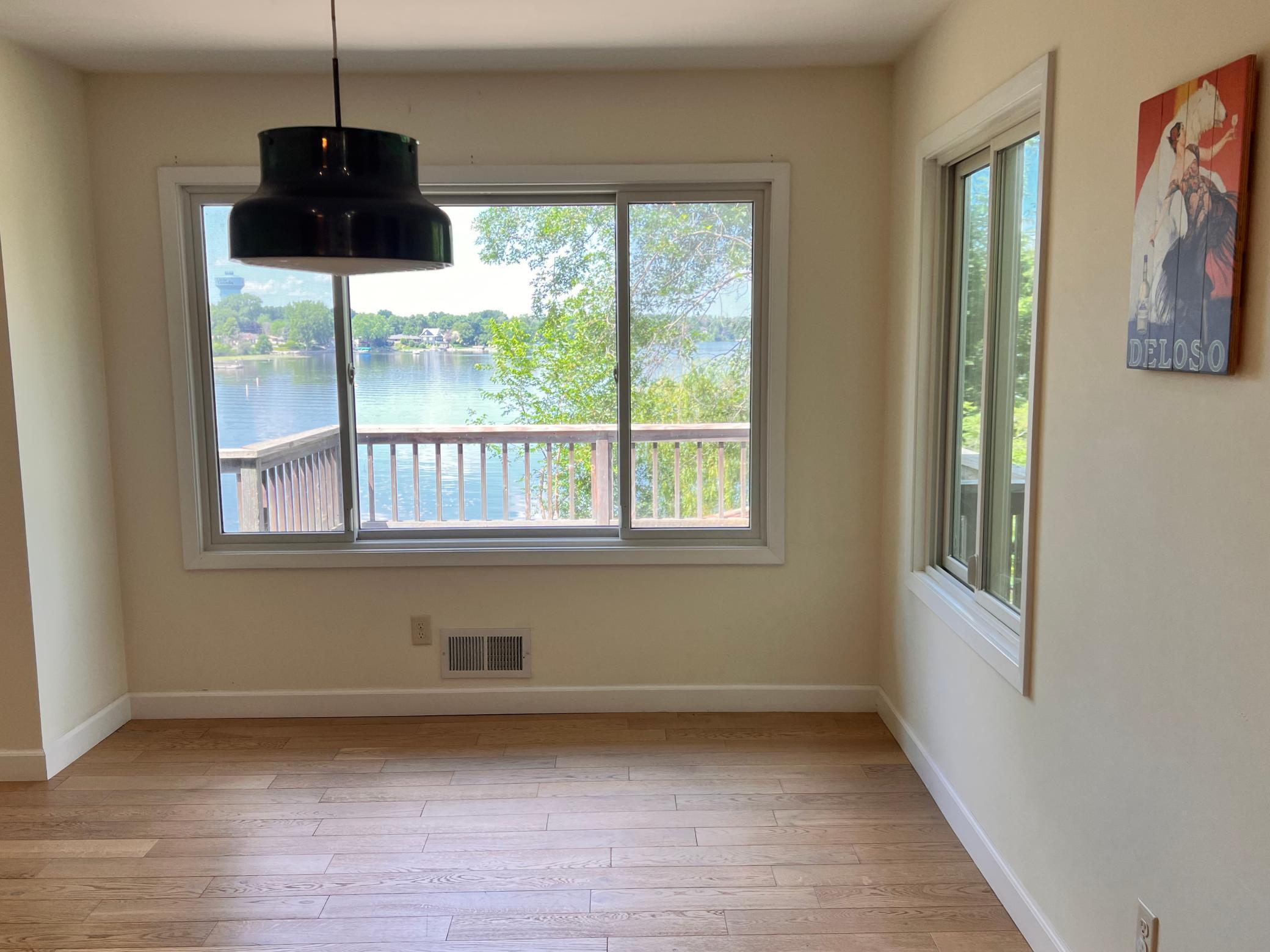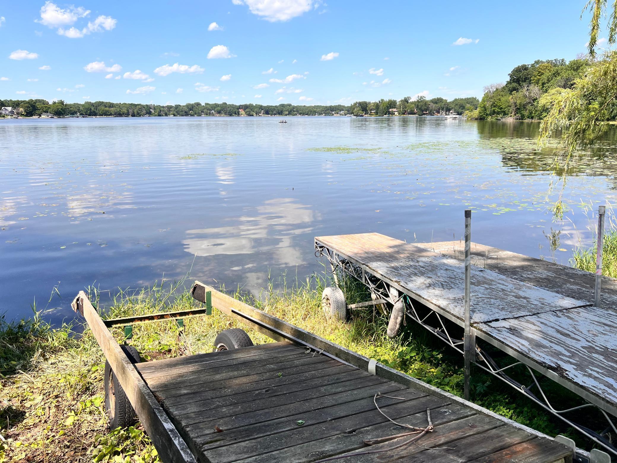 Experience classic mid-century style in this lakefront home on the south side of Lake Gervais, featuring a gentle slope to the water's edge. The spacious living room offers engineered hardwood floors and large windows that showcase beautiful lake views and natural light. The open layout leads into an updated kitchen with stainless steel appliances, quartz countertops, and a distinctive copper sink. The lower level includes a large open space - ideal for a billiard room or entertaining - with direct walkout access to the lake. Enjoy being just a short walk (less than ¼ mile) to Lake Gervais County Park with its public beach, trails, and playground. Quick access to Hwy 36 makes this a perfect mix of comfort, charm, and convenience.