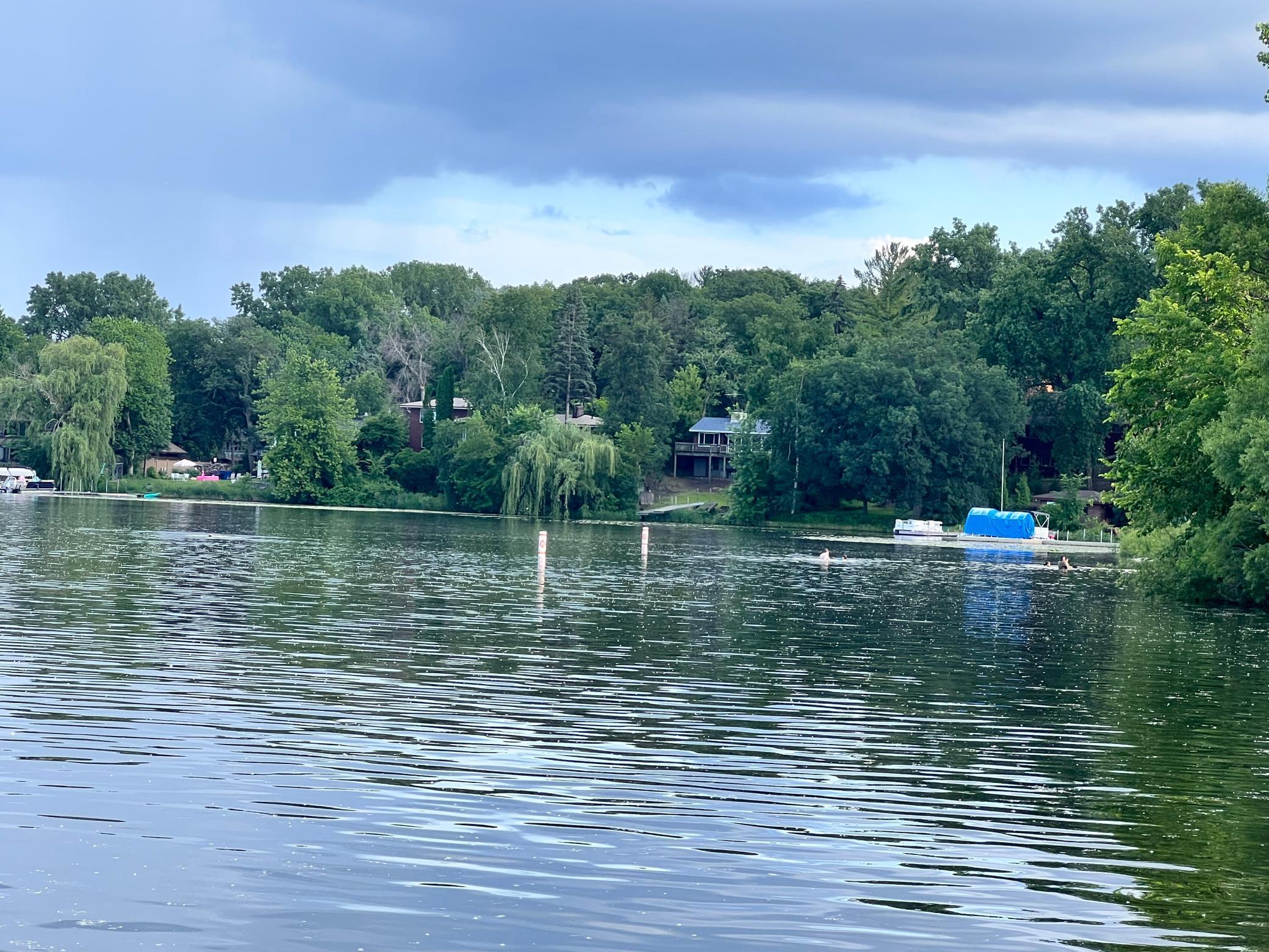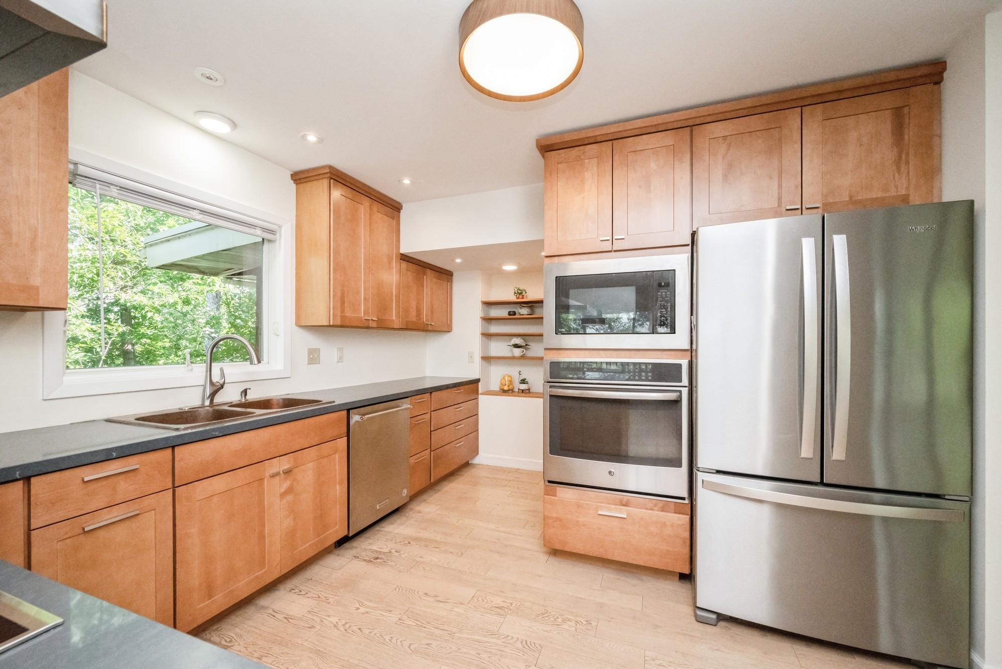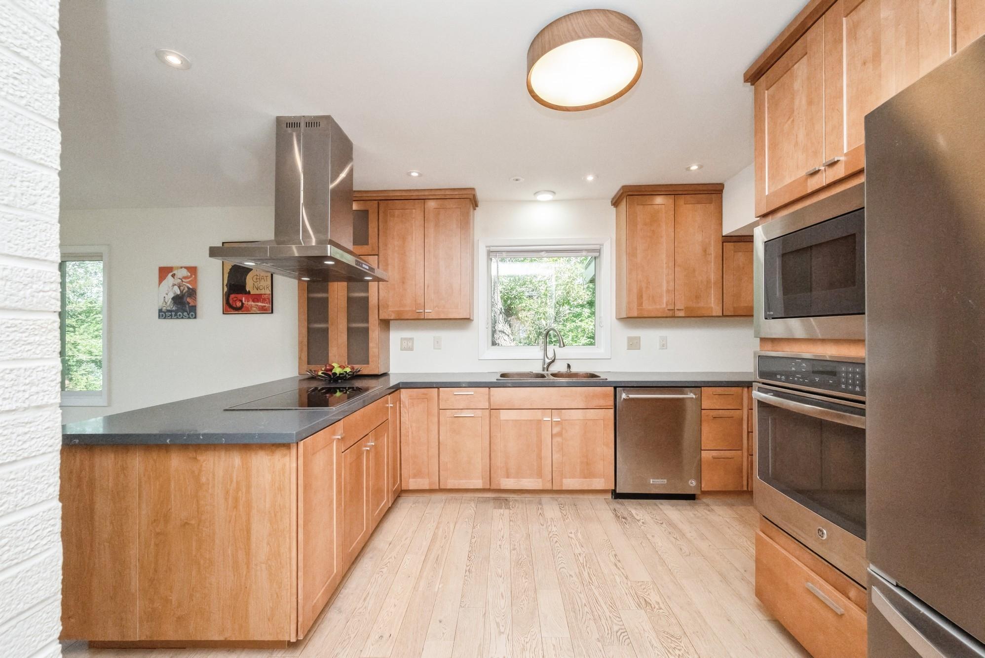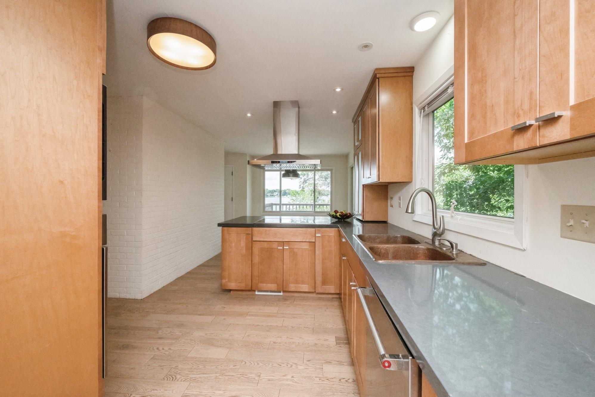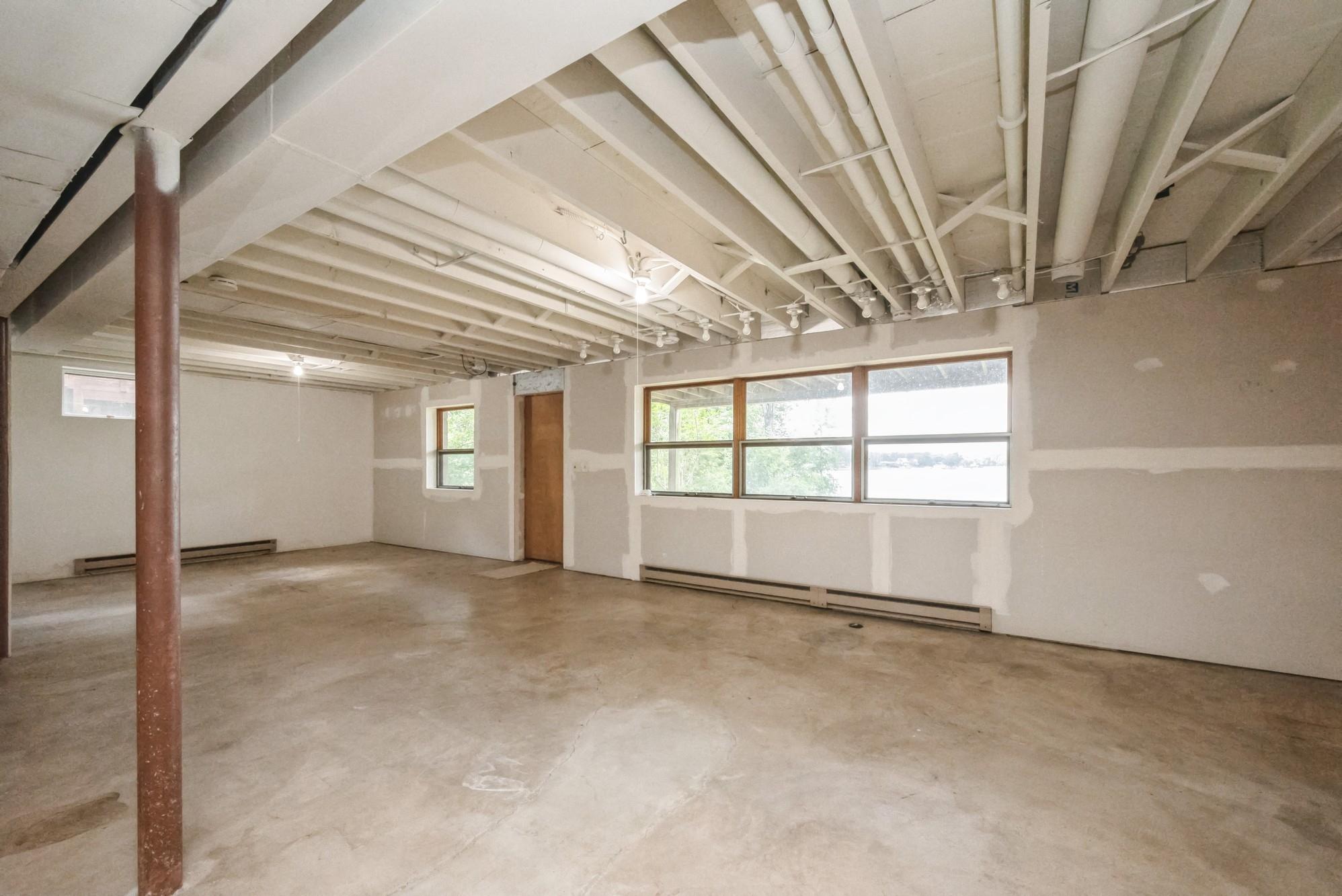 Experience classic mid-century style in this lakefront home on the south side of Lake Gervais, featuring a gentle slope to the water's edge. The spacious living room offers engineered hardwood floors and large windows that showcase beautiful lake views and natural light. The open layout leads into an updated kitchen with stainless steel appliances, quartz countertops, and a distinctive copper sink. The lower level includes a large open space - ideal for a billiard room or entertaining - with direct walkout access to the lake. Enjoy being just a short walk (less than ¼ mile) to Lake Gervais County Park with its public beach, trails, and playground. Quick access to Hwy 36 makes this a perfect mix of comfort, charm, and convenience.