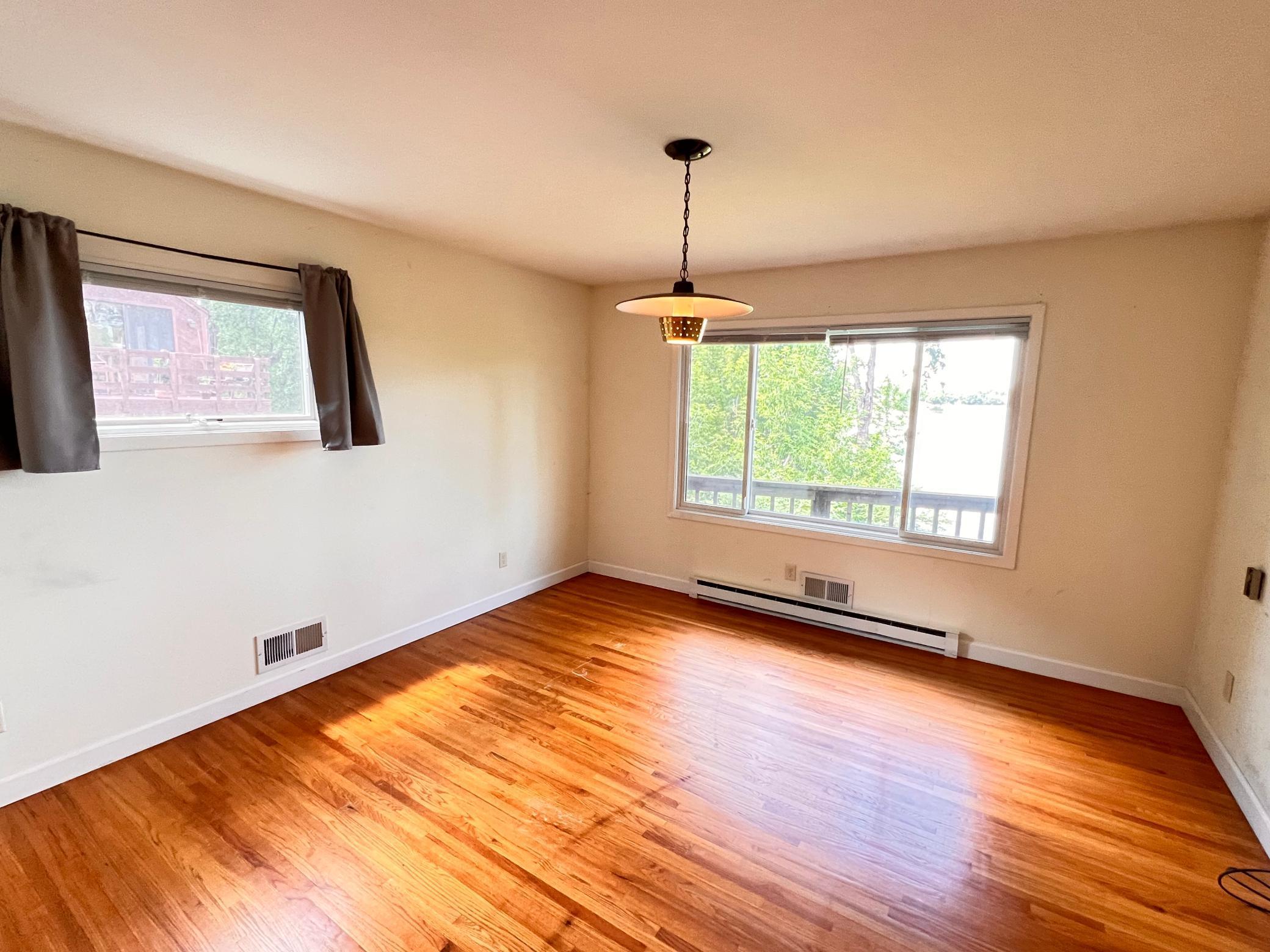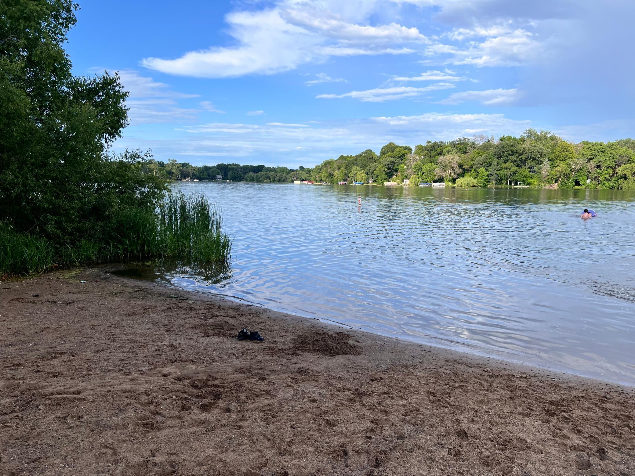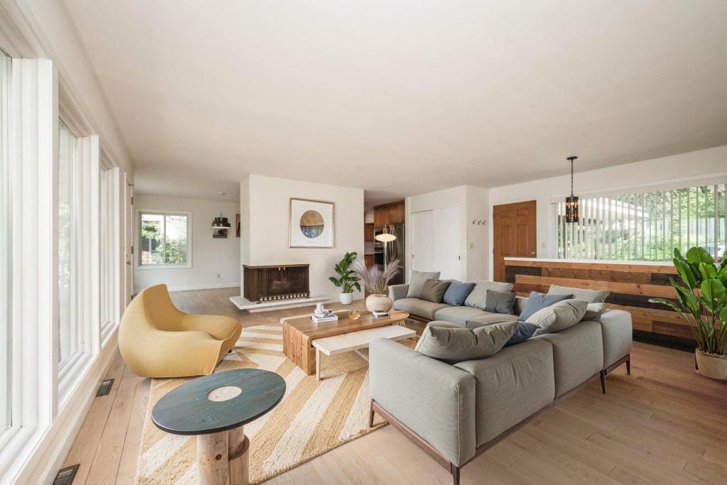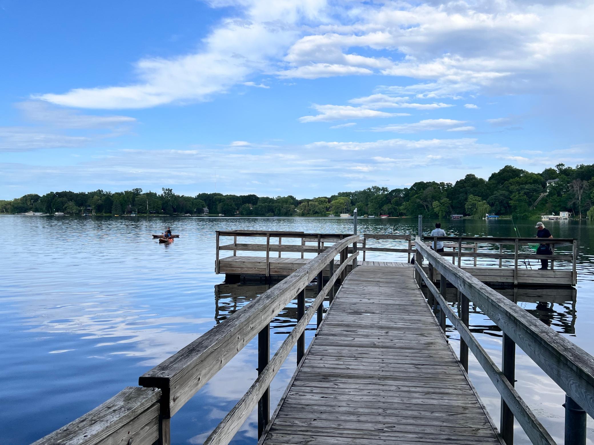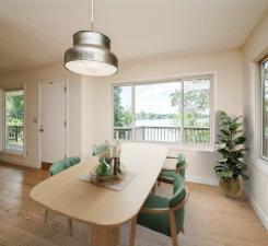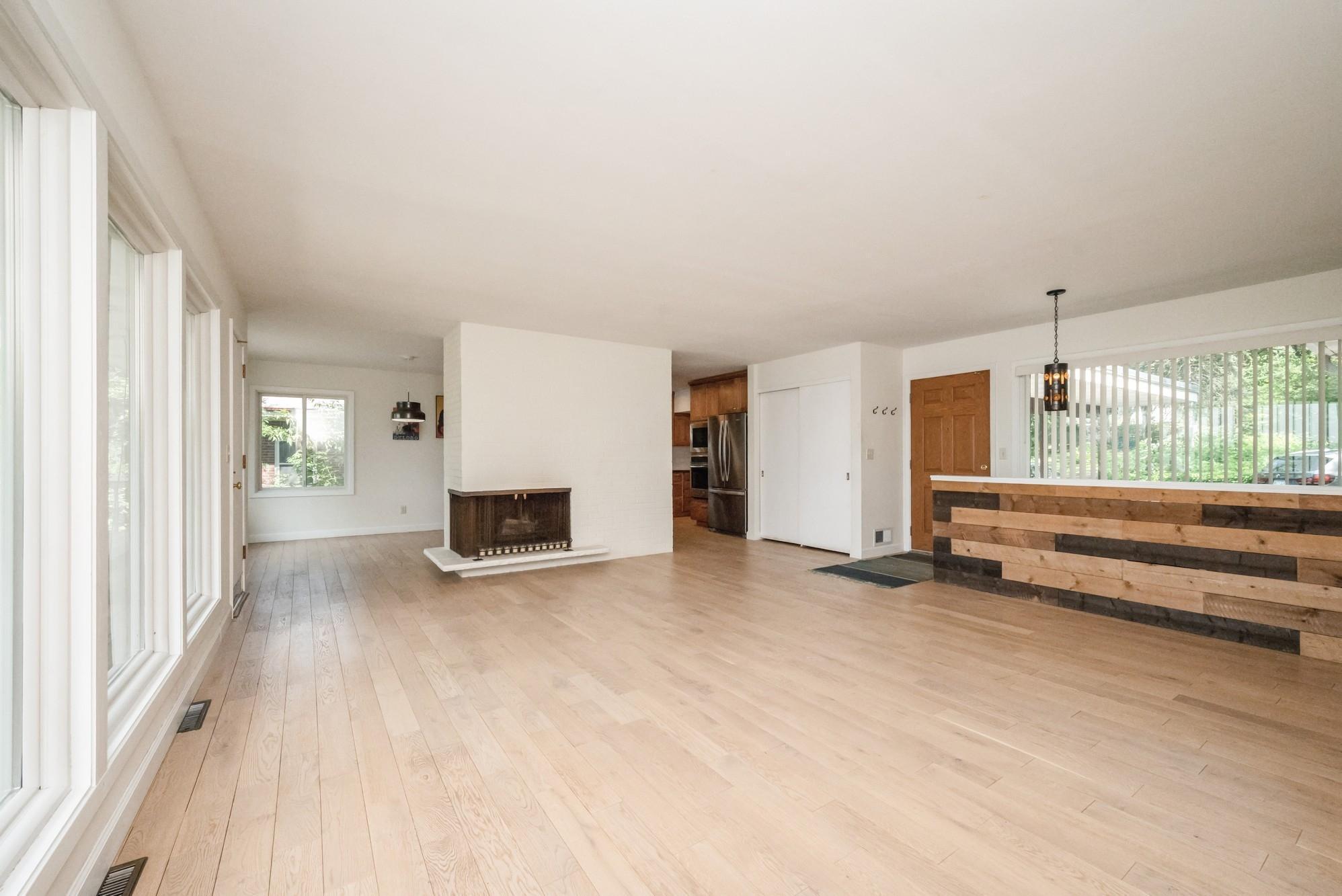 Experience classic mid-century style in this lakefront home on the south side of Lake Gervais, featuring a gentle slope to the water's edge. The spacious living room offers engineered hardwood floors and large windows that showcase beautiful lake views and natural light. The open layout leads into an updated kitchen with stainless steel appliances, quartz countertops, and a distinctive copper sink. The lower level includes a large open space - ideal for a billiard room or entertaining - with direct walkout access to the lake. Enjoy being just a short walk (less than ¼ mile) to Lake Gervais County Park with its public beach, trails, and playground. Quick access to Hwy 36 makes this a perfect mix of comfort, charm, and convenience.