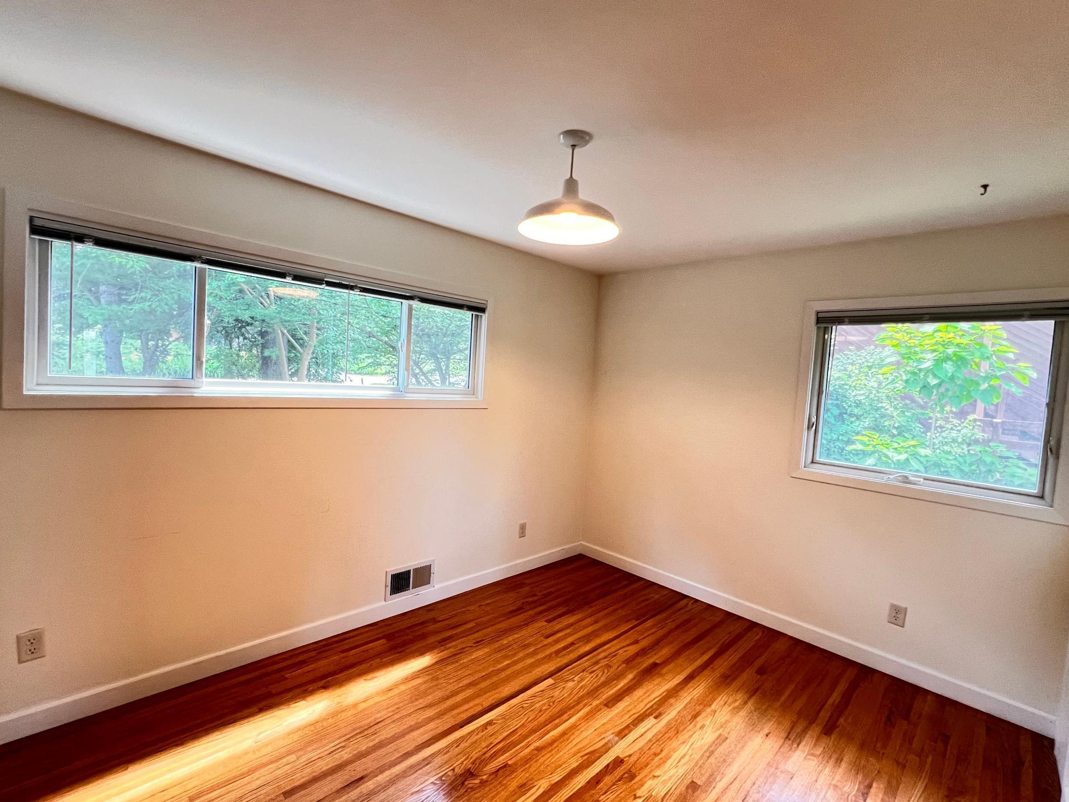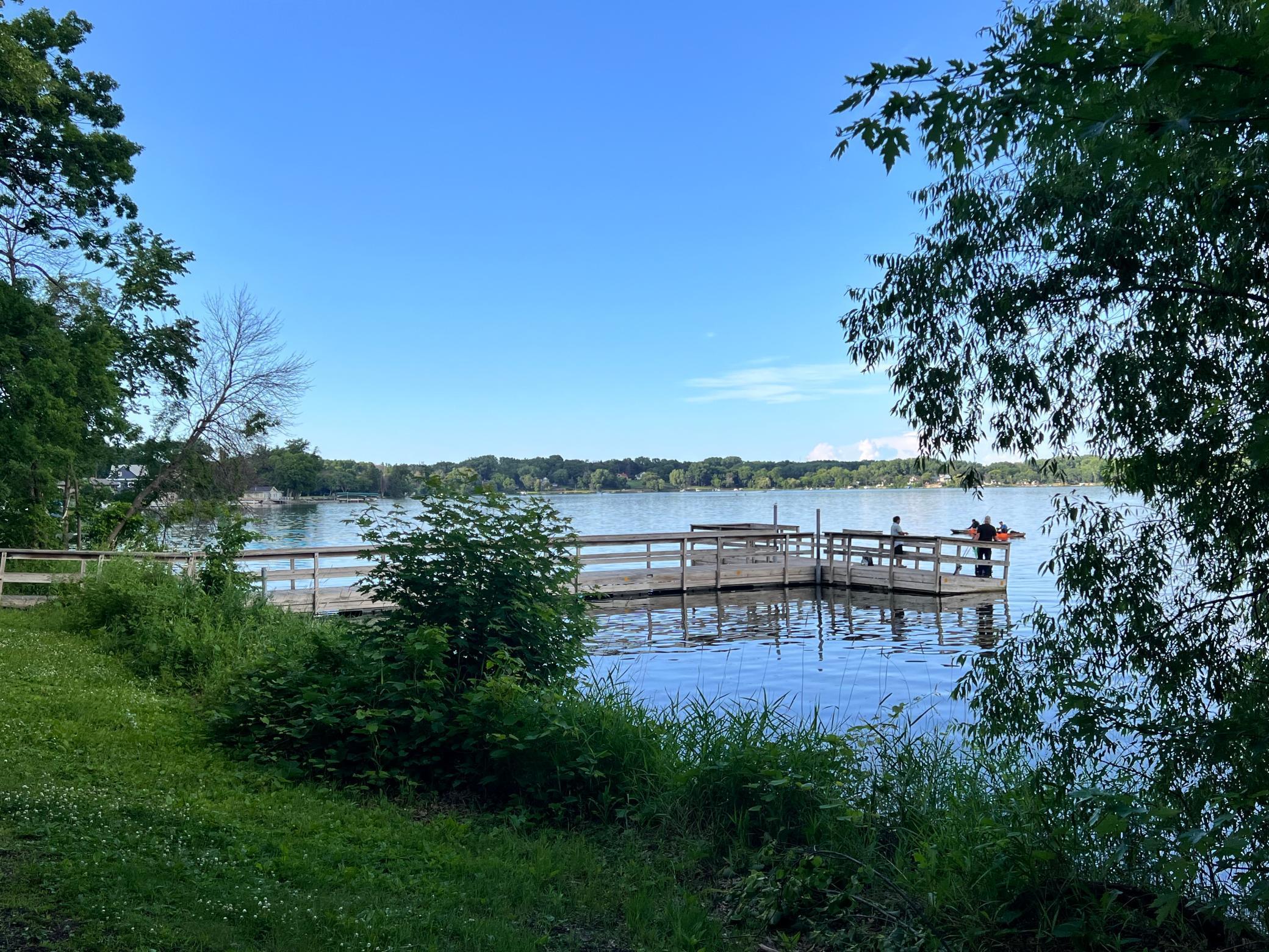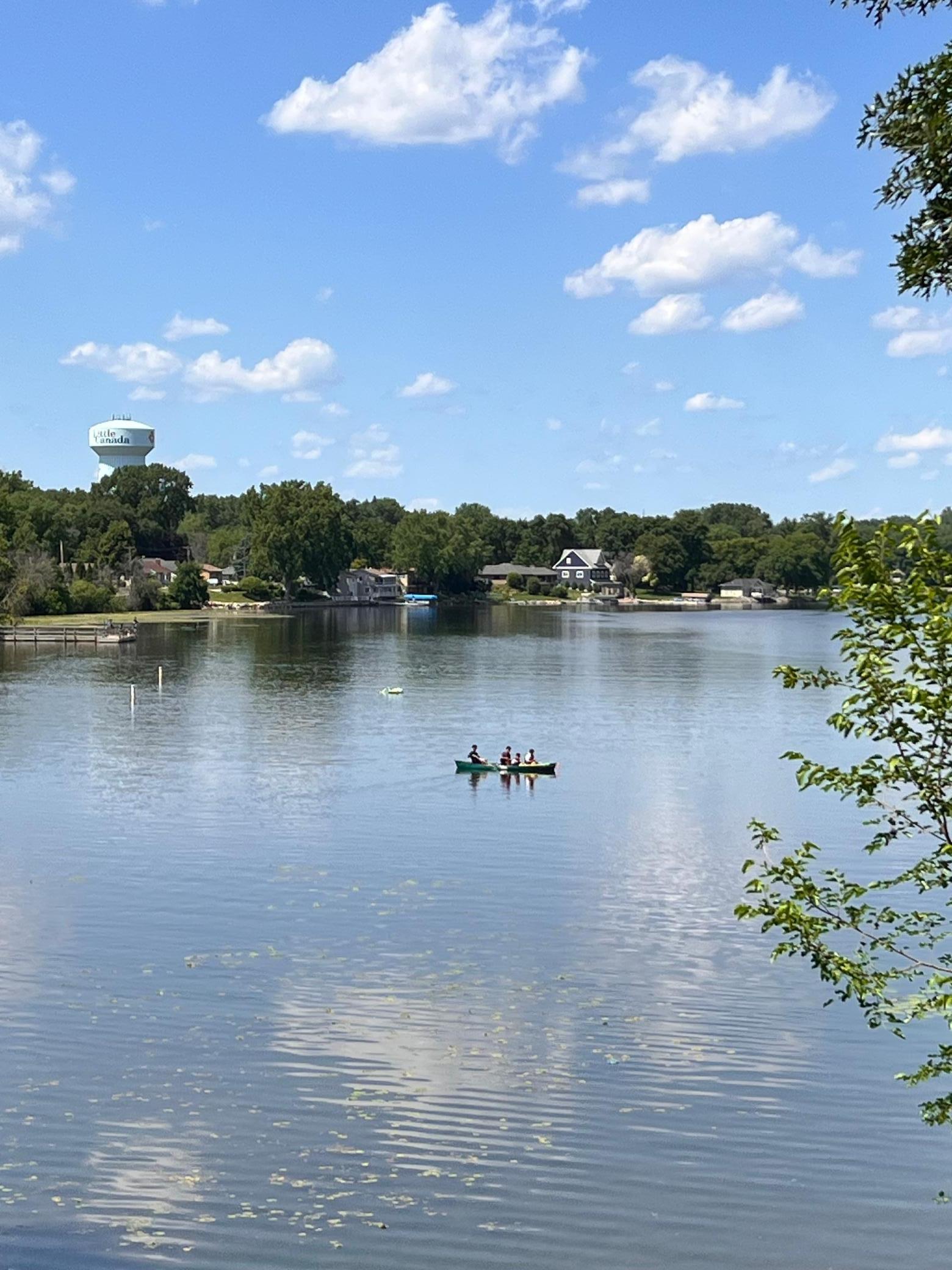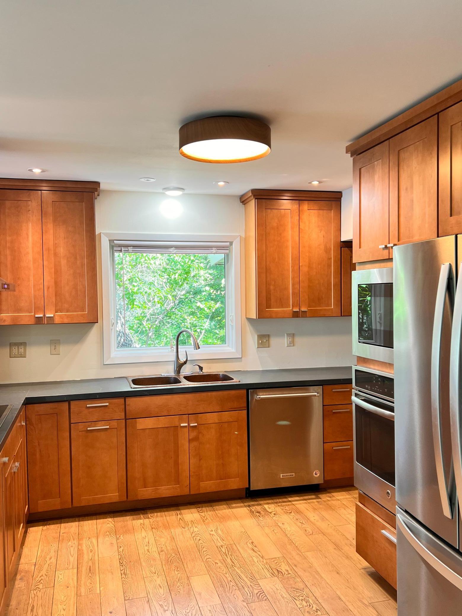 Experience classic mid-century style in this lakefront home on the south side of Lake Gervais, featuring a gentle slope to the water's edge. The spacious living room offers engineered hardwood floors and large windows that showcase beautiful lake views and natural light. The open layout leads into an updated kitchen with stainless steel appliances, quartz countertops, and a distinctive copper sink. The lower level includes a large open space - ideal for a billiard room or entertaining - with direct walkout access to the lake. Enjoy being just a short walk (less than ¼ mile) to Lake Gervais County Park with its public beach, trails, and playground. Quick access to Hwy 36 makes this a perfect mix of comfort, charm, and convenience.
