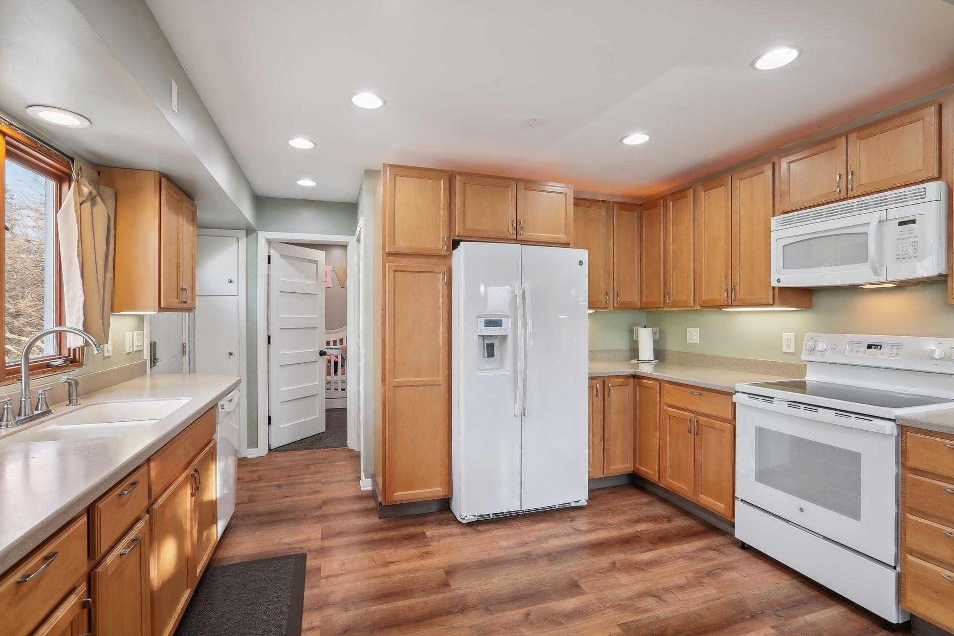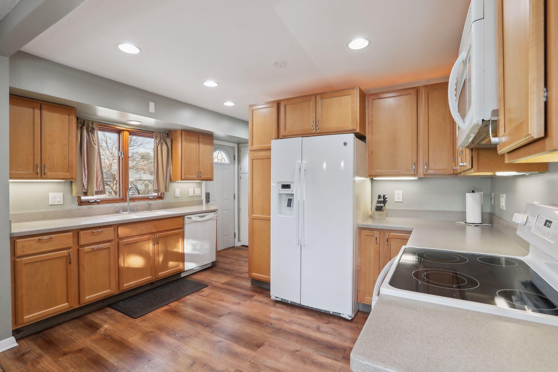 This charming three-bedroom, two-bathroom rambler boasts an inviting open floor plan, creating a seamless flow between the spacious living room, kitchen, and dining area. The remodeled kitchen features newer appliances, custom cabinets, and fresh paint. Three bedrooms on the main level, roomy lower level recreation space with flex room. Step outside to discover a large, partially fenced backyard and patio, perfect for entertaining. Oversized two-car garage and a great location in Osseo School district; close to multiple parks and just minutes from restaurants, shopping, and local transportation.