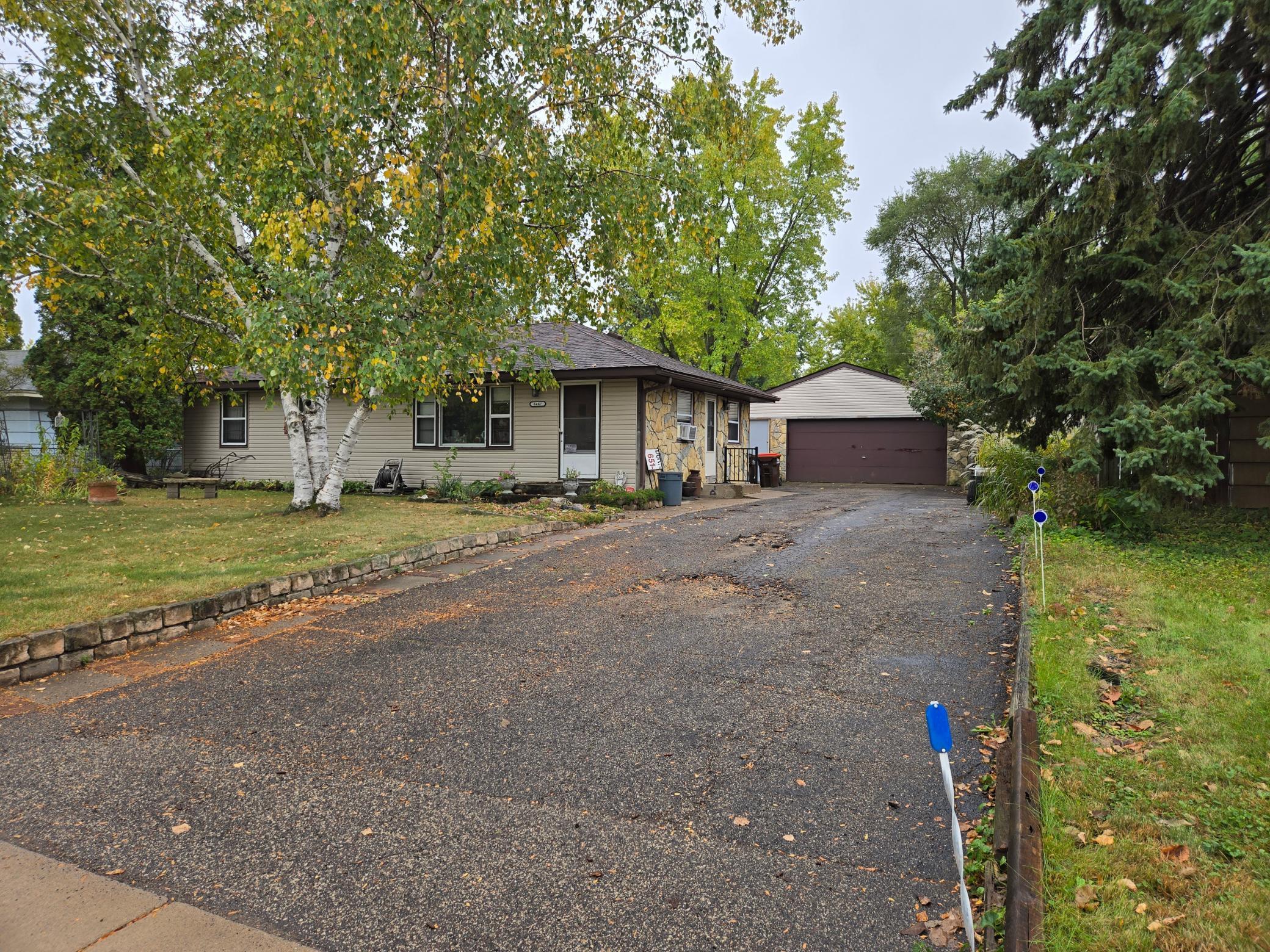 Offer has been accepted subject to inspection 7 day time frame.......Charming 3-Bedroom Rambler with Spacious Four-Season Porch & Oversized Garage. Welcome to this roomy one-level home offering 3 bedrooms and 1 full bathroom, plus a large four-season porch addition (16x14) added in 2006—perfect for relaxing or entertaining year-round. The property features an oversized detached garage (24x26, 624 sq ft) and a spacious backyard that is mostly fenced, ideal for pets, gardening, firepit or play. Inside, you'll find beautiful hardwood floors throughout and a functional layout with all bedrooms conveniently located on the main level.The bedroom off the kitchen offers flexible use—easily convert it into a dining area or add patio doors to create direct access to the four-season porch. Additional Features: All appliances may stay, new Frig-25, dishwasher-23, Roof replaced in approx. 2016, Furnace installed in 2008, Updated electrical panel (2017), Newer siding and stonework on west side of home & garage front (2017). Laundry located in the basement, Home Located near parks, shopping, and highway access for easy commuting. Please note: Home may need some cosmetic updates. Seller may leave the French doors, sink and stool for a future basement bath and some of the hardware available. The asphalt driveway may need repair or replacement—seller may offer allowances. Flexible showing and closing dates available.