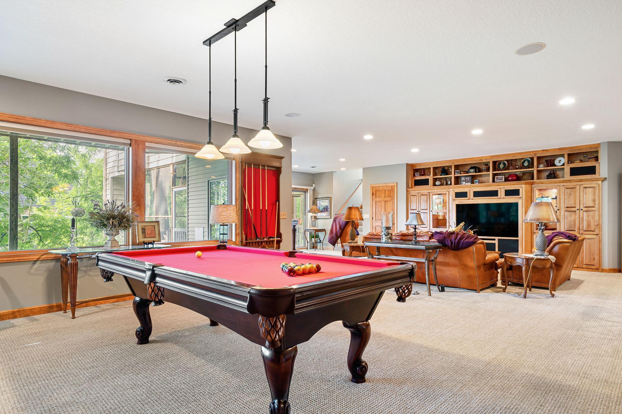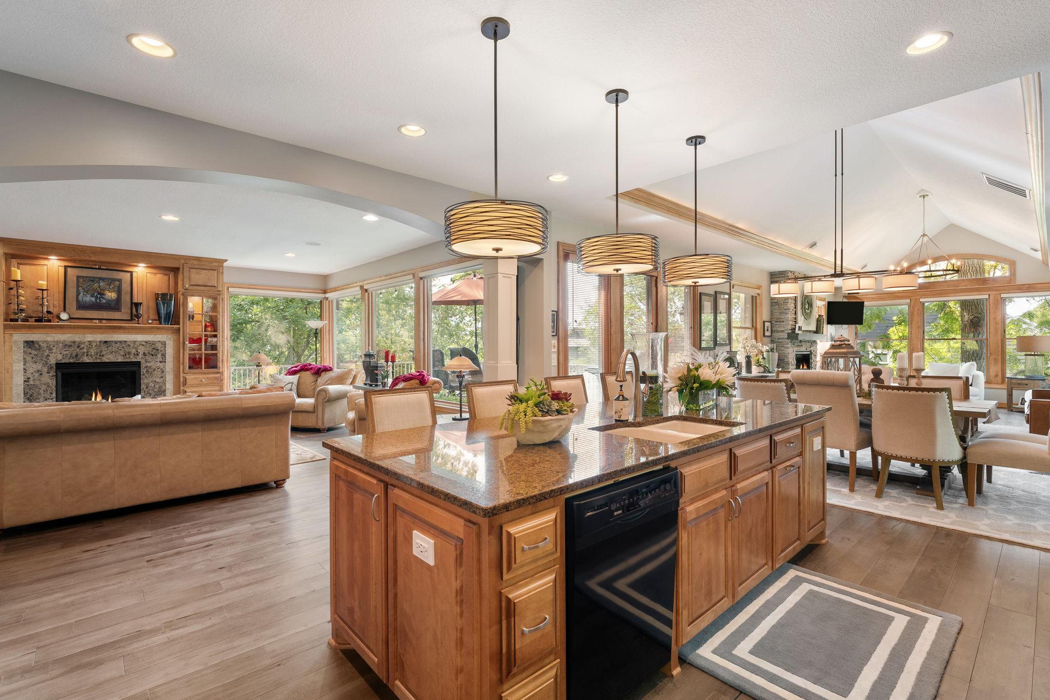 Rare Opportunity in Excelsior! Stunning 4-bedroom, 4-bath walkout rambler on a private 1.13-acre wooded lot in a quiet cul-de-sac, surrounded by upper-bracket homes. Just a short walk to historic downtown Excelsior and beautiful Lake Minnetonka. Impeccably maintained with exceptional craftsmanship throughout, including maple woodwork and custom built-ins. A major addition in 2021 created a vaulted great room, expanded primary suite with enviable walk-in closet, added storage, and a fabulous screen porch. New hardwood floors on the main level were also done in 2021. The luxurious primary suite includes a spa-style bath with elegant finishes and a heated floor. The lower walkout level is designed for entertaining—complete with a full bar, game and billiard rooms, expansive seating areas, screened porch, 3 additional bedrooms, 2 baths, plus heated floor throughout the lower level. The gorgeous full windows and patio door in the lower level also bring light to the entire space. The property includes professionally designed landscaping with multiple gardens, stone patios, and outdoor living spaces. Other features/upgrades of the home include Hunter Douglas blinds, California Closets, heated lower-level floors, 3 fireplaces, new roof and gutters (w/leaf protection) in 2023, and new boiler for the lower level heated floor in 2024. This exceptional property combines privacy, elegance, and an unbeatable location—truly a dream home!