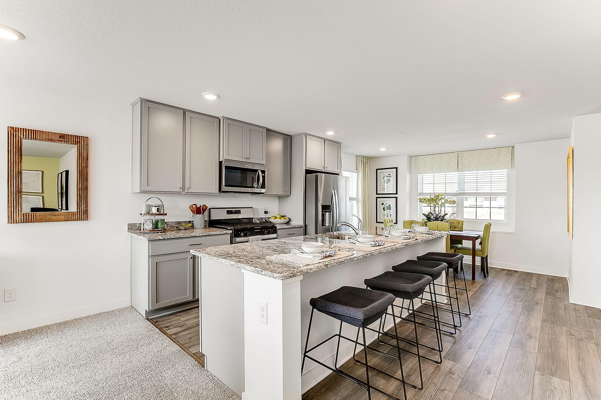 Ask how you can receive up to $5,000 in closing costs on this home! Move in ready! Come see why Hinton Woods is such a desirable place to call home! This beautiful home features 3 bedrooms, 2 bathrooms & laundry upstairs including a primary suite with walk-in closet. The finished lower-level flex room is perfect for guests, home office, or fitness room, just to name a few options! Be prepared to love your kitchen - this home has a designer inspired interior package with white cabinets, expansive quartz island for 4-person seating, pantry, vented microwave hood and gas range! The open main floor has a 1/2 bath and is a perfect space to entertain or just kick back and relax! All homes come with a HUGE deck, industry best Smart Home technology package, and high efficiency mechanicals. Your littles can walk to Cottage Grove Elementary School via the neighborhood path and high schoolers will attend East Ridge High in Woodbury! Walk from your new home to the popular Junction 70 Grill, and enjoy shopping, entertainment, parks and more restaurants within minutes! HOA covers trash/recycling, exterior maintenance, lawn care, snow removal, insurance, and irrigation.