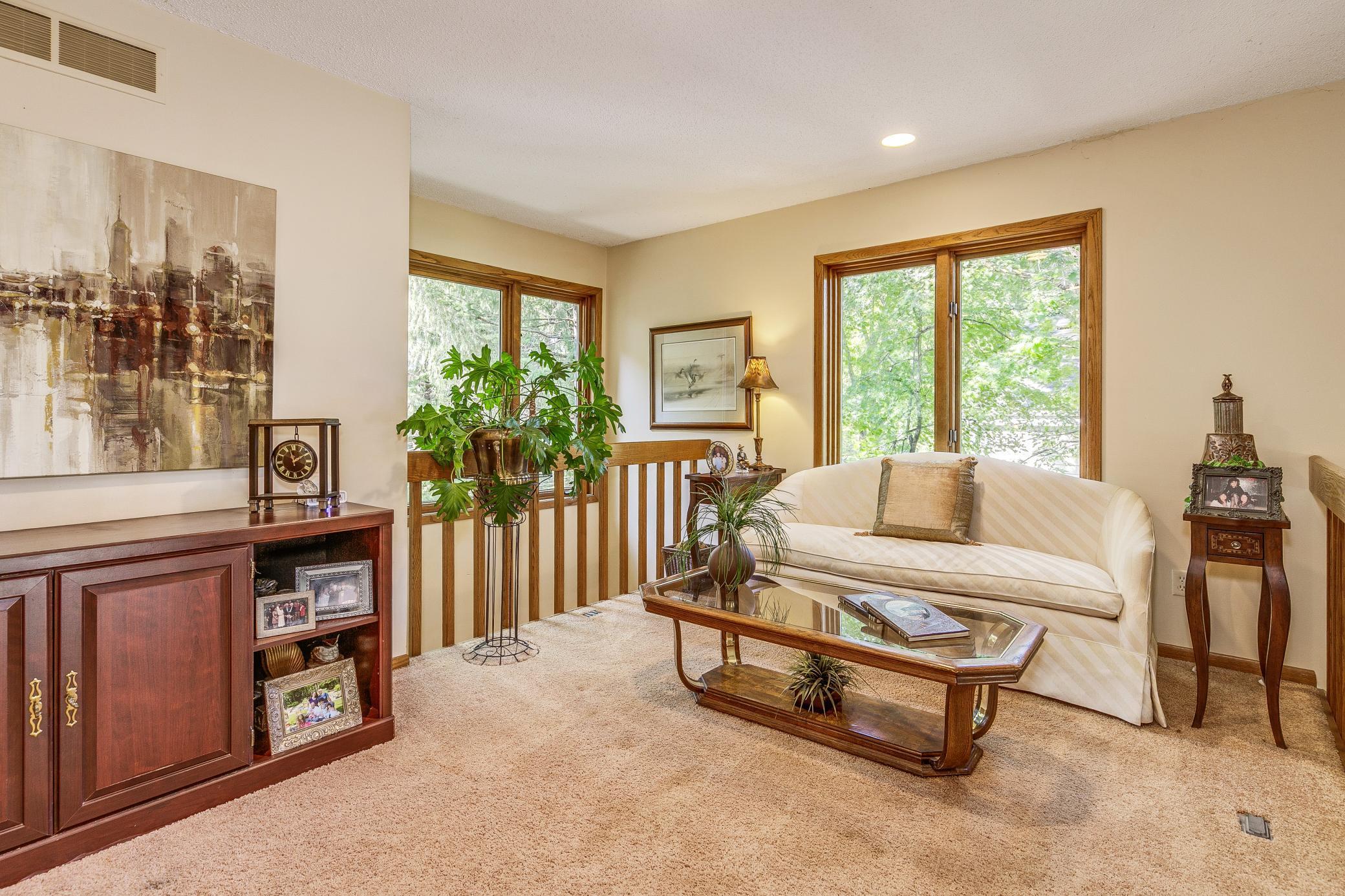 Location, location, location...So rare to find such a wonderfully private setting with a plethora of city conveniences, easy highway access, award-winning schools, parks, paths and no HOA fees! Over 2700+ delightfully designed finished Sq. Ft., boasting an open floor plan that offers great visual interest, fantastic function, comfort and natural light. From the welcoming entry to the expansive vaulting ceilings, beautifully adorned fireplaces and oversized windows make this a timeless treasure! Enjoy oversized rooms, multiple dining spaces for casual and formal gatherings! If formal dining is not your style this room would be easy to re-allocate to an office, studio, game or exercise space, as would the upper-level flex room/loft! This 3+ bedroom, 3 bath home features a spacious primary suite, a perfect retreat to relax in the sun-filled, bayed alcove, and get ready in your well-organized, walk-in closet! 2 separate walkouts offering panoramic views of Nine Mile Creek Preserve, avantage point that would rival the best tree house! The appliances are only 5 years old, the roof only 8 years old. The garage is insulated too! Great Eden Prairie location!