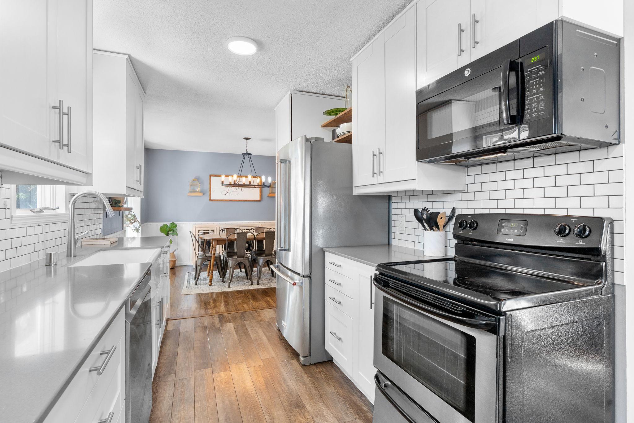 Tucked into a quiet neighborhood with a spacious backyard and thoughtful updates throughout, this 3-bed, 2-bath home offers over 2,100 finished square feet designed for both comfort, flexibility, and entertaining! Hardwood floors carry through the main level, leading into a refreshed kitchen and dining area that set the stage for everyday living and effortless entertaining. The layout flows into two generous living areas downstairs—perfect for movie nights, a home office, or guest space while updated systems like the furnace, A/C, water heater, and electrical throughout bring lasting peace of mind. New carpet in the basement and upstairs bedrooms, along with a renovated main bath, elevate the home’s warmth and functionality. Step outside to enjoy a large patio, mature trees, and a bonus shed for storage or hobbies. This is a home that’s been cared for with intention, meticulous with updates and it shows!
