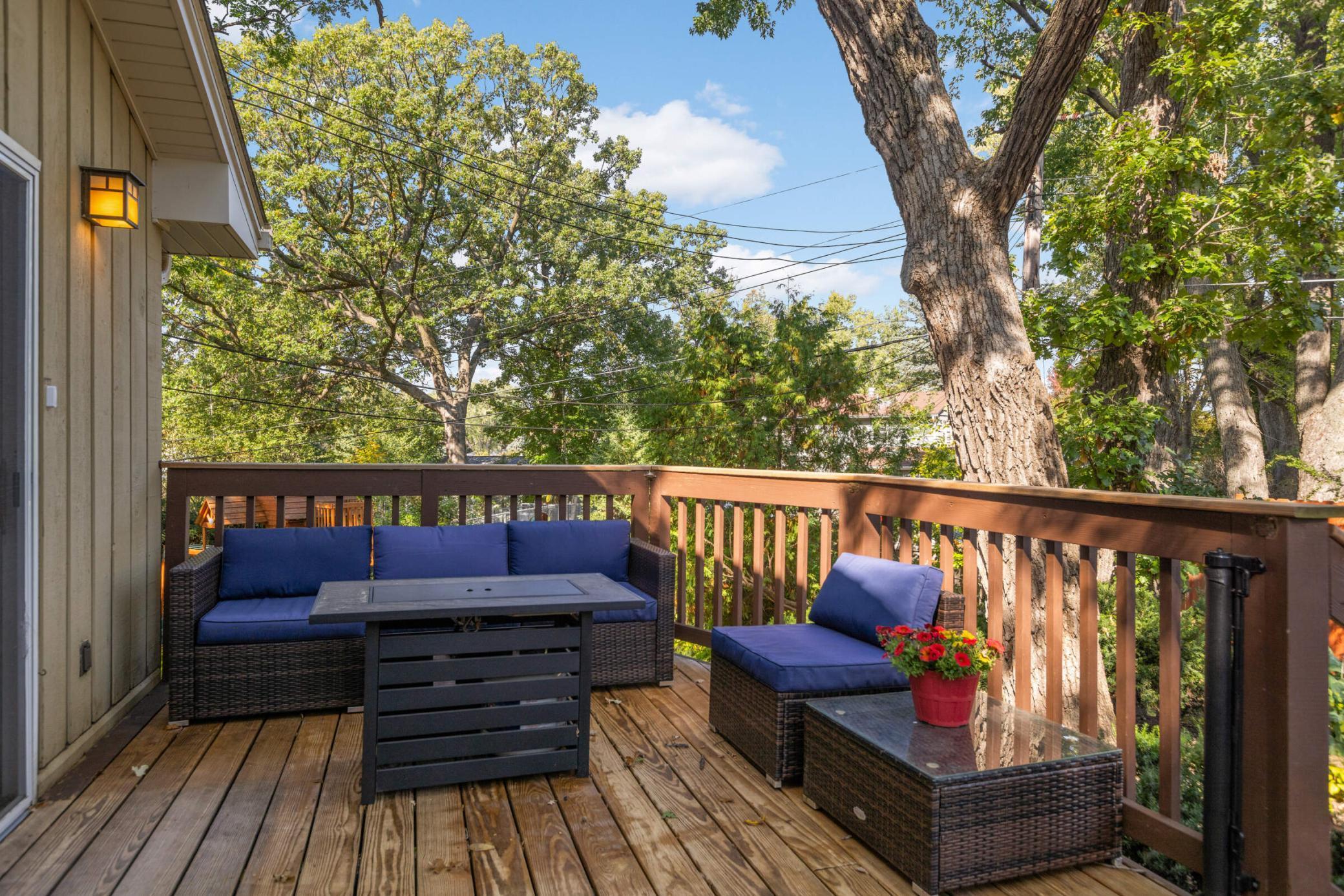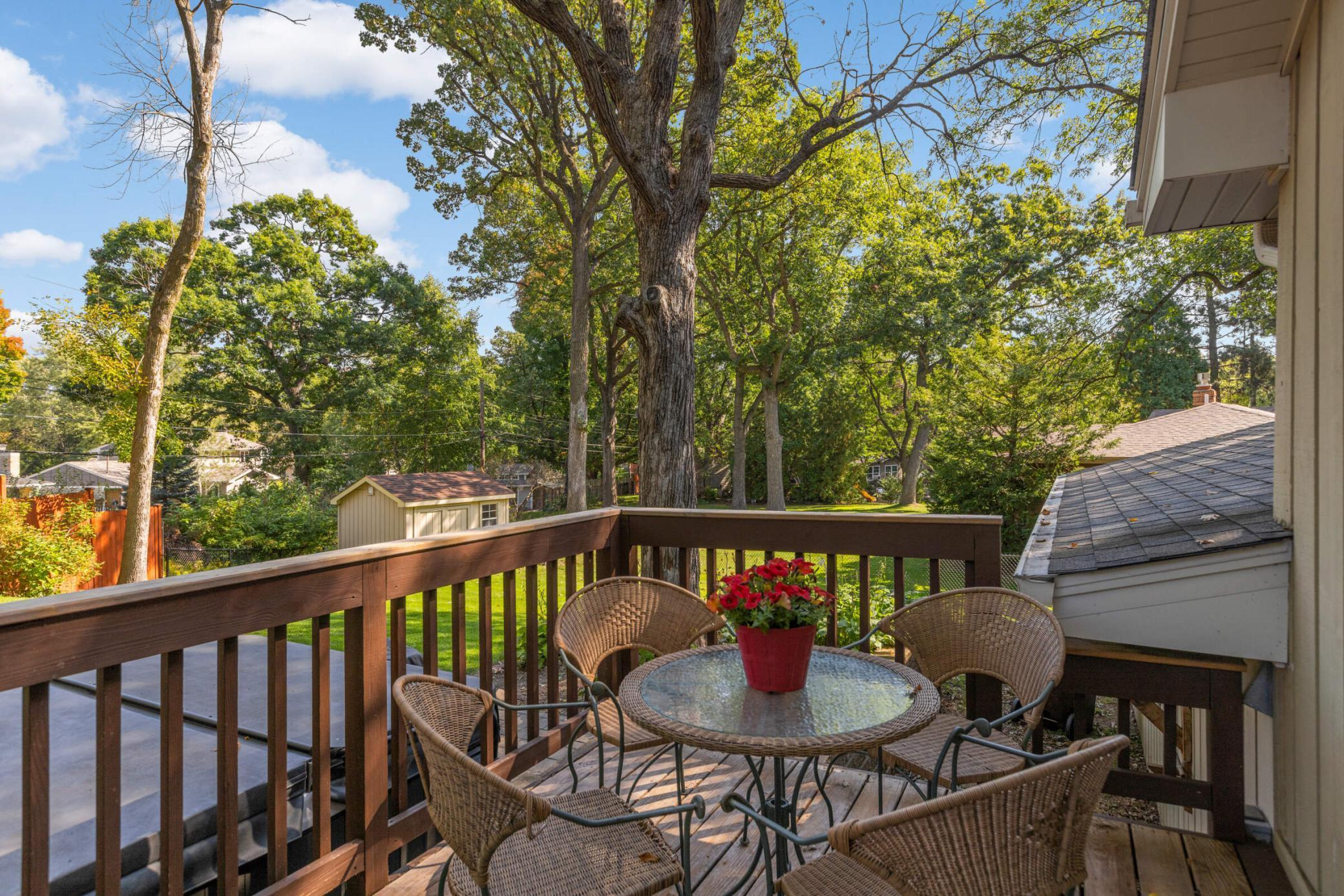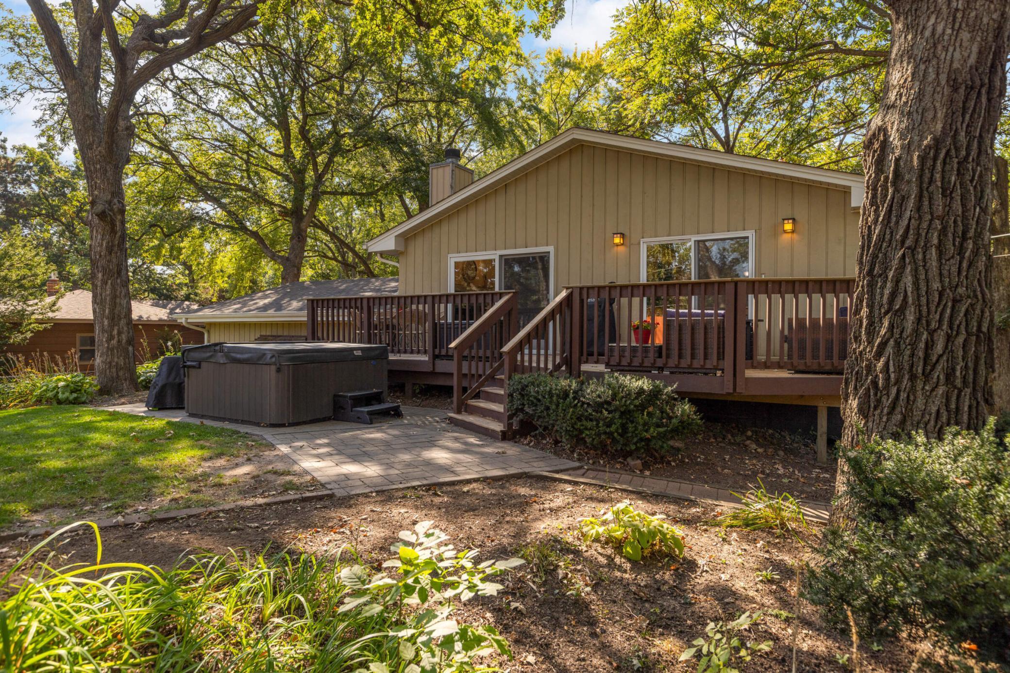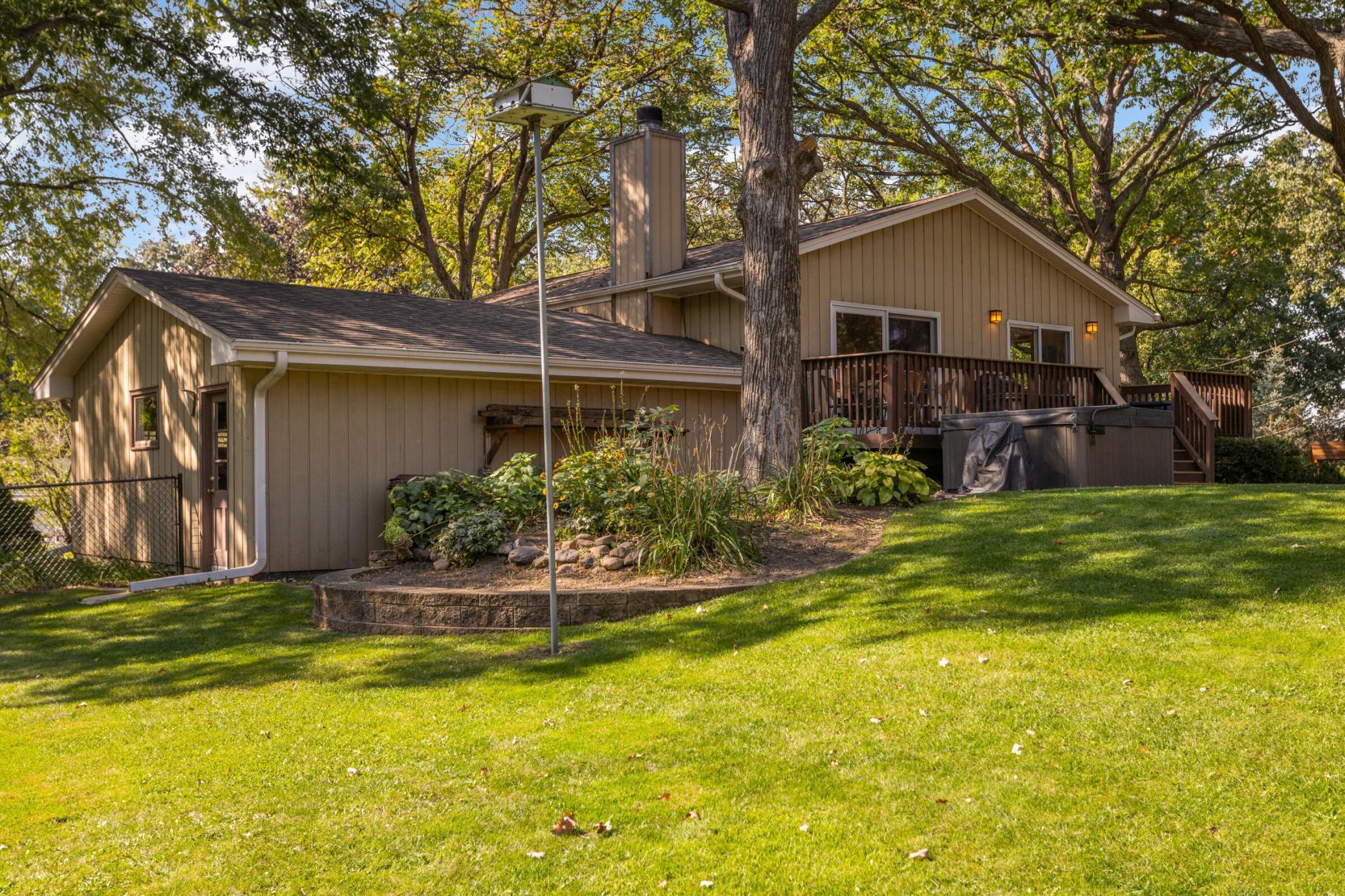 Welcome to this inviting home tucked on a peaceful Woodbury cul-de-sac, where modern updates meet cozy charm and an oversized backyard is designed for both relaxation and play. Upstairs, enjoy a light-filled living room with hardwood floors and a wood-burning fireplace that opens to a large deck overlooking the fenced backyard. The kitchen and eat-in dining area feature stainless steel appliances and a second walkout to the deck—ideal for everyday indoor/outdoor living or entertaining. French doors open to a flexible office space or potential 4th bedroom, and just beyond you’ll find two comfortable bedrooms, including a private owner’s suite with its own ¾ bath. A second full bath with tiled shower and updated vanity completes this level. The bright lower level offers a welcoming family room, a spacious third bedroom with large windows, a half bath with updated fixtures, a laundry/utility room with walkout access to the yard and extra fridge, plus a workshop/storage area with abundant built-ins—perfect for future finishing to add equity. Outdoor living shines with a newer concrete paver patio (2023), private walking path, included playset, and storage shed. Thoughtful updates provide peace of mind: attic insulation (2024), new toilets and vanity, water softener, roof (2019), furnace (2021), and water heater (2020). A 2-stall attached garage with side service door and built-in cabinets completes the package. Conveniently located near schools, parks, trails, and shopping, this home blends quiet neighborhood living with easy access to all Woodbury has to offer. Don’t miss out!