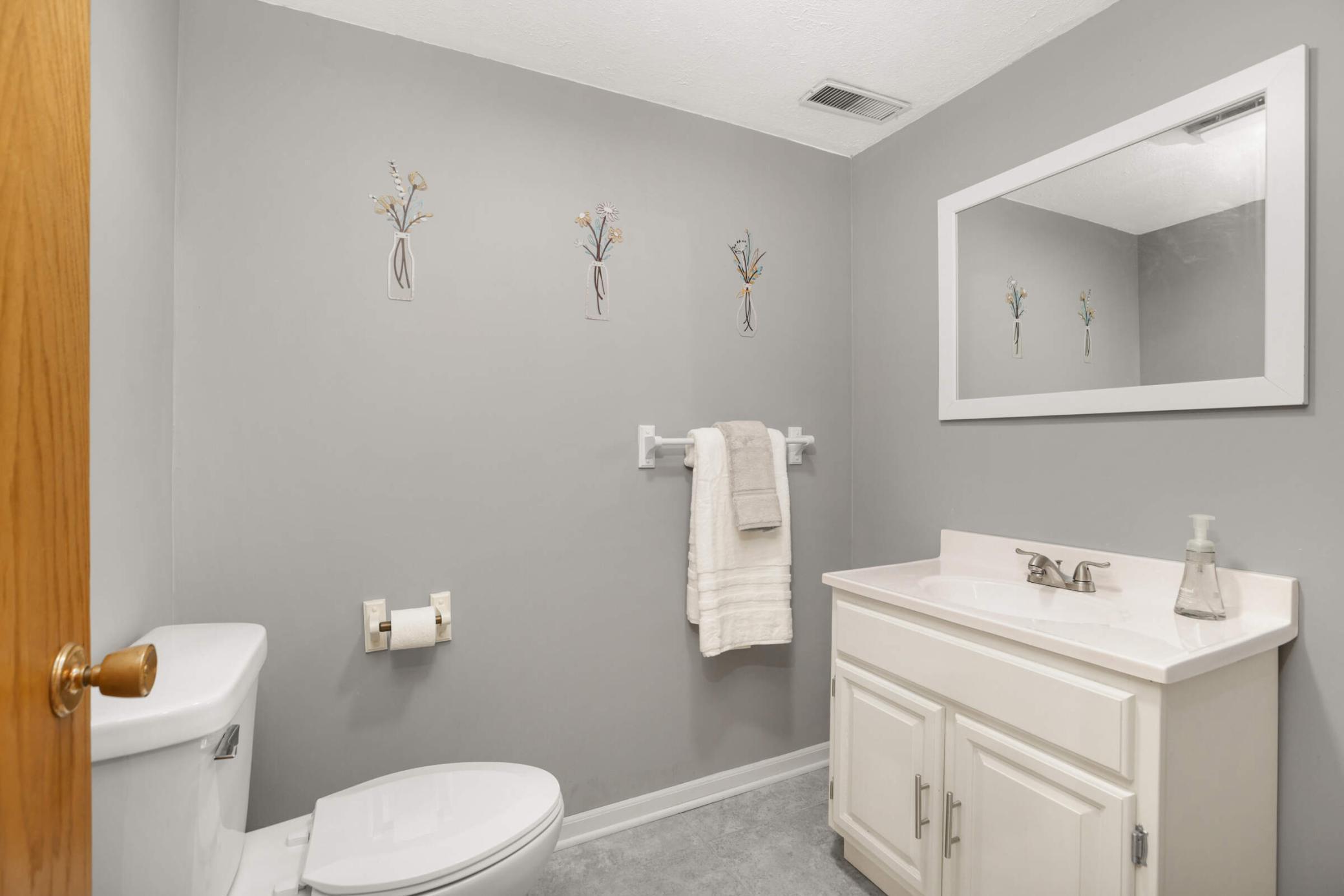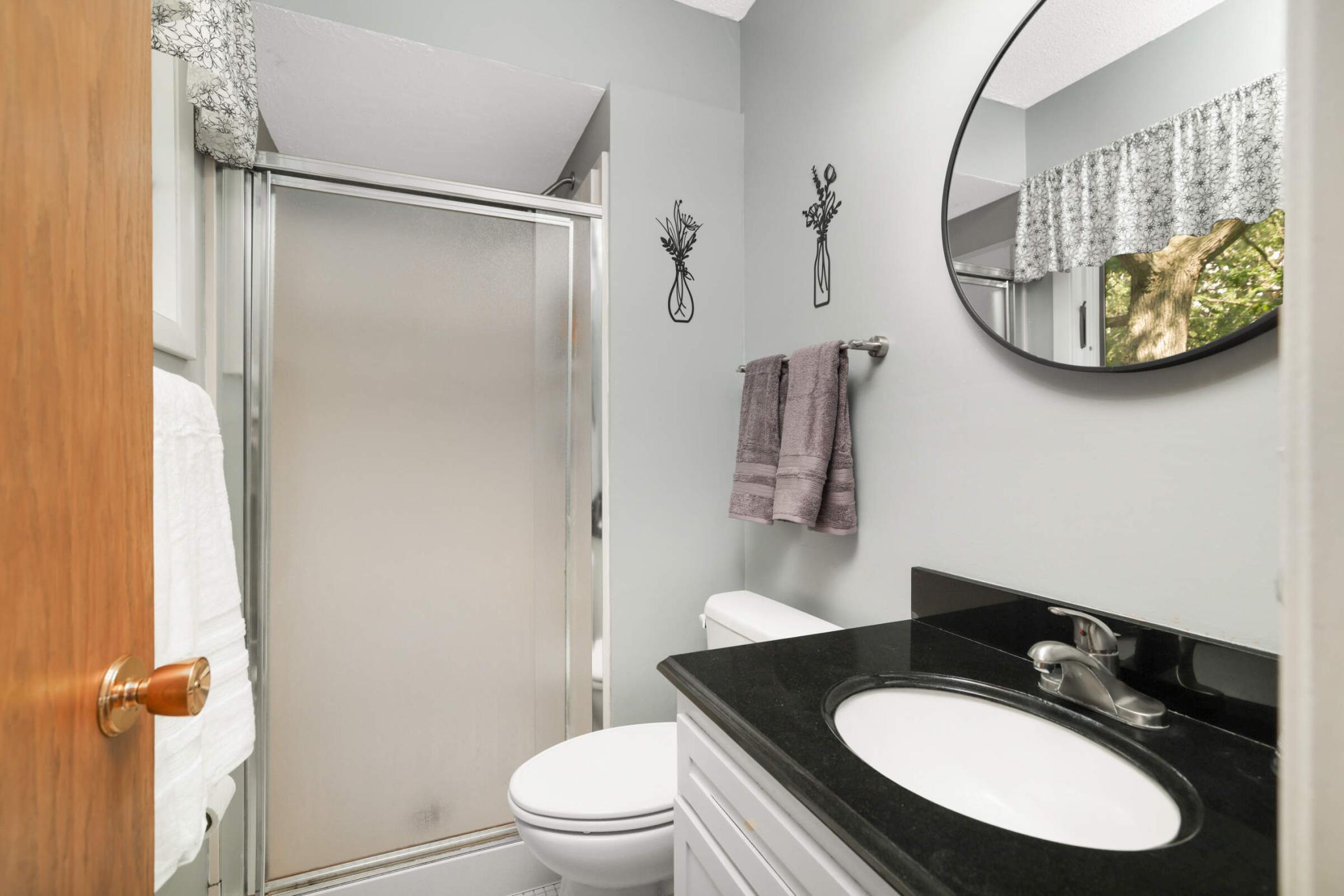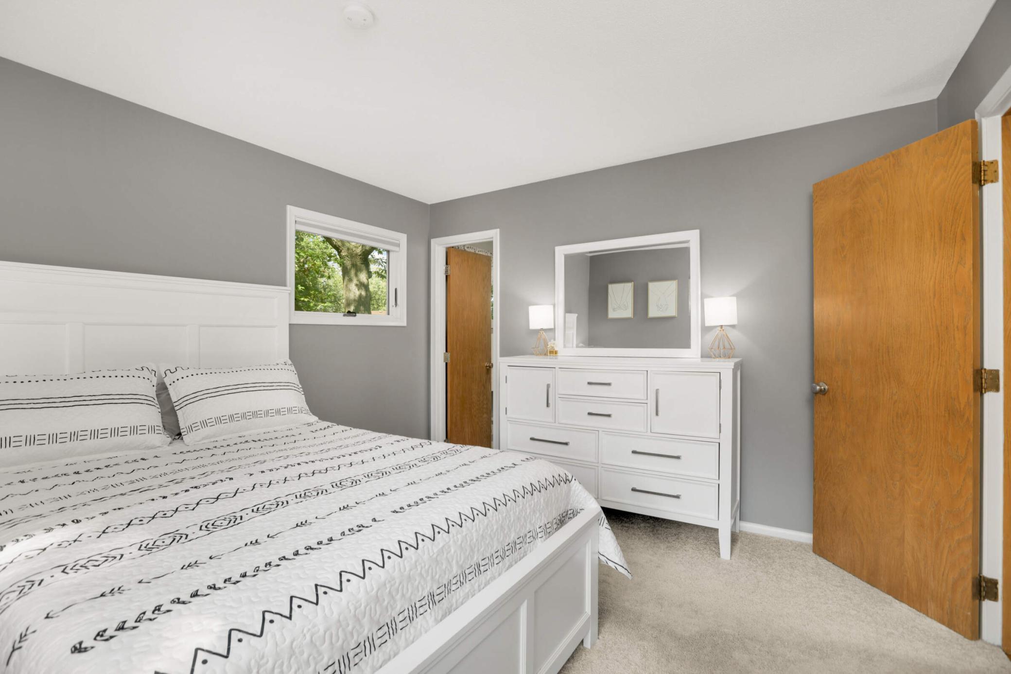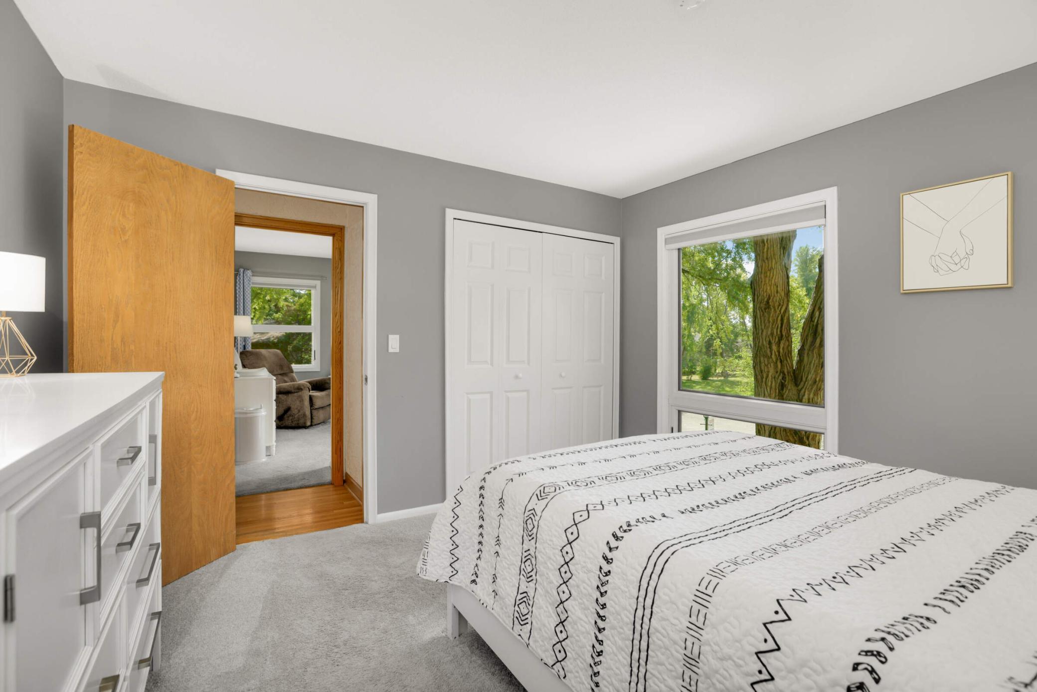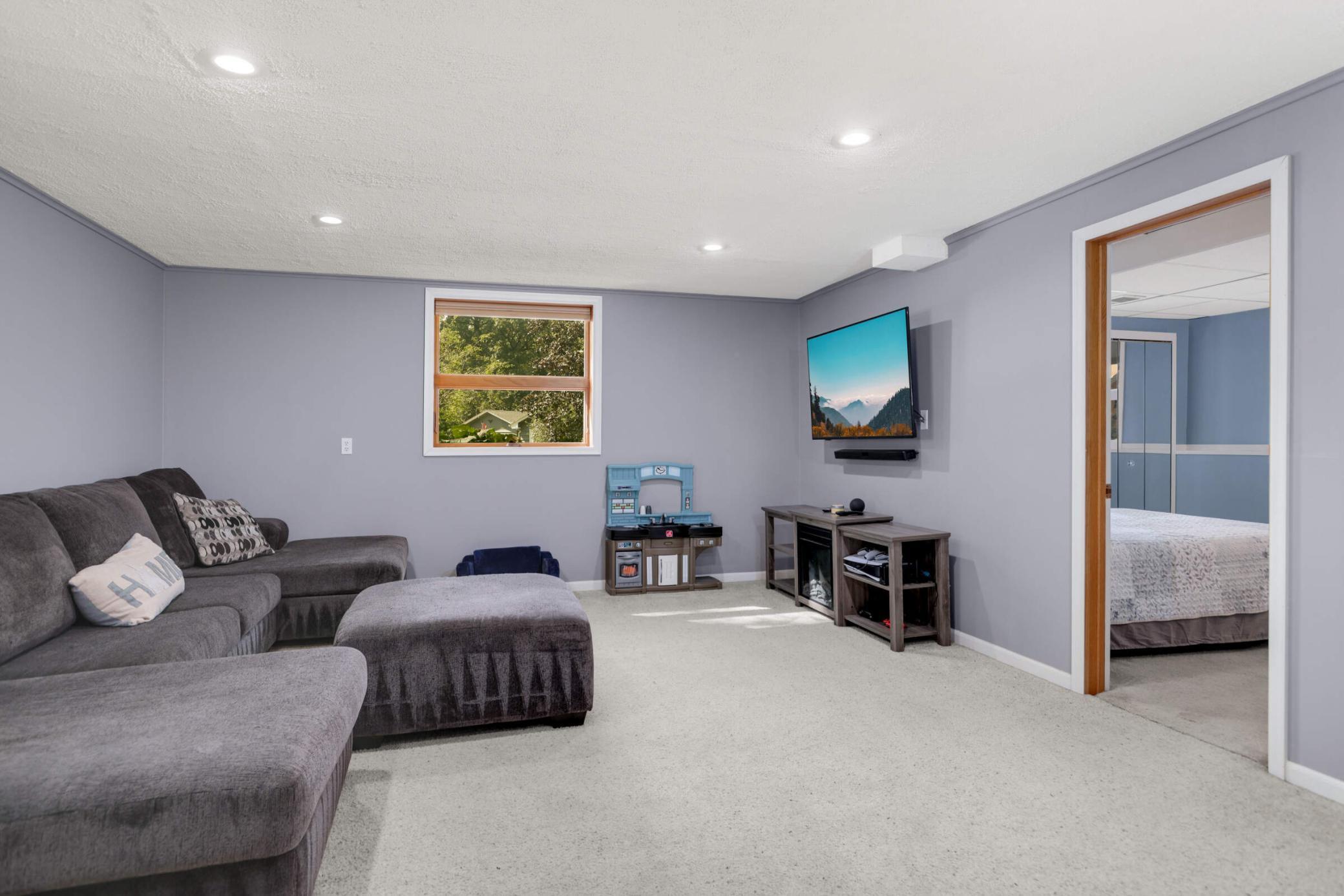 Welcome to this inviting home tucked on a peaceful Woodbury cul-de-sac, where modern updates meet cozy charm and an oversized backyard is designed for both relaxation and play. Upstairs, enjoy a light-filled living room with hardwood floors and a wood-burning fireplace that opens to a large deck overlooking the fenced backyard. The kitchen and eat-in dining area feature stainless steel appliances and a second walkout to the deck—ideal for everyday indoor/outdoor living or entertaining. French doors open to a flexible office space or potential 4th bedroom, and just beyond you’ll find two comfortable bedrooms, including a private owner’s suite with its own ¾ bath. A second full bath with tiled shower and updated vanity completes this level. The bright lower level offers a welcoming family room, a spacious third bedroom with large windows, a half bath with updated fixtures, a laundry/utility room with walkout access to the yard and extra fridge, plus a workshop/storage area with abundant built-ins—perfect for future finishing to add equity. Outdoor living shines with a newer concrete paver patio (2023), private walking path, included playset, and storage shed. Thoughtful updates provide peace of mind: attic insulation (2024), new toilets and vanity, water softener, roof (2019), furnace (2021), and water heater (2020). A 2-stall attached garage with side service door and built-in cabinets completes the package. Conveniently located near schools, parks, trails, and shopping, this home blends quiet neighborhood living with easy access to all Woodbury has to offer. Don’t miss out!