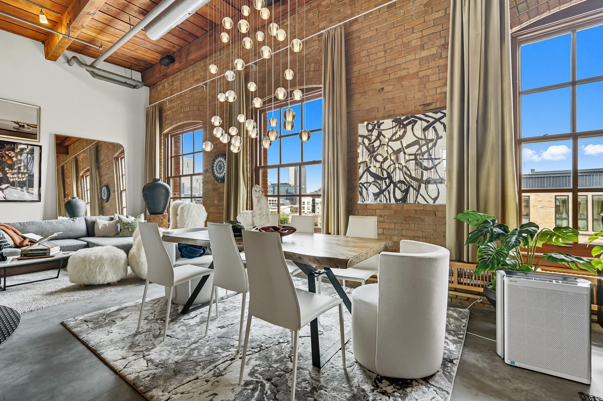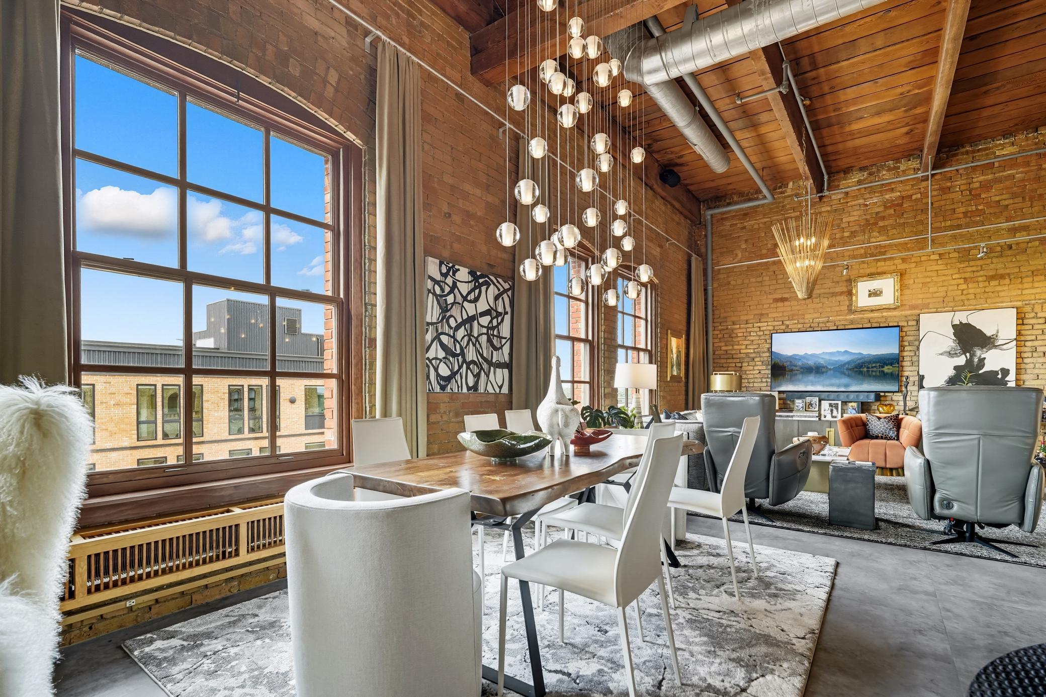 Originally built in 1900, this Historical North Loop Loft perfectly blends the original character of the building with modern comforts! The soaring ceilings along with south facing windows make the space feel expansive, open, and bright. Industrial Loft Conversions can tend to feel cold with lots of concrete, however, the large timber beams and exposed brick warm up the space perfectly here. Major remodel completed over the past couple years with all new appliances, flooring, high end light fixtures, countertops & backsplash, extra thick kitchen sink, whisper quiet garbage disposal, & both bathroom vanities were replaced. All appliances are high end LG Models - the fridge will even make round ice balls for your evening cocktail. High speed Cat 8 ethernet was pulled directly into the office and living room for the best video and audio streaming possible. This is a Penthouse Level unit so you will never have to listen to your neighbor walking above you. Also, with it being a top-level unit, skylights were added in both bedrooms and the main entryway to ensure plenty of natural light makes it to every part of the space. The Scandinavian wood burning fireplace adds warmth and the smell of the outdoors during the cold winter months. 2 Garage Parking Stalls are included with the unit - a rarity at Itasca Lofts as many units don't even come with 1 spot. In the Loop Coffee Co., Itasca Wine & Spirits Liquor Store, and Acme Comedy Club + Sticks Restaurant are located on the first level of the building for when you want a morning coffee or a drink and a laugh. This location is truly a quiet oasis in the North Loop with it being a short walk from everything you could want on Washington Avenue while still just far enough away from the hustle and bustle. The best restaurants and exceptional shopping at Martin Patrick, Madewell & Jaxen Grey are all a short walk away. Nature is right in your backyard as well with the Mississippi walking/biking trails behind Itasca Lofts. Make sure to check out the Virtual Home Tour and book your private showing today!
