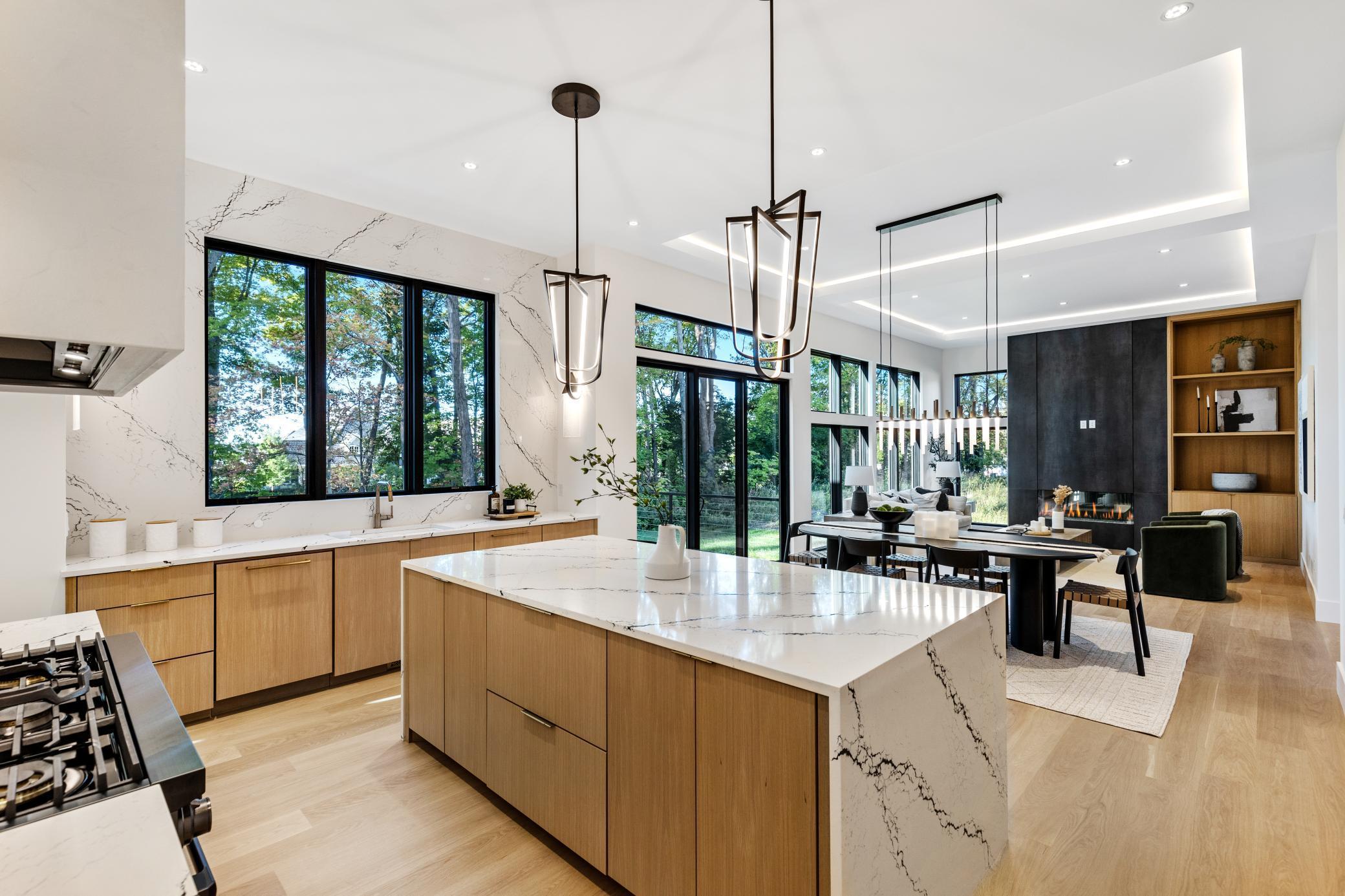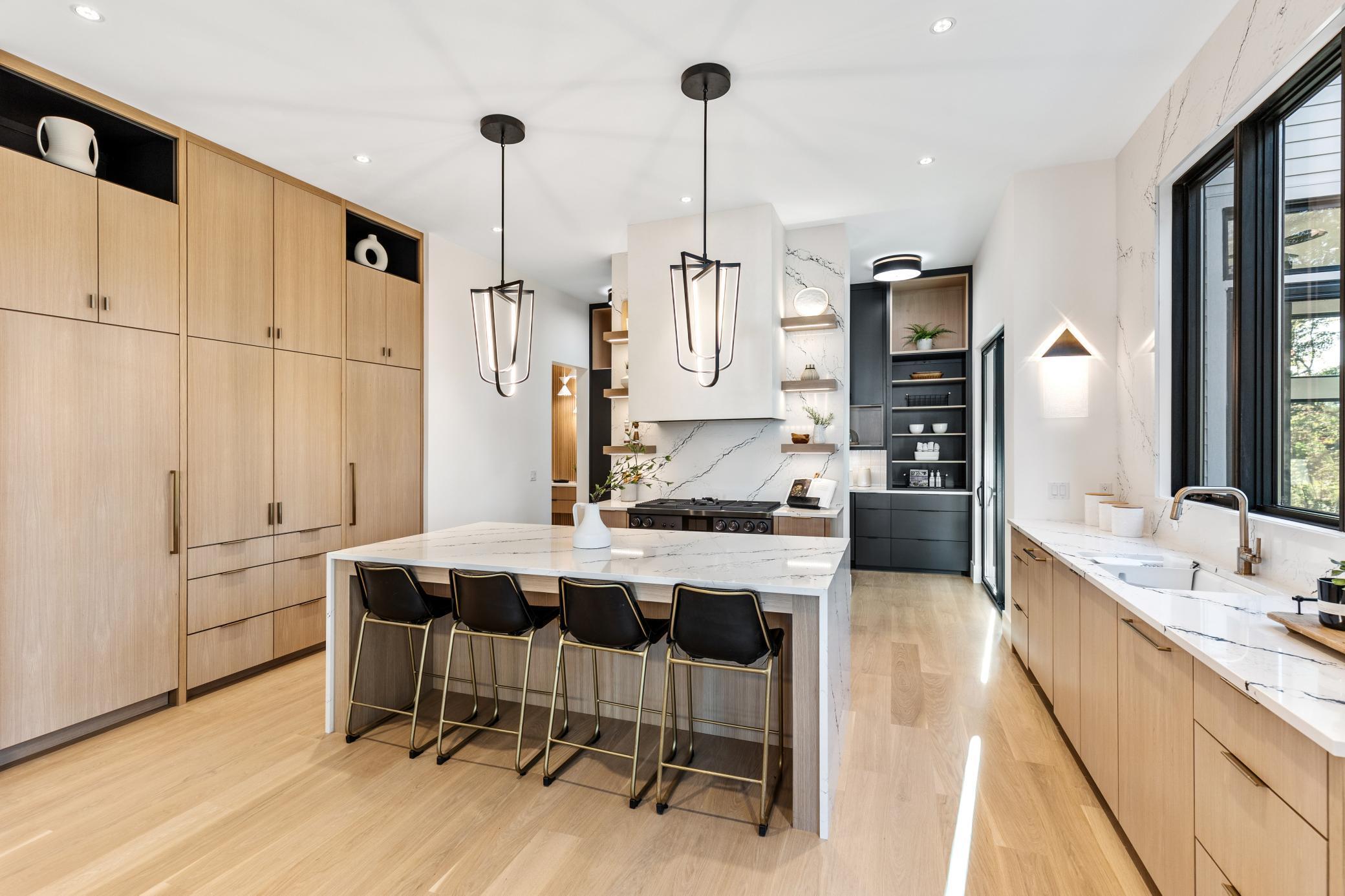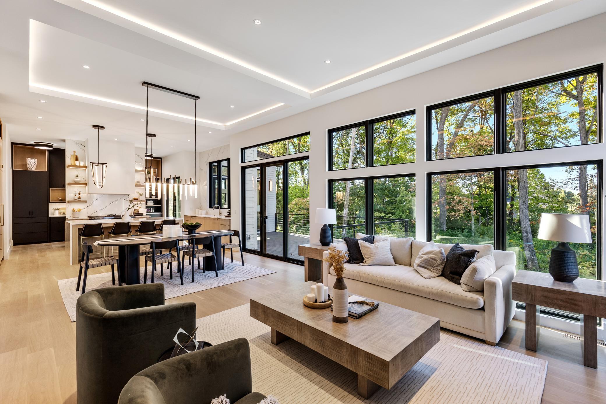 Gorgeous completed new construction home offering elevated modern finishes throughout! The open floorplan features walls of windows showcasing natural light-filled spaces; family room with unparalleled woodwork details and gourmet kitchen with high-end appliances. Prep pantry with additional storage, beverage fridge and space for a coffee bar! Enjoy the 4-season porch with gas fireplace and sliding doors that open to the expansive deck creating the perfect blend of indoor and outdoor living! The upper-level offers a primary suite with custom woodwork wall detail, heated bathroom floors and spacious walk-in closet. Three additional bedrooms on the upper-level include a junior suite, two guest bedrooms and large bonus room with wet bar (great bunk room or additional bedroom!). Lower-level amusement room with more custom woodwork wall details; wet bar; space for future wine storage; exercise room and athletic court alternative. Additional features include a main-level office with beautiful glass door; upper-level laundry room; dog room with dog wash; and heated 3-car extra deep garage. Quiet cul-de-sac setting in highly sought-after Wayzata School District! Truly a must-see!