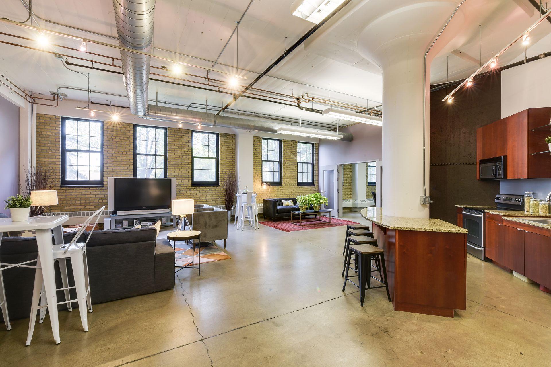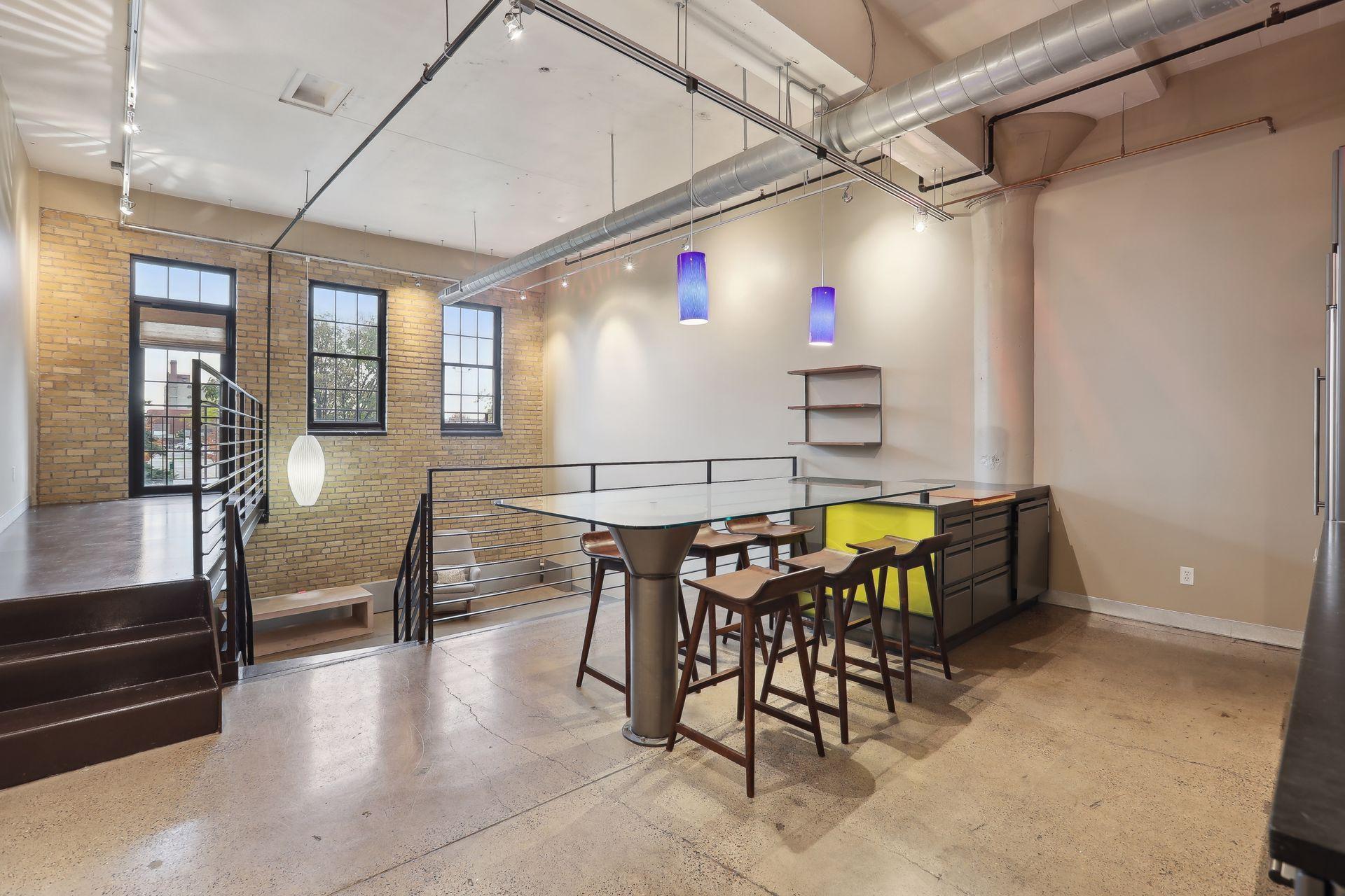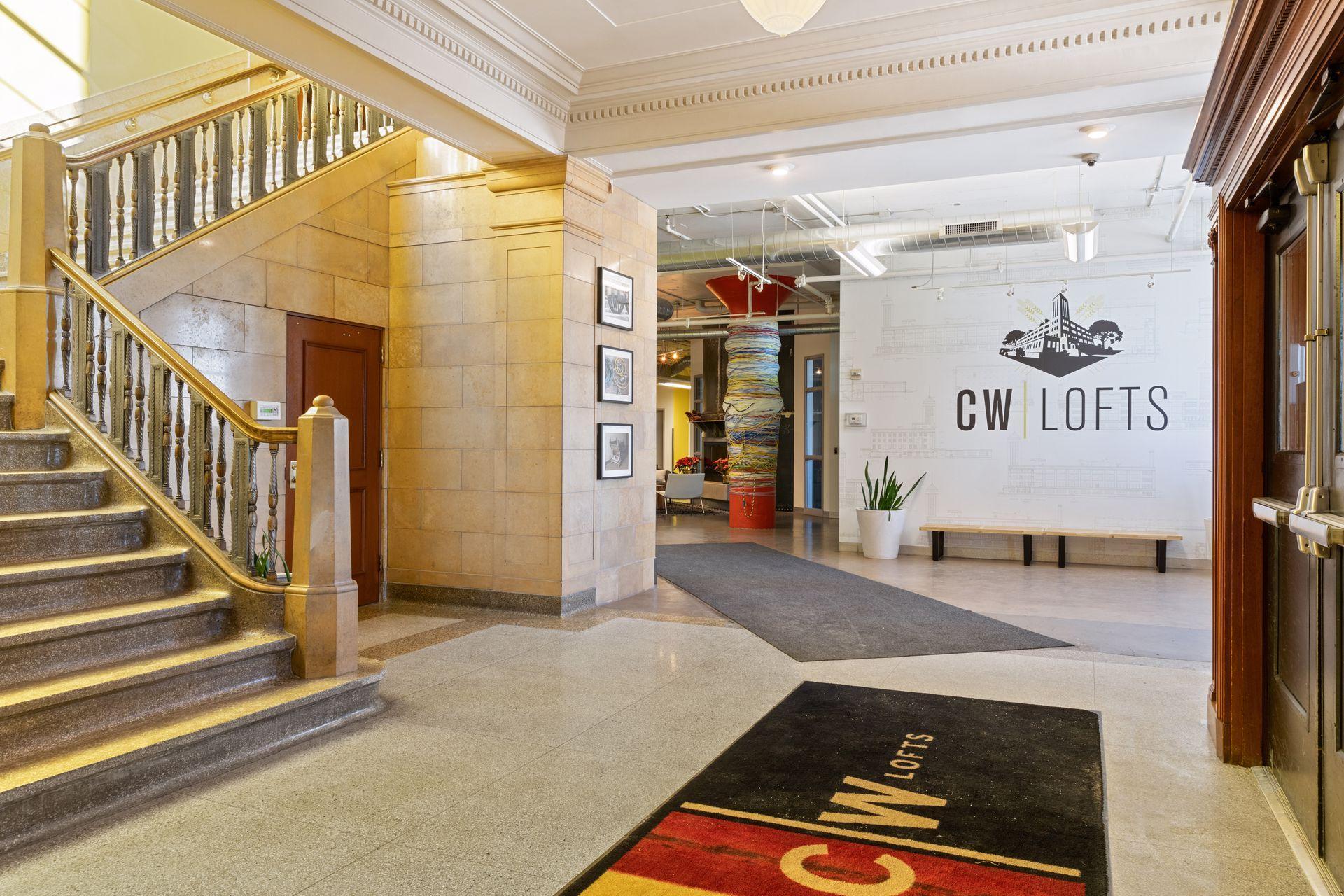 If ou're looking for an exciting urban lifestyle, you can find it here at the prestigious CW Lofts! This spacious unit boasts high ceilings with eye-catching track lighting, wonderful windows overlooking the grounds, and steps away from all the fabulous association amenities. As you enter you will discover a sunken living room with a classic brick wall & historic railroad tracks in the flooring! Large windows provide natural light and pleasant views, and there are expanses of custom cabinets for storage. Find easy access to the loft/mezzanine above, with a walk-out to the private deck! The functional kitchen features abundant cabinetry and stainless steel appliances. A sophisticated glass island provides your guests with counter seating while visiting with the cook! The owner's bedroom features a walk-in closet, a walk-through 3/4 bath & a convenient laundry room. The flexible 2nd bedroom/den has built-ins and could easily function as a home office to suit your changing needs. Two heated garage stalls with power supply for EV charging stations! Association amenities include a community room, exercise room, amusement room, inviting lobby! * Note some photos are virtually staged.