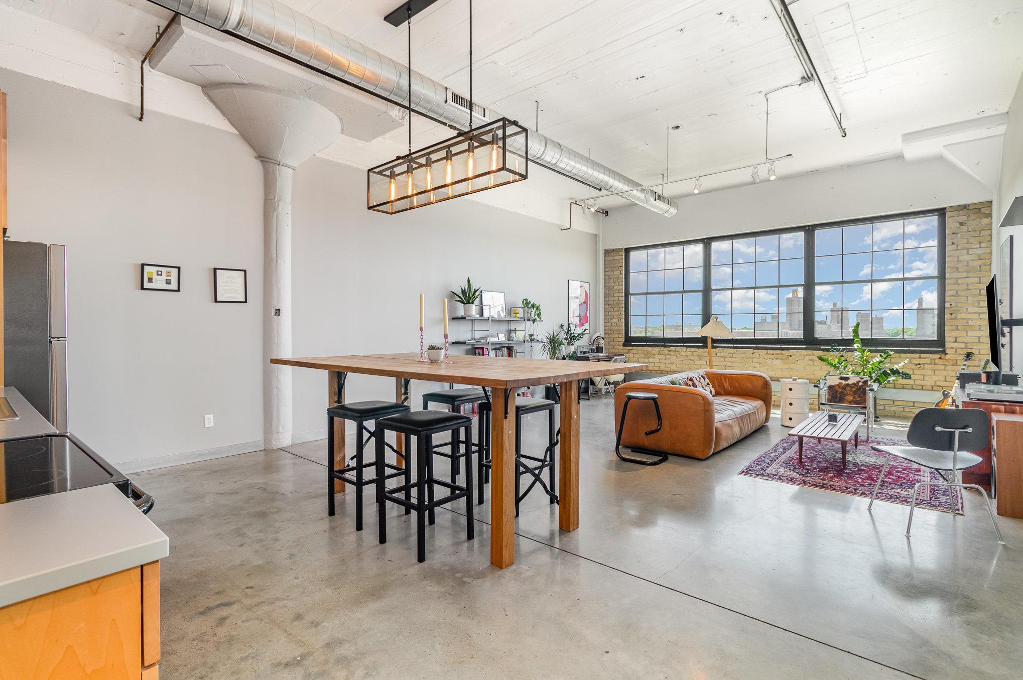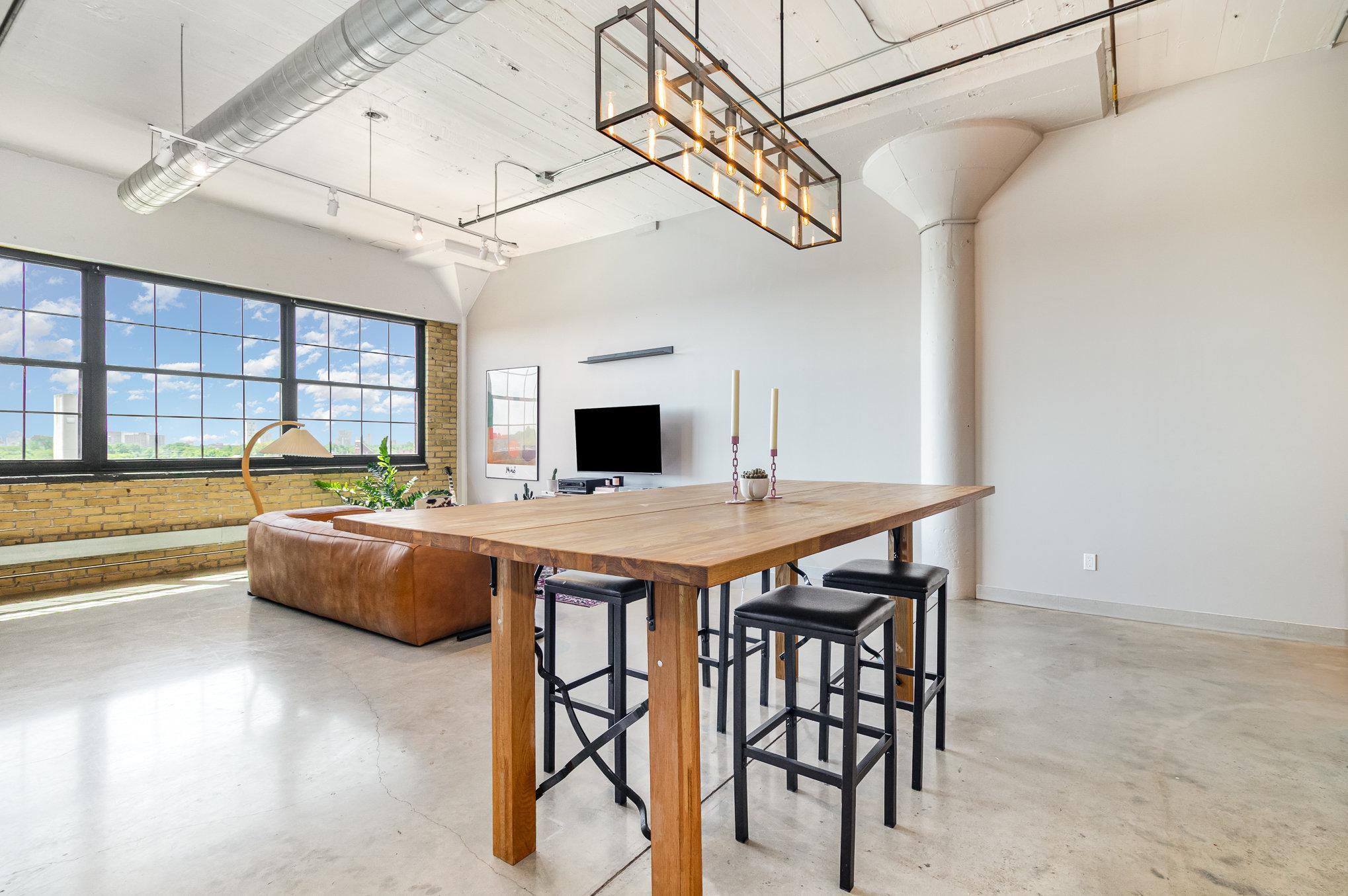 Care for a cocktail from Norseman Distillery... or a coffee from Honour Cafe... or a gyro from Zakia Deli… all while living the loft lifestyle in the vibrant Northeast Minneapolis Arts District? If you enjoy any of those things then this is the spot for you. Welcome to Unit 406 at CW Lofts, an expansive condo in the historic Cream of Wheat building in Northeast. This south-facing unit on the fourth floor offers 1,077 square feet of open and airy space, with larger kitchen, living, and bedroom areas than most units in the building which make it the perfect home for those who value having room to breathe. Industrial character meets modern comfort in this historic building with soaring ceilings, polished concrete, and massive windows that flood the space with natural light, perfect for the plants and for a cat nap in the sun. The open kitchen features a new SS refrigerator and dishwasher, as well as a custom backsplash, plenty of storage space, and a kitchen island table that can stay with the next homeowner. The oversized eat-in kitchen and living area provides endless flexibility for entertaining friends, dining with family, working from home, or relaxing to your favorite record. The generously sized bedroom (which you wouldn’t get with a 2 bed unit) includes a walk-in closet and ample space for your own furniture to fill the room. Keep the bedroom space open or wall it off for added privacy as some other units have done. The in-unit laundry room, with new washer and dryer, provides storage space and is perfectly situated across from your closet and bedroom for added convenience. CW Lofts amenities include a community patio with grill, community/party room, a private dog park for CW resident fur babies, fitness center, fire pit area, community garden, bike storage, and more. Also important to note, the HOA DUES COVER EVERYTHING other than electric. Back to the amenities, the biggest of which is being conveniently located in NE Minneapolis close to shopping, parks, trails, restaurants, public transportation, the North Loop & Downtown, the U of M, and more. Don’t miss your chance to own one of the most spacious 1-bedroom layouts in the iconic CW Lofts building!