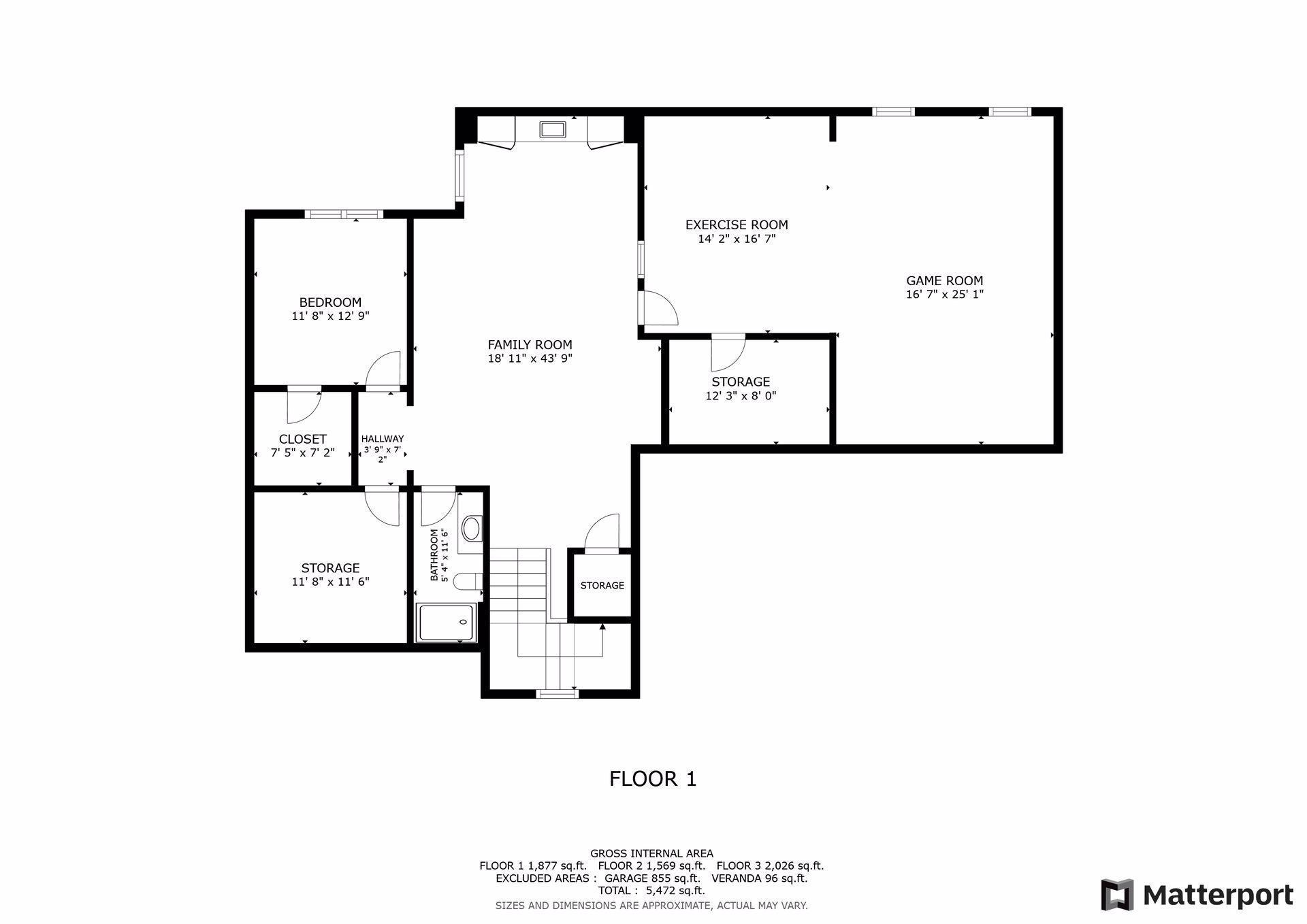 Exercise Room | 14'6x17'3 | 250.13 ft² |