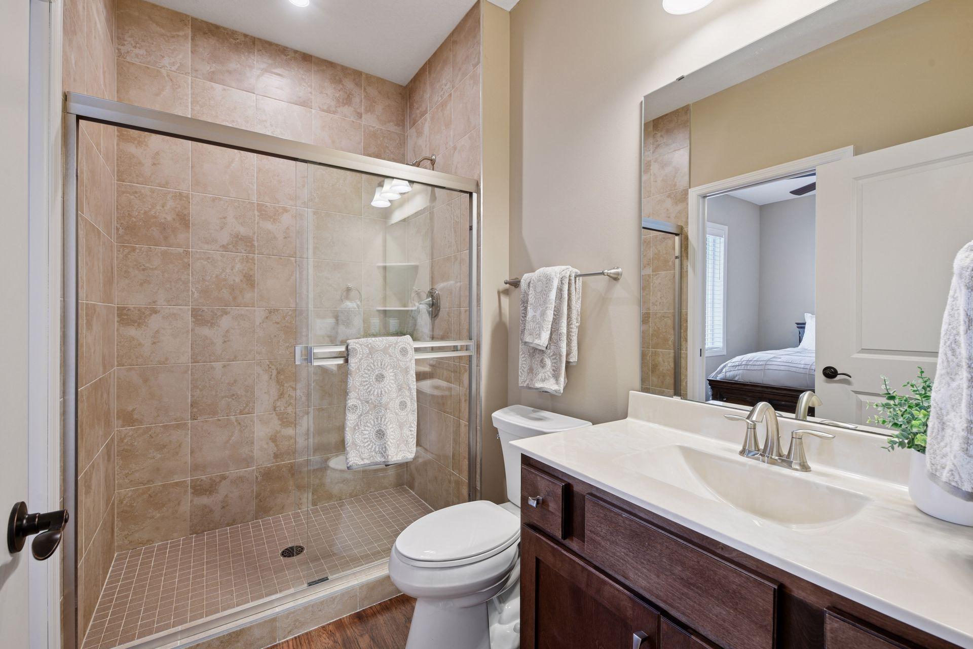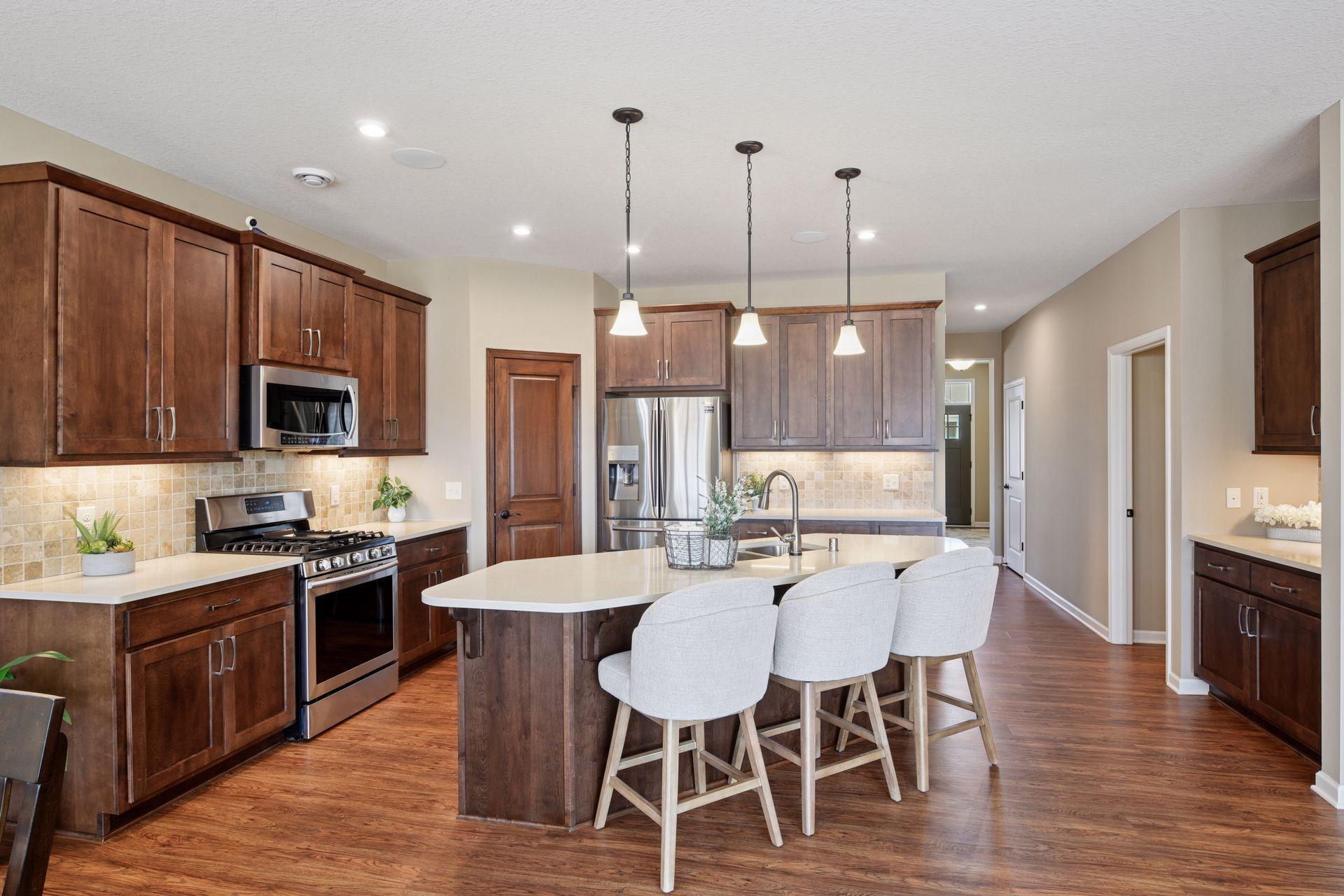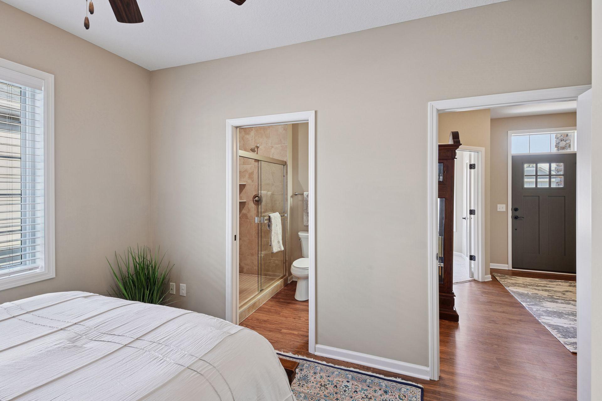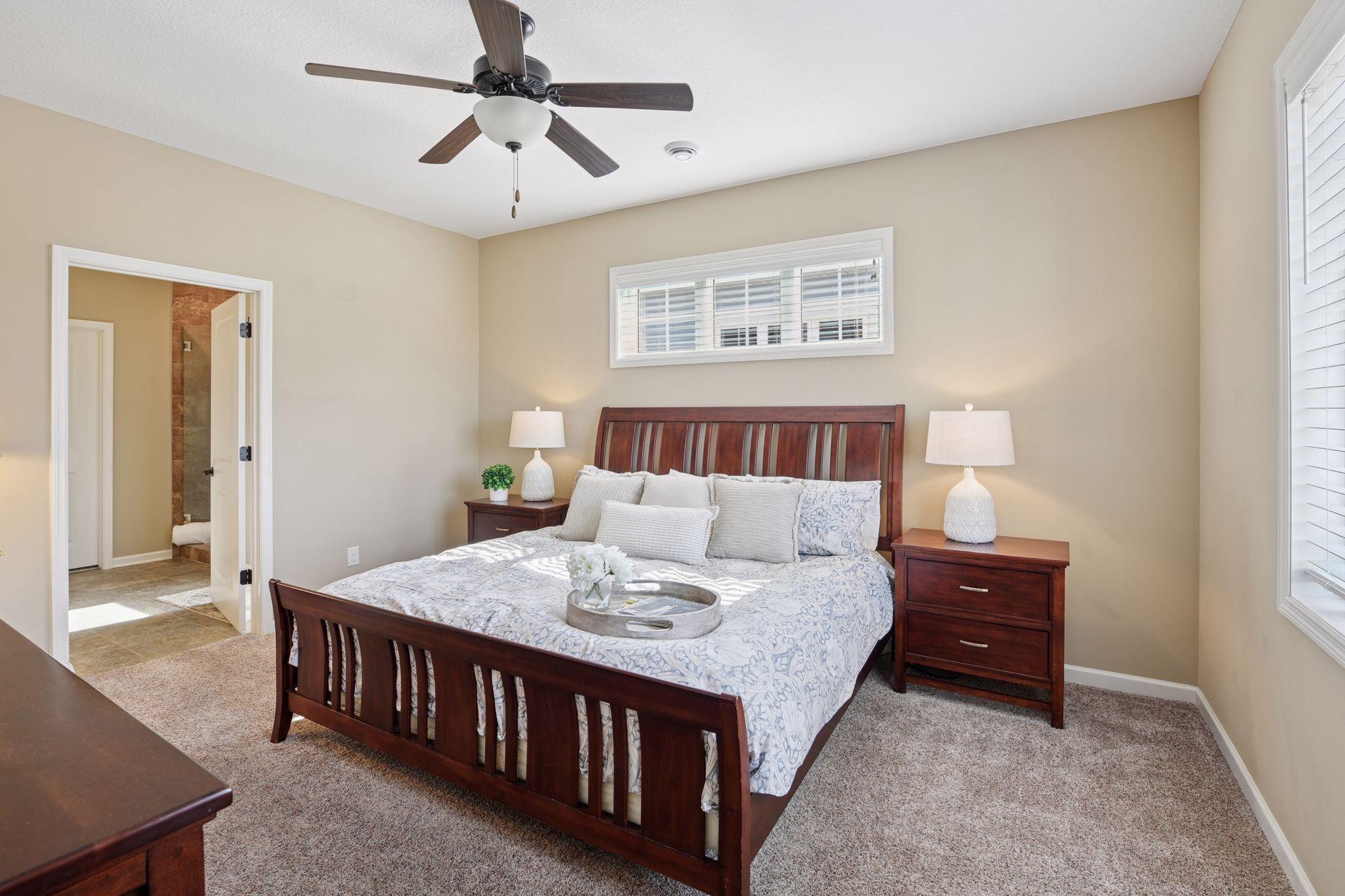 Welcome Home to This One-Level Living villa with wetland views and beautiful sunsets! The open floor plan features a beautiful lifestyle kitchen, oversized island, gas range, 36” roll-out shelves, soft close drawers and huge walk in pantry. Many upgrades to this home including surround sound in great room, heated garage, built-in cabinets & sink in the laundry room, boot bench and broom closet. The owner-suite has dual vanities, large shower, soaker tub and an amazing walk-in closet. Mudd room / spacious laundry with built in cabinets, a finished garage with an additional 15 x14 storage room above the garage with access by full staircase for all your storage needs. The location is close to trails, parks, shopping, restaurants and entertainment. There is nothing to do here but move in and enjoy, it shows like a model!