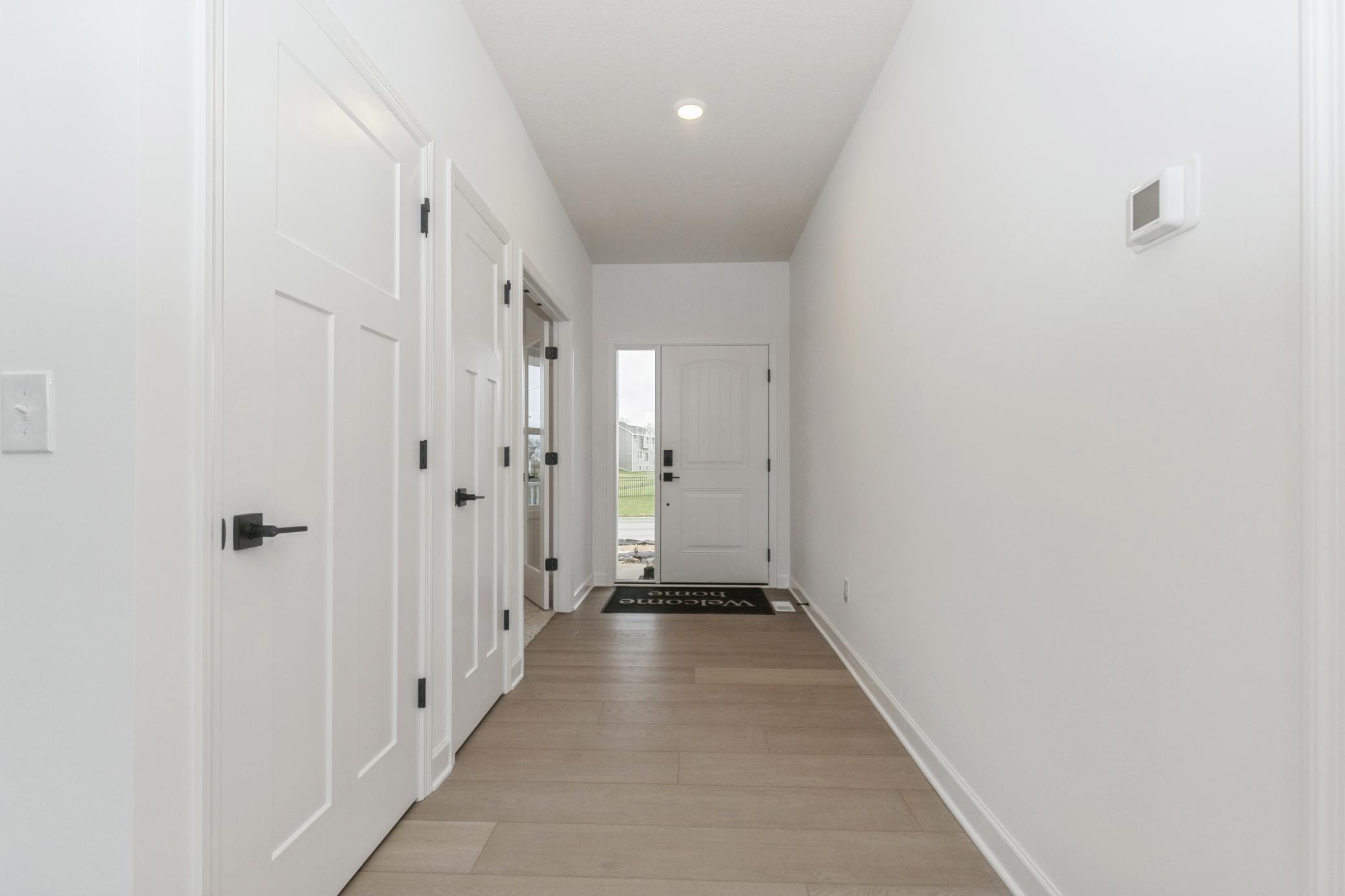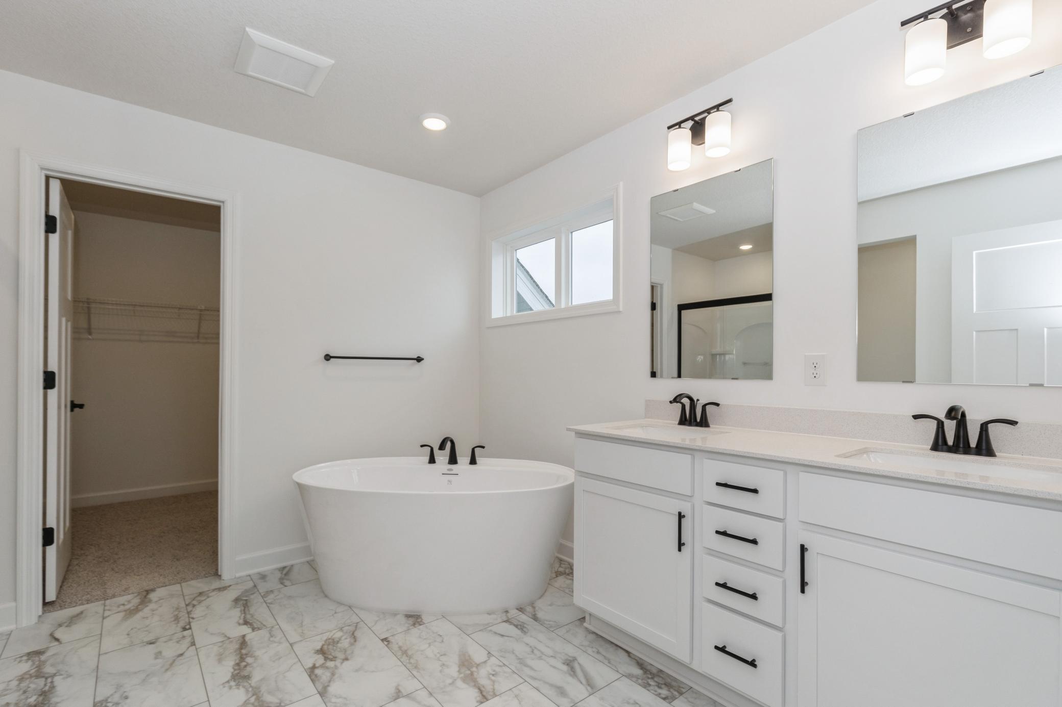 Home is move-in ready! Located in the popular Willowbrooke community, the Sinclair features 4 bedrooms, 2.5 baths, and 2,468 square feet of well-designed living space. Step inside from the covered front porch to the private office with double doors, family room with LVP flooring and cozy gas fireplace, and a stunning kitchen with large island, quartz countertops, subway tile backsplash, stainless steel appliance package with a gas range, and sleek black hardware. Upstairs, the light-filled owner’s suite features a serene bath with freestanding soaking tub, shower, dual vanities, and a walk-in closet. The upper level is completed by three spacious bedrooms with walk-in closets, a large laundry room, walk-in linen closet, and a full bath. The unfinished lower level offers room for immediate storage and future expansion. Sod, landscaping, and a lawn irrigation system are also included! Set between the Rice Creek Chain of Lakes and I-35E, the community is enveloped in a gorgeous natural environment, yet offers easy access to the Twin Cities metro area for shops, restaurants, entertainment venues and more. Ask how you can save up to $5,000 with Seller's Preferred Lender!