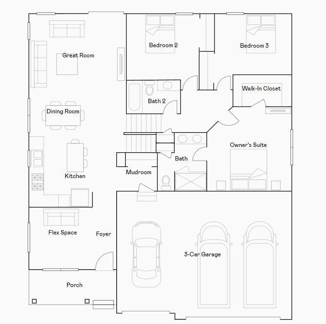 This home is under construction and will be completed in January 2026. This new two-story home showcases a modern design with a walkout basement. On the main-level Great Room and dining room are beautiful vaulted ceilings, which is complemented by a kitchen with a center island and a flex space that offers endless possibilities. The luxe owner’s suite and two secondary bedrooms are located on the uppermost level, while a fourth bedroom ideal for overnight guests is situated on the lower one along with an additional bathroom. Ask about how to qualify for $5,000 in savings with the use of the Seller's Preferred Lender!