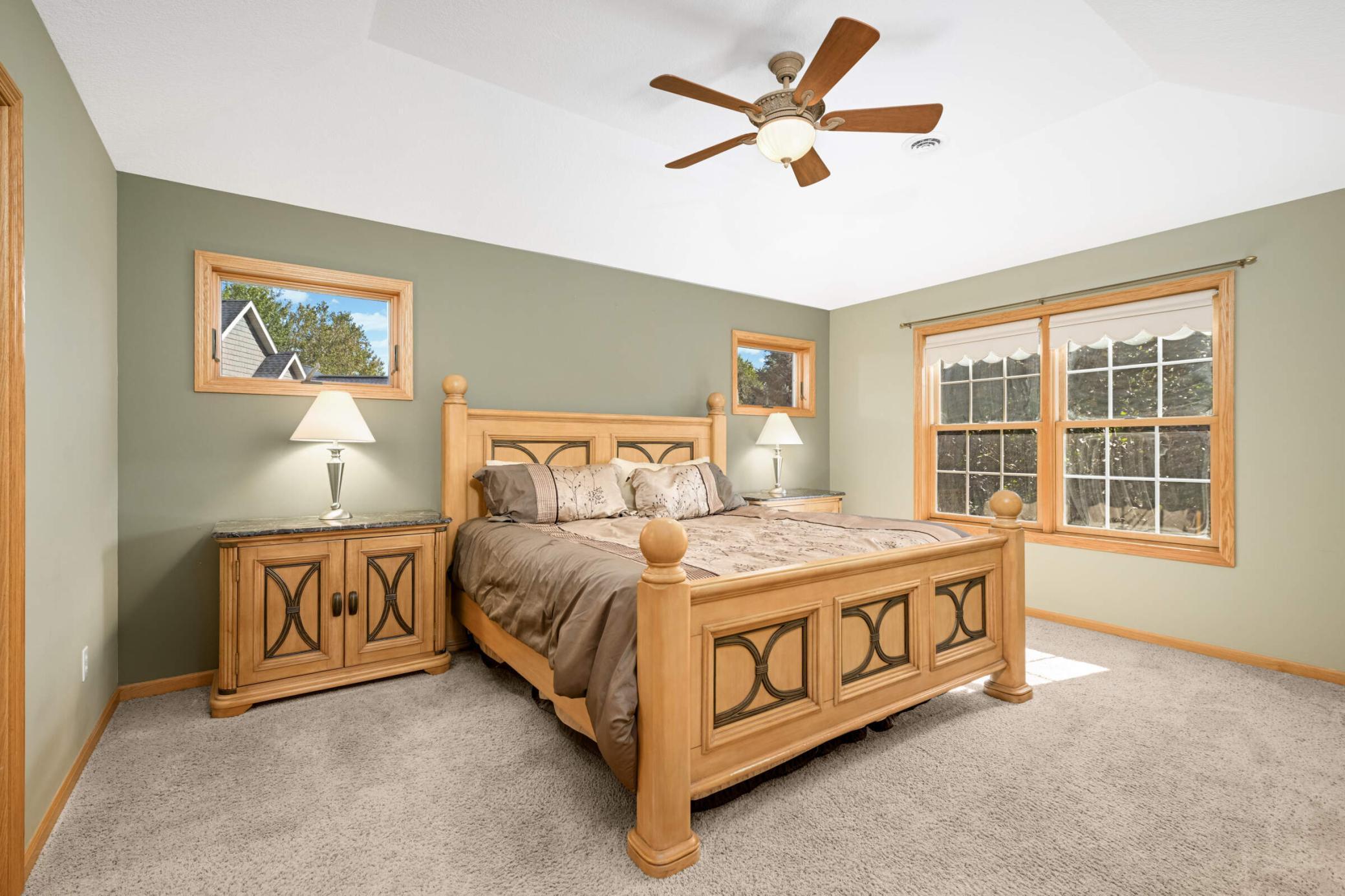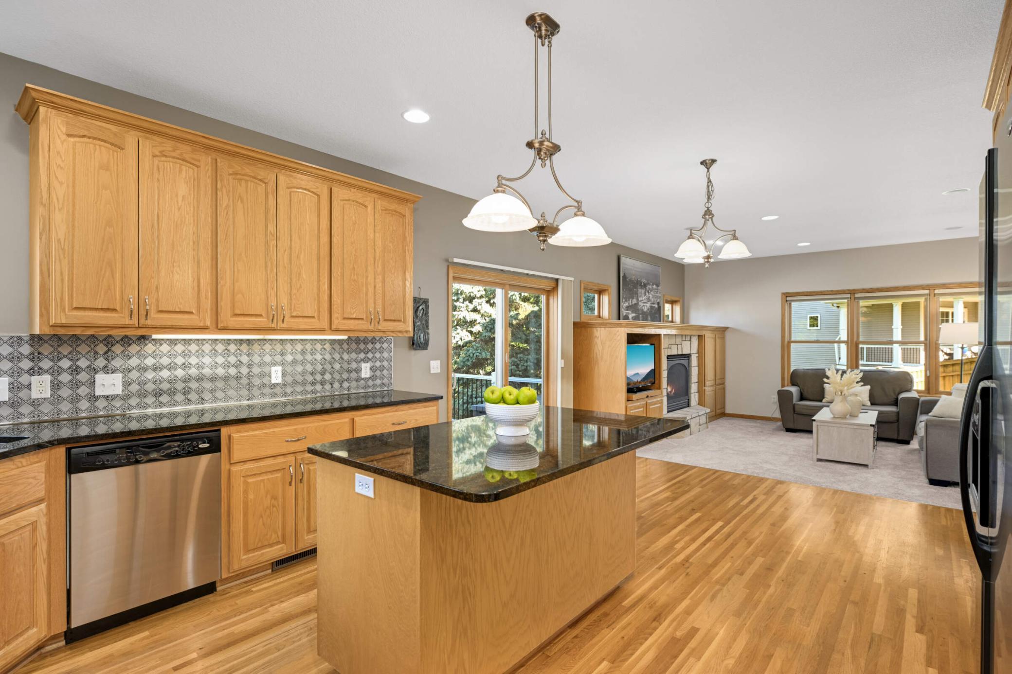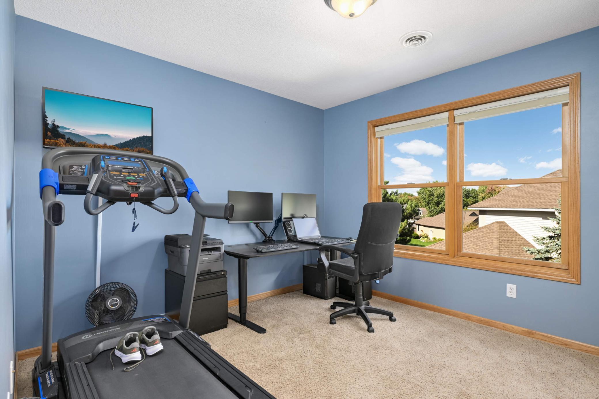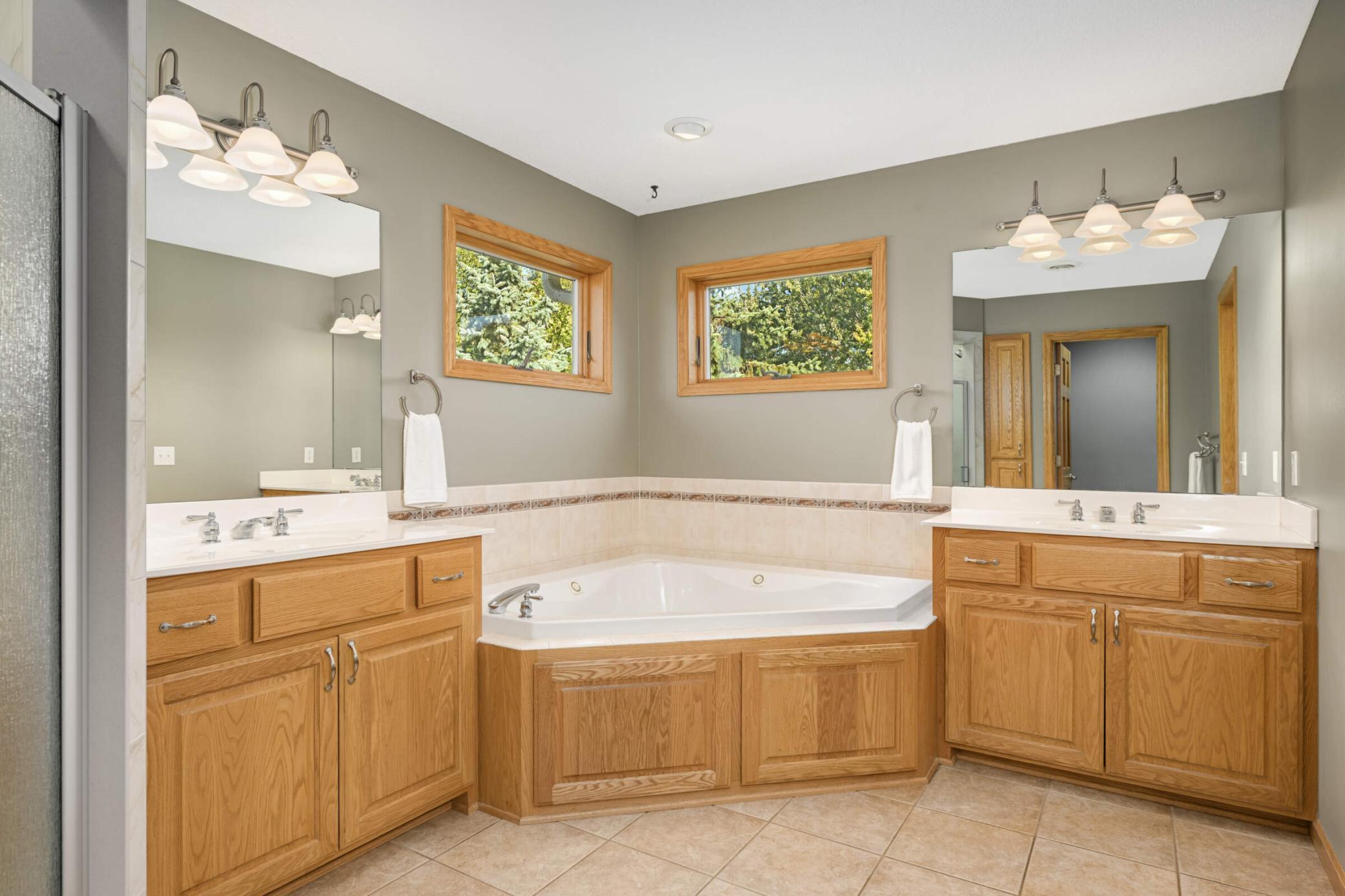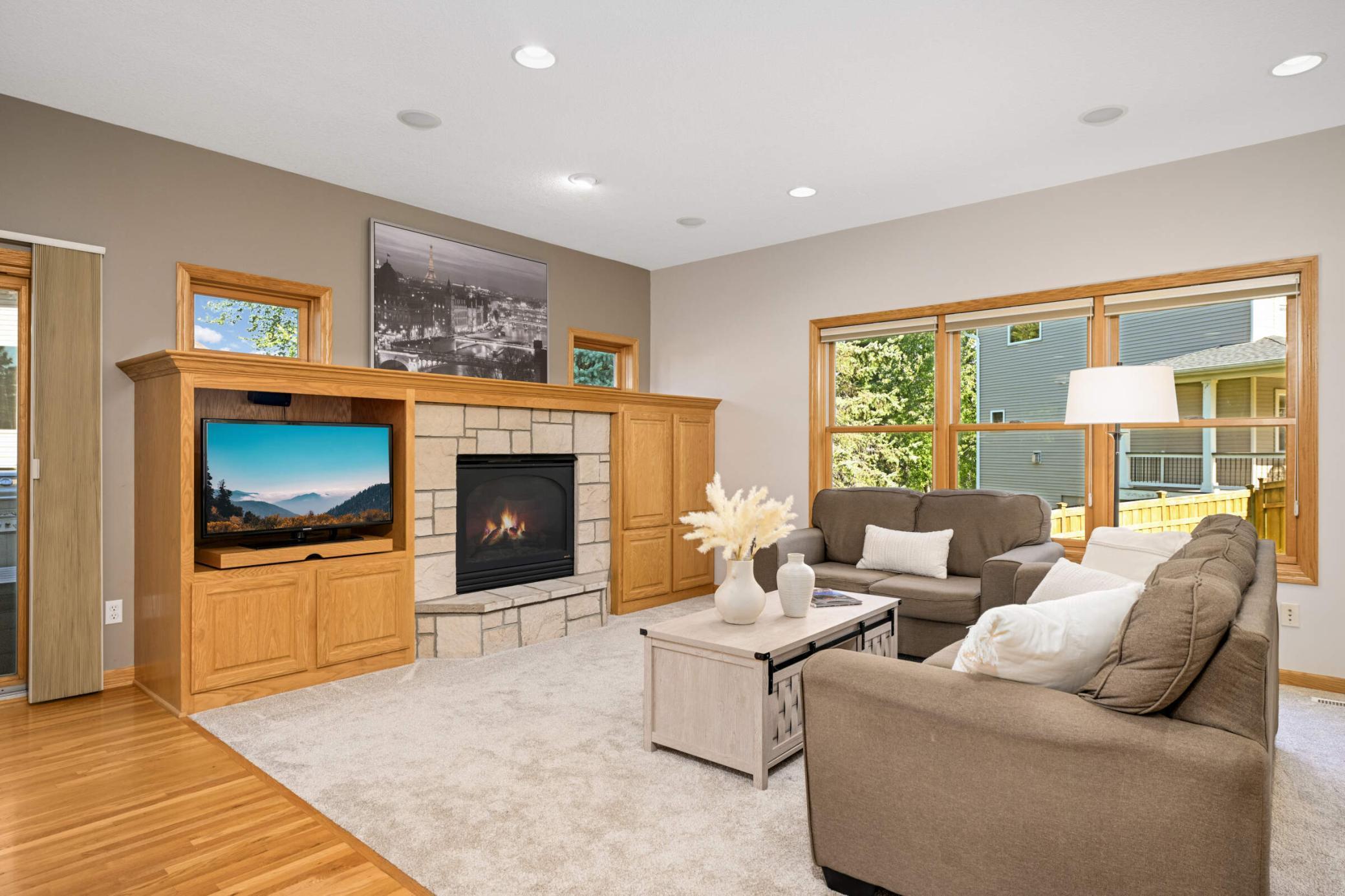 Custom-built home in District 196 has 4 bedrooms, 2.5 bathrooms, and 3-car garage with a dedicated workshop area. Wonderful fenced in corner lot with .3 acres and a beautiful first impression. The large front porch has space to sit and relax. Front rooms with new carpet can easily be used as office, study, formal dining or piano rooms. The family room has built ins and a gas fireplace (and new carpet). It is adjacent to the marvelous, large kitchen perfect for cooking and entertaining. Stainless steel appliances, wall oven, center island and plenty of storage space, too. The maintenance free deck off of the kitchen is a perfect spot for morning coffee or grilling with friends. Upstairs, the primary bedroom has two large walk in closets, and private primary bath has a newly tiled shower with bluetooth as well as a soaker tub. Two other bedrooms are spacious and close to the upstairs full bath. The large bedroom over the garage is a wonderful surprise! Could be used as a bedroom or bonus room. Walk out lower level is framed in, offering endless possibilities such as an additional bedroom, bathroom, game room/exercise room, home office. Patio door leads to a lovely patio area with decorative pavers.Easy access to Woodland Elementary, Dakota Hills, and Eagan High School.