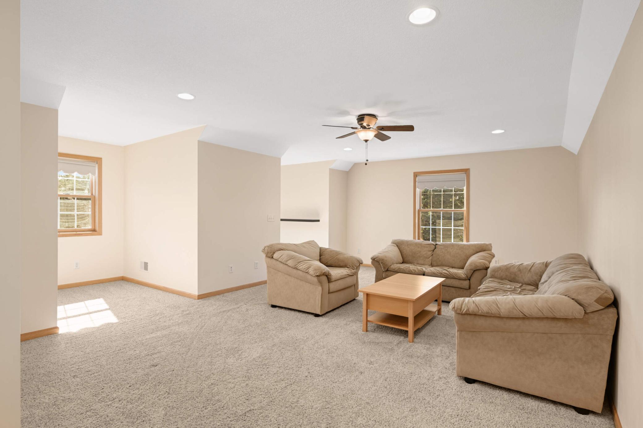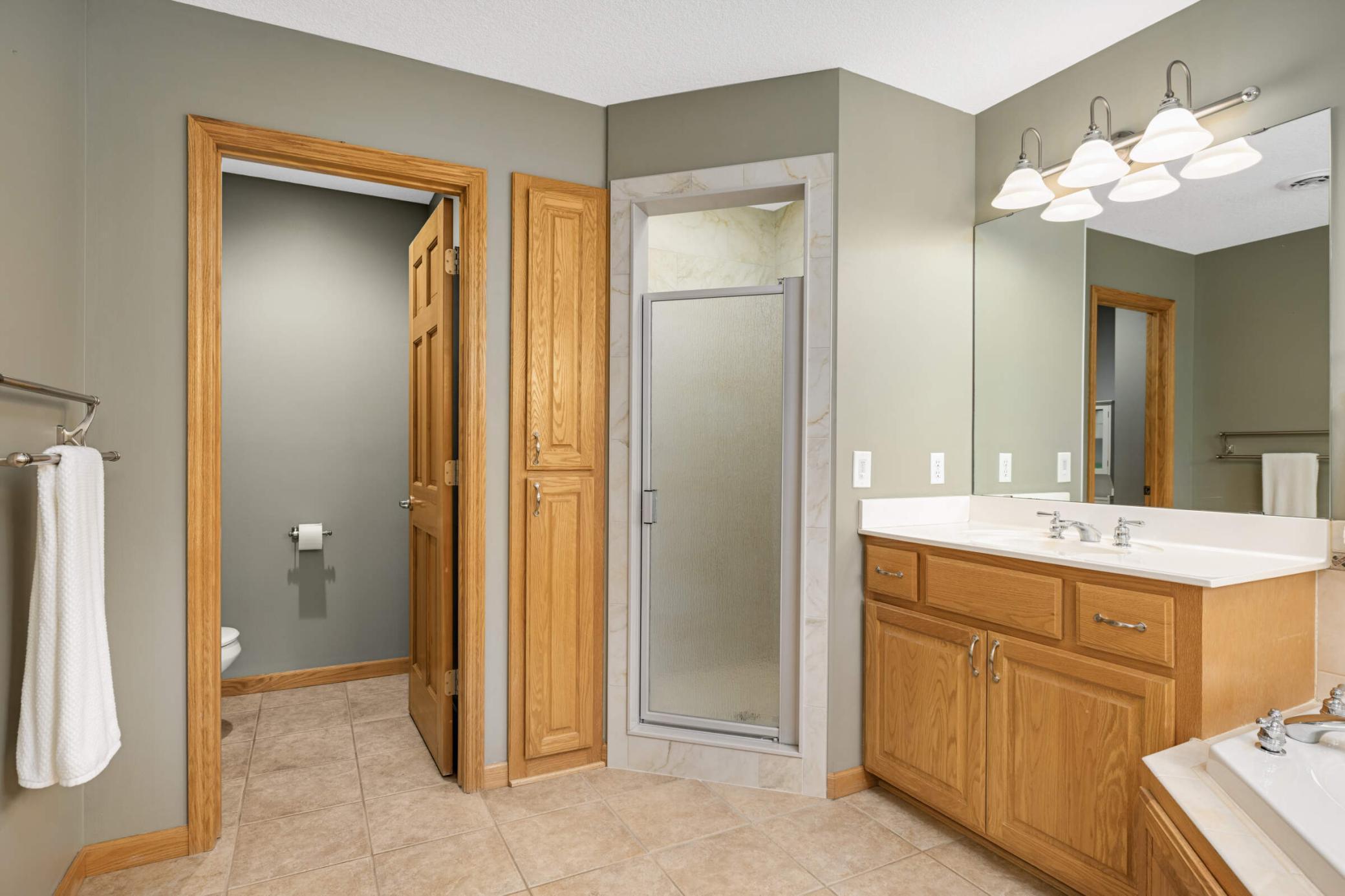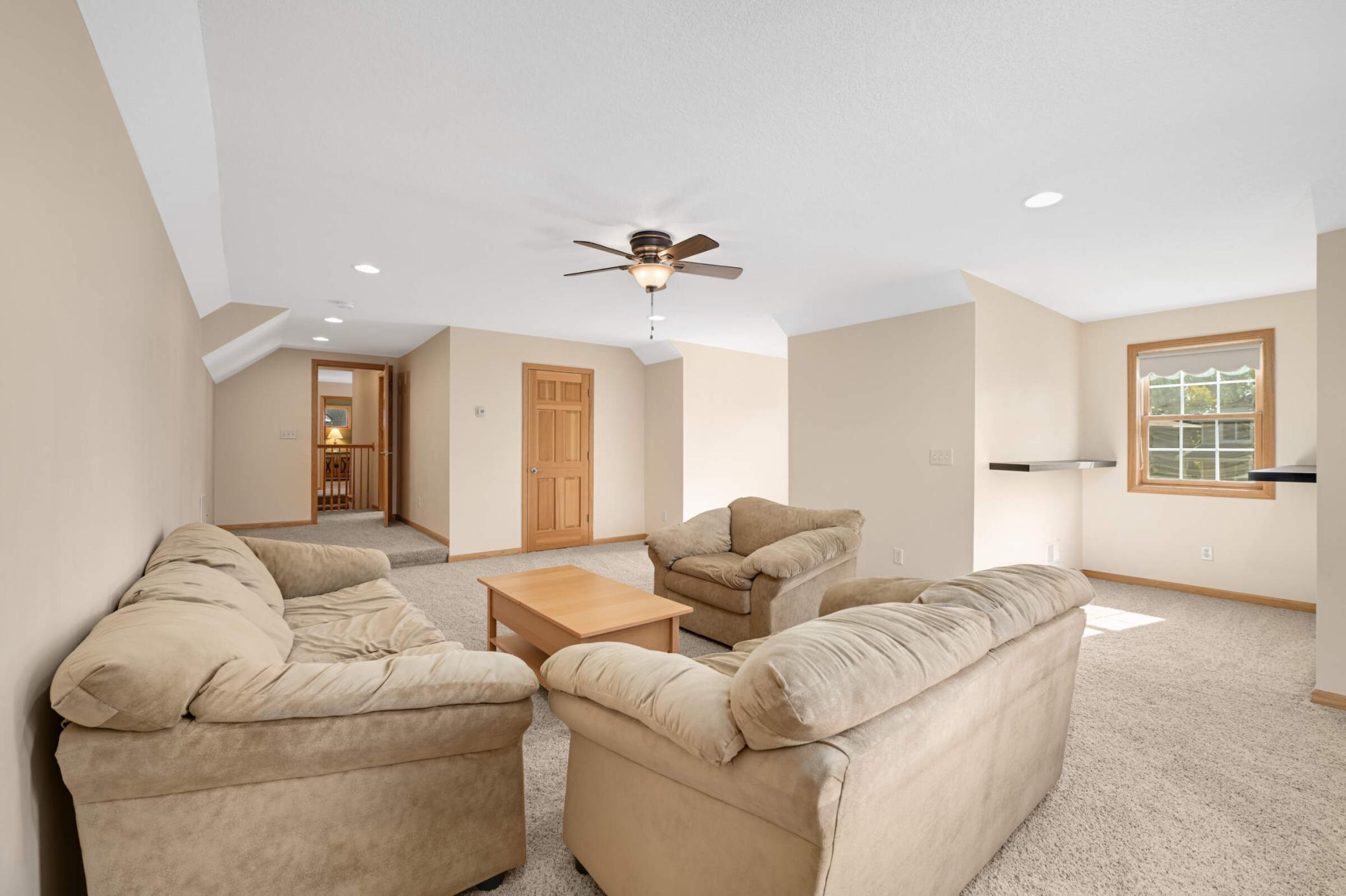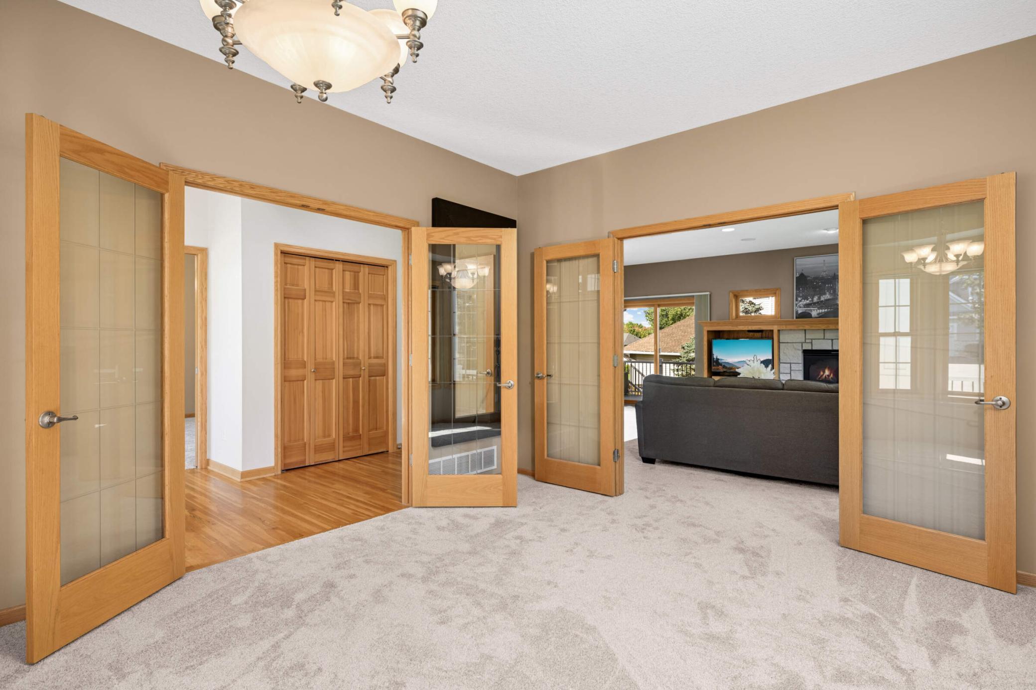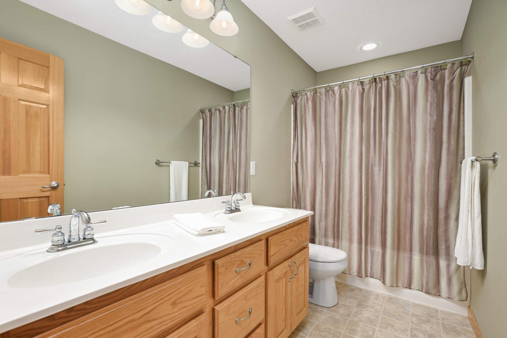 Custom-built home in District 196 has 4 bedrooms, 2.5 bathrooms, and 3-car garage with a dedicated workshop area. Wonderful fenced in corner lot with .3 acres and a beautiful first impression. The large front porch has space to sit and relax. Front rooms with new carpet can easily be used as office, study, formal dining or piano rooms. The family room has built ins and a gas fireplace (and new carpet). It is adjacent to the marvelous, large kitchen perfect for cooking and entertaining. Stainless steel appliances, wall oven, center island and plenty of storage space, too. The maintenance free deck off of the kitchen is a perfect spot for morning coffee or grilling with friends. Upstairs, the primary bedroom has two large walk in closets, and private primary bath has a newly tiled shower with bluetooth as well as a soaker tub. Two other bedrooms are spacious and close to the upstairs full bath. The large bedroom over the garage is a wonderful surprise! Could be used as a bedroom or bonus room. Walk out lower level is framed in, offering endless possibilities such as an additional bedroom, bathroom, game room/exercise room, home office. Patio door leads to a lovely patio area with decorative pavers.Easy access to Woodland Elementary, Dakota Hills, and Eagan High School.